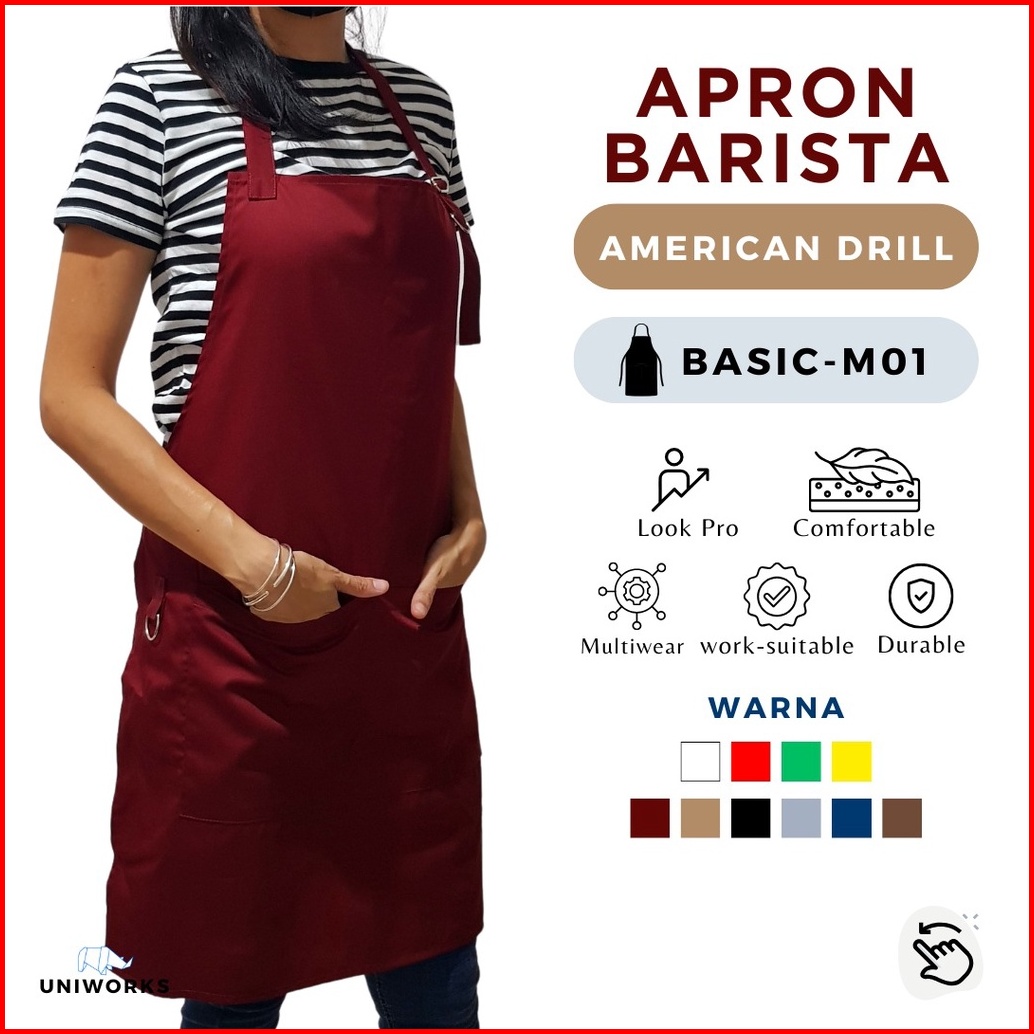 Uniworks Apron Barista Seri V01m01 Celemek Masak Bahan American Drill