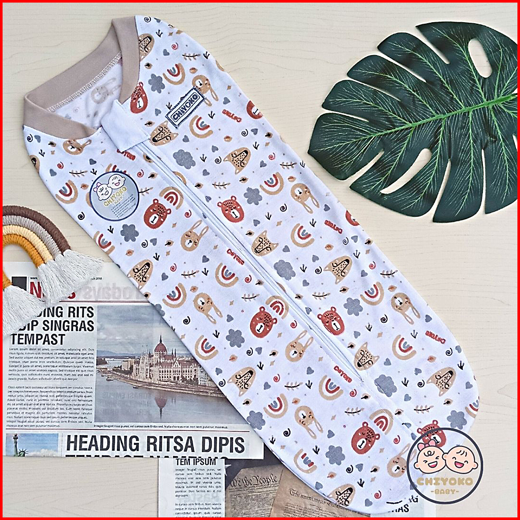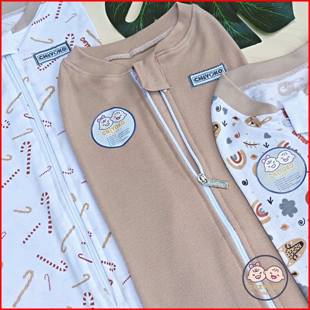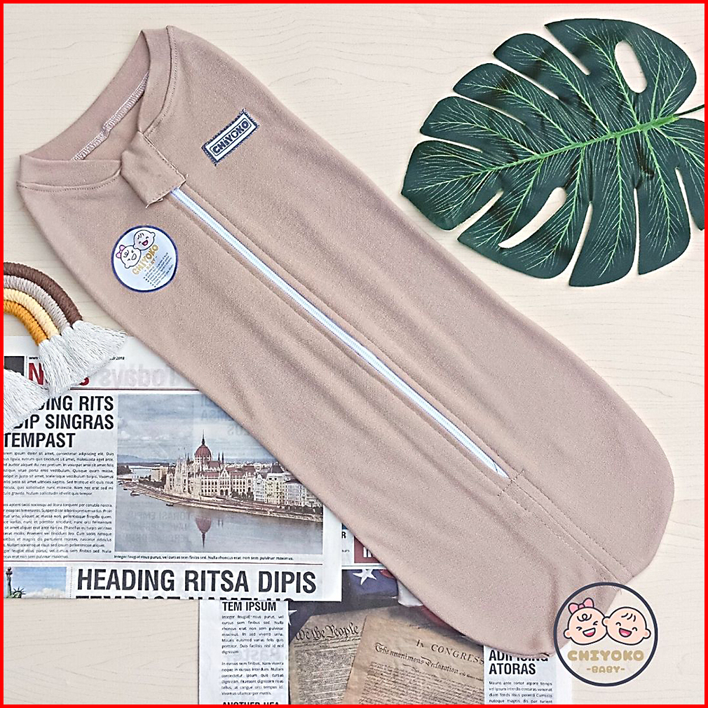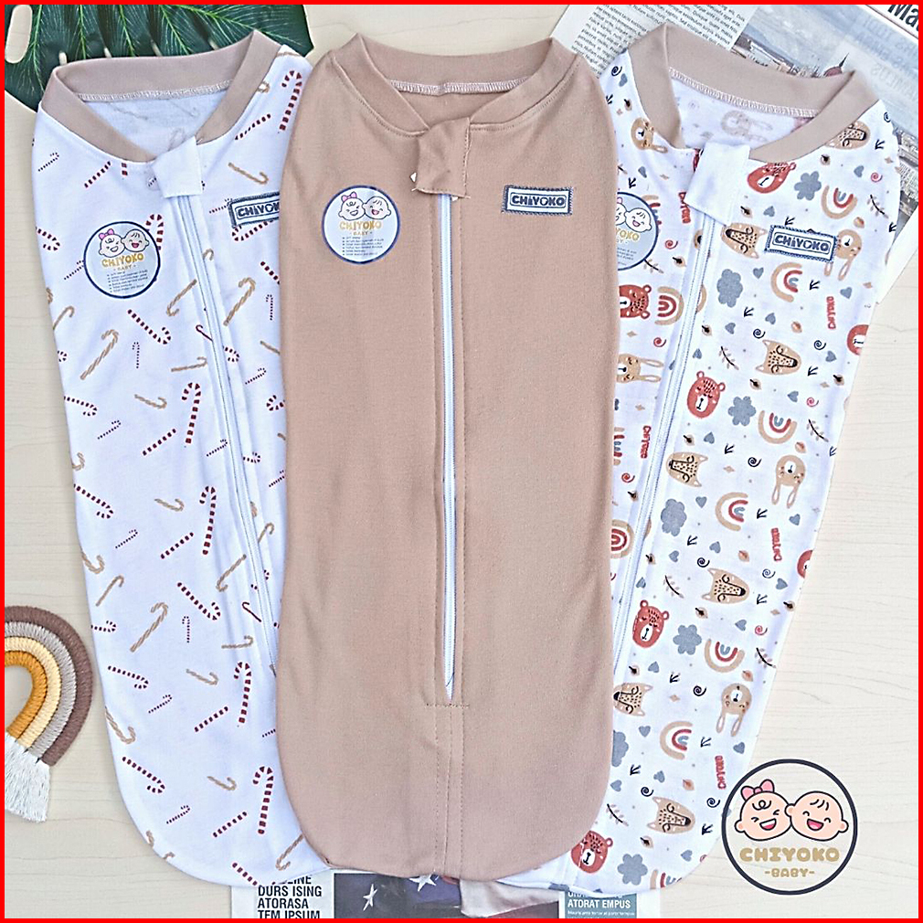 3 Pcs Bedong Resleting Bayi Baru Lahir Serian Coklat Susu Chiyoko Baby Sni