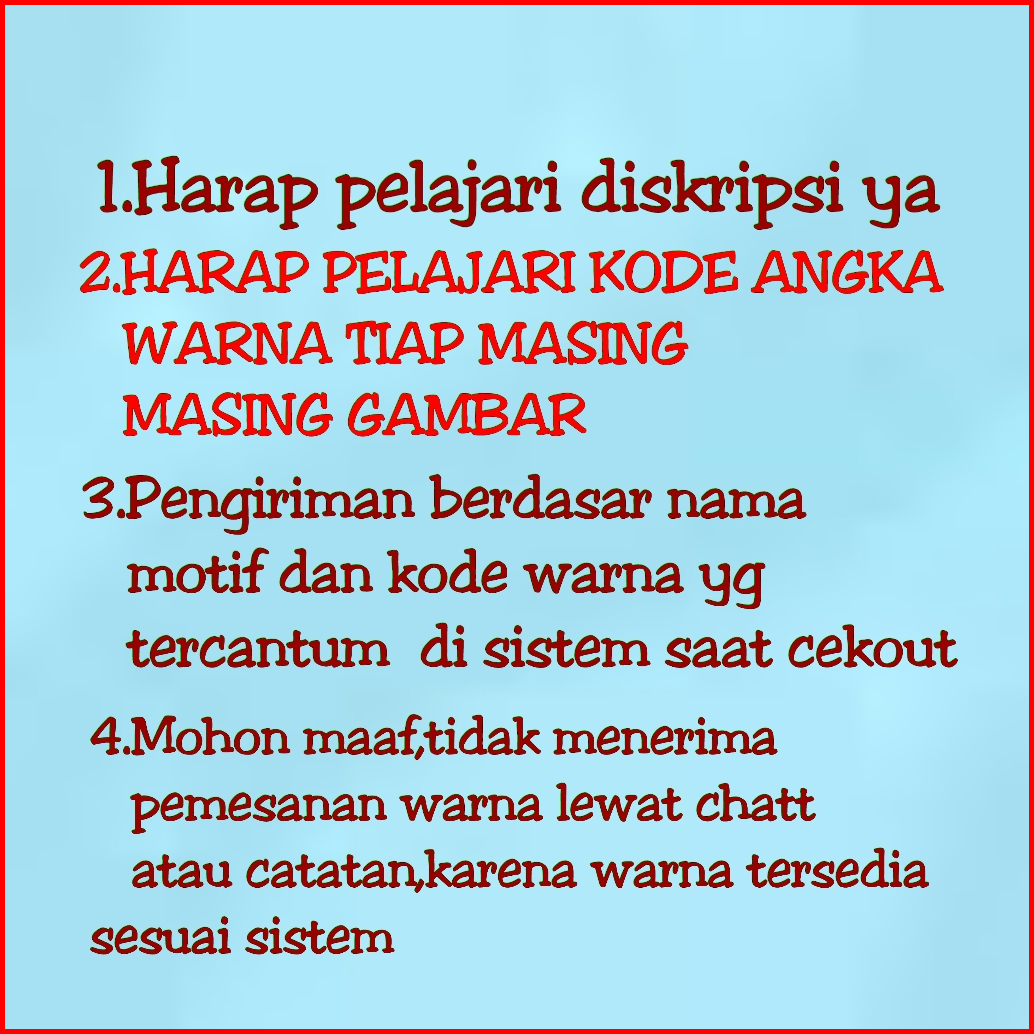 Warna no.1, Warna no.2, Warna no.3, Warna no. 4, Warna no.5