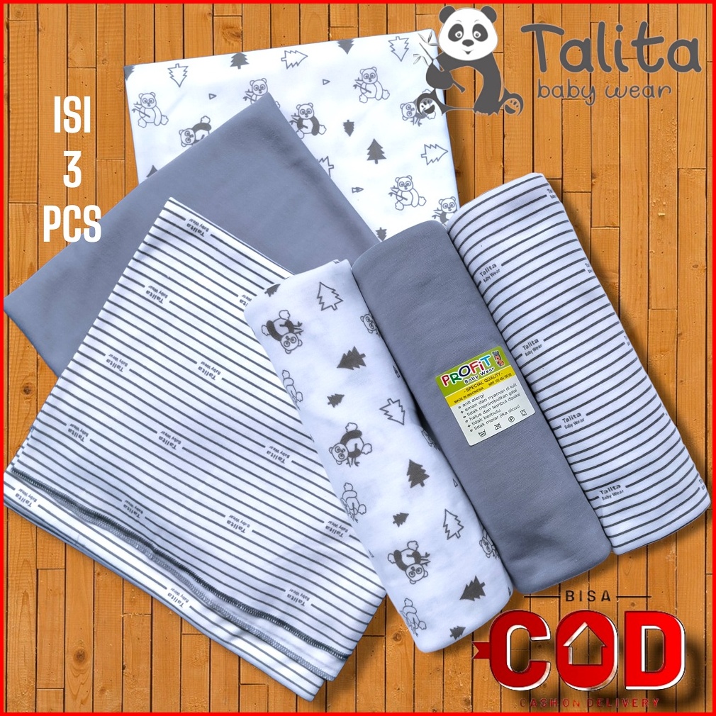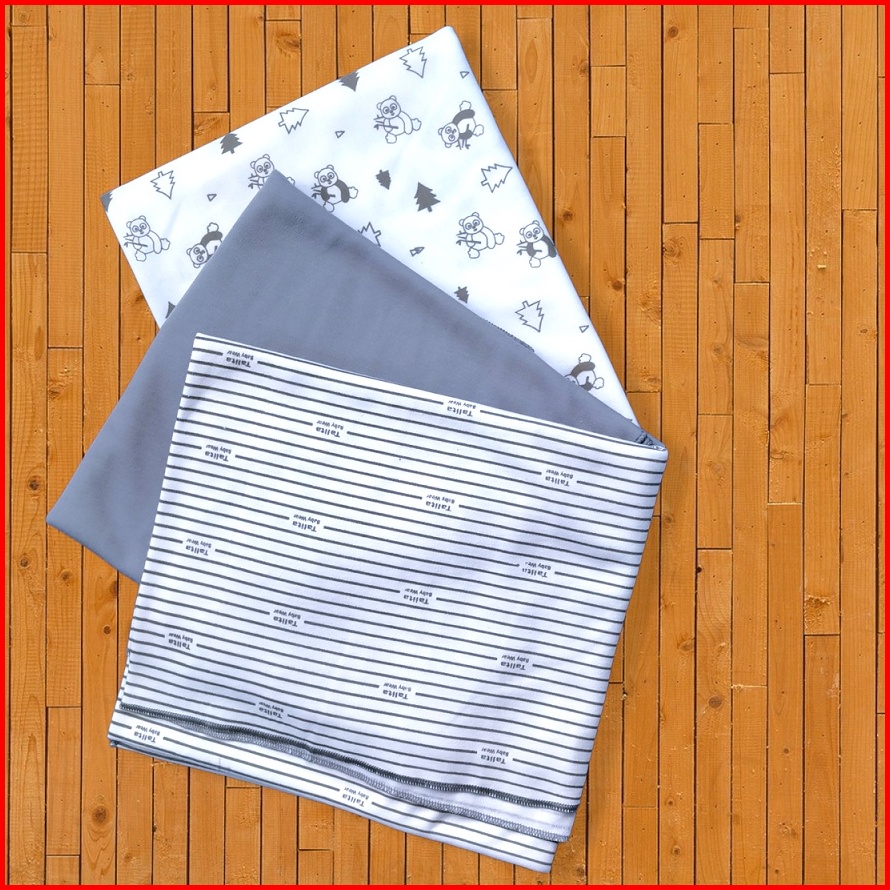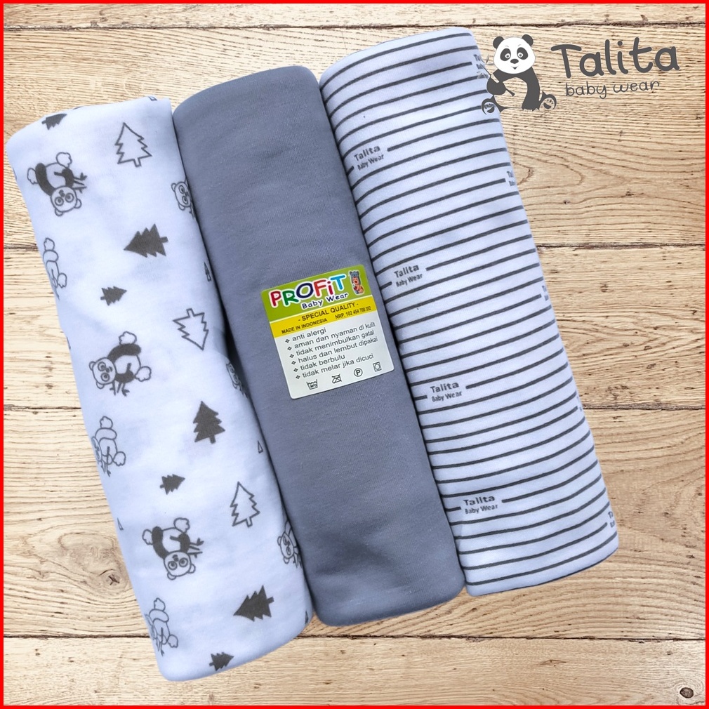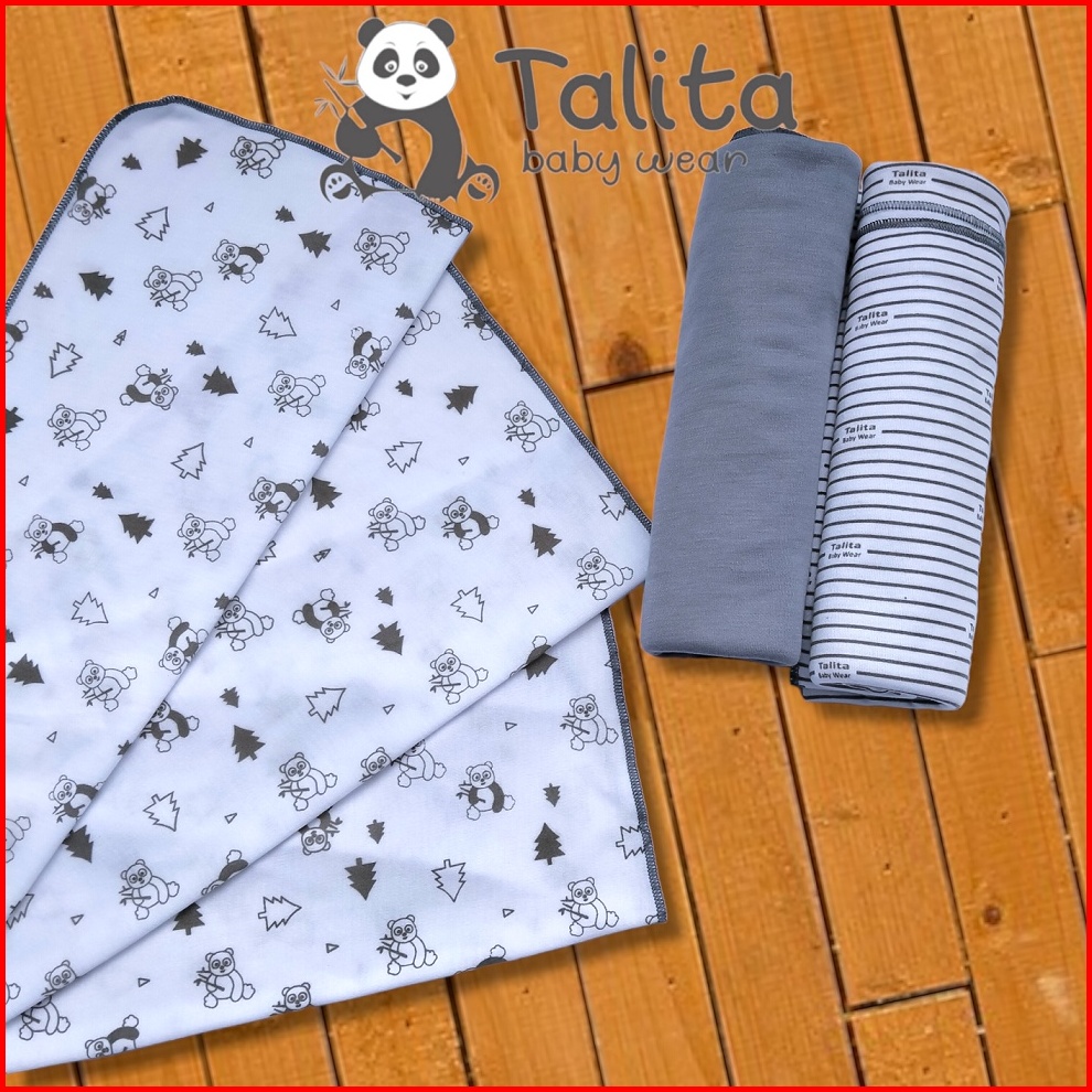 3 Pcs Bedong Pernel Bahan Kaos Seri Abu 90 X 110 Cm