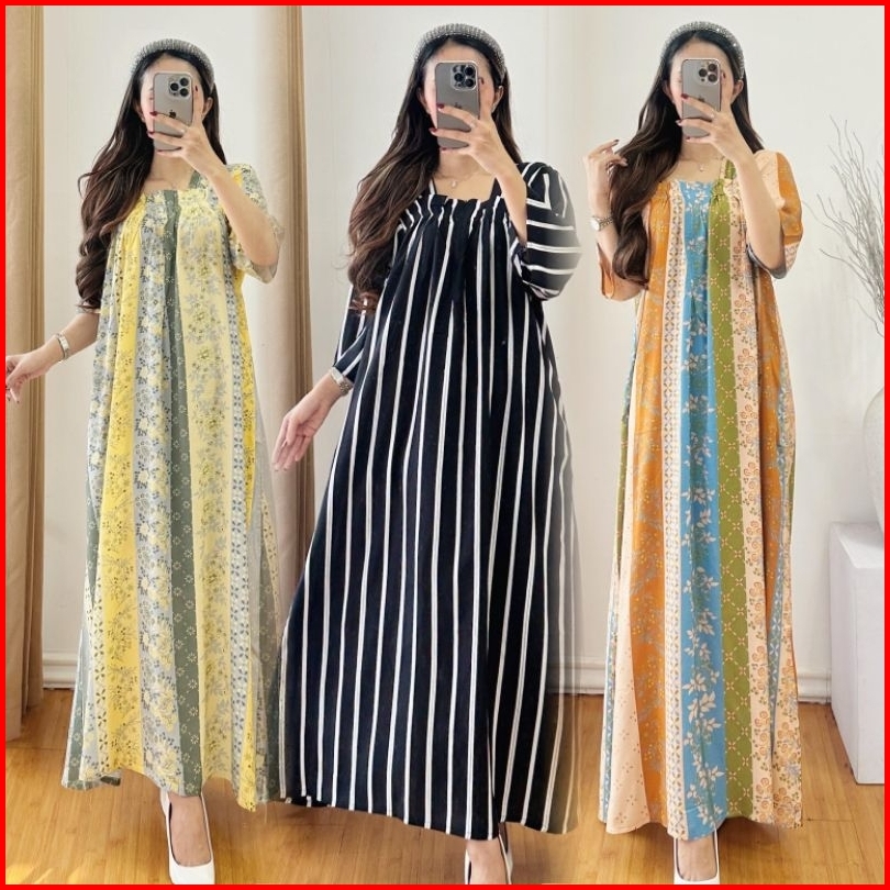 Daster Fuji Rayon - Rayon Motif Premium Grade A Dress Rayon Cantik Lengan 3 4 Motif Jumbo Kekinian Viral Adem Nyaman Baj