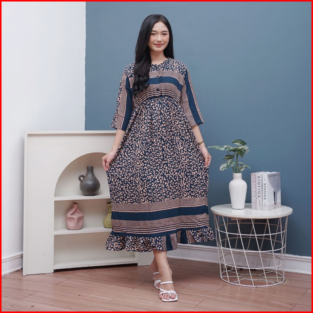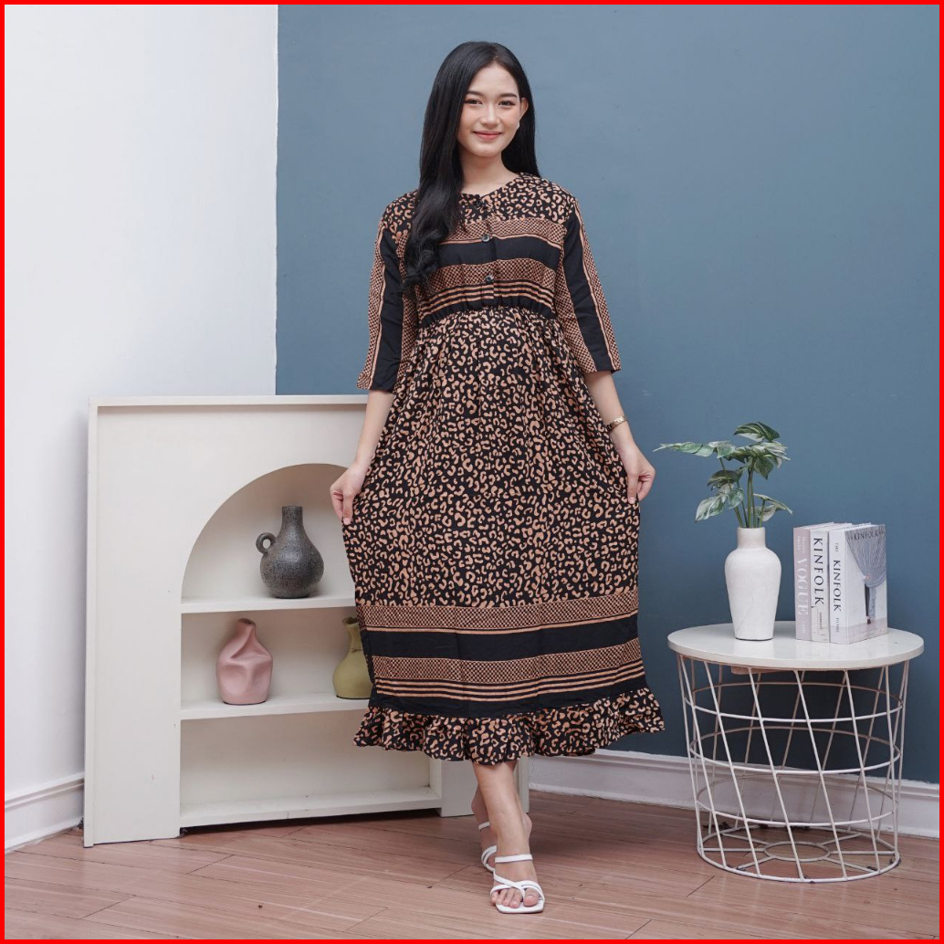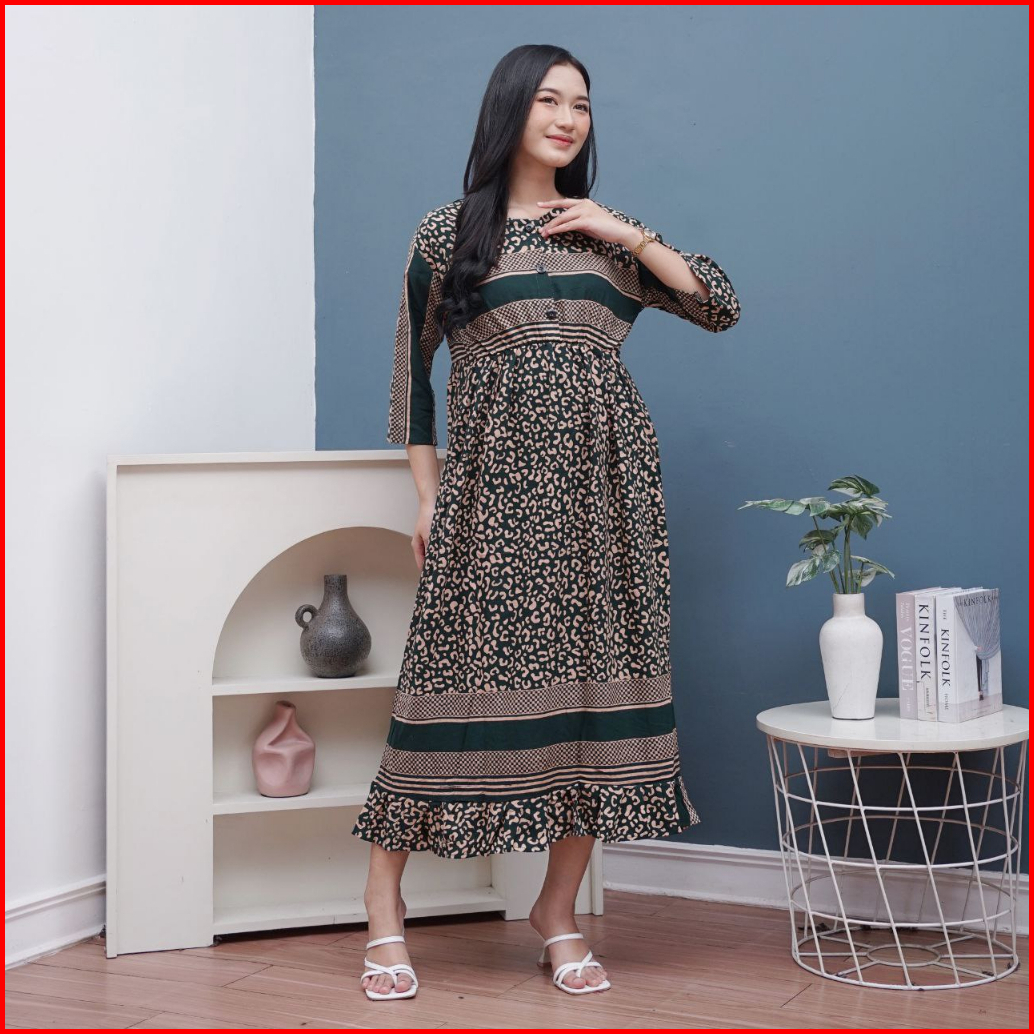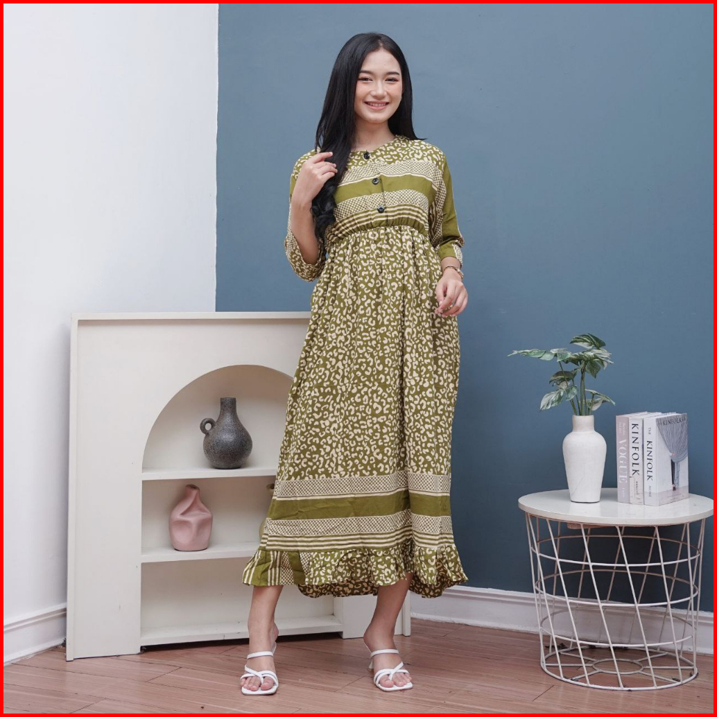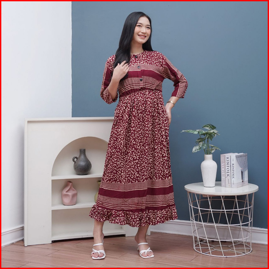 Long Dress Daster Lengan Panjang Ibu Ibu Kekinian Rayon Busui Resleting Depan