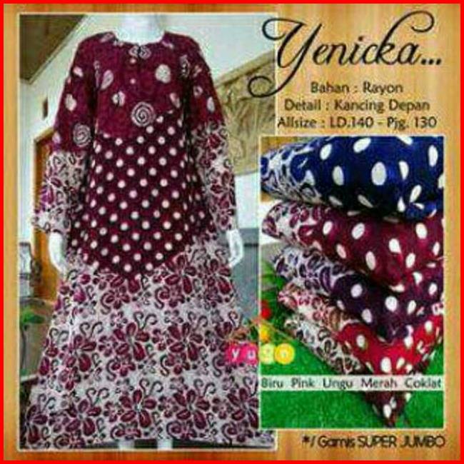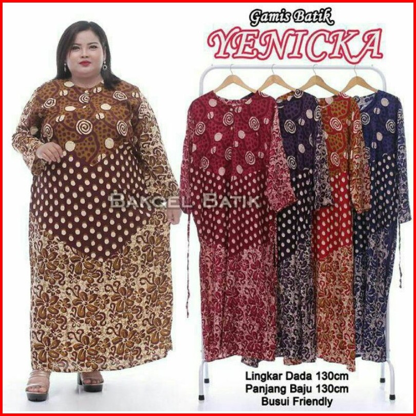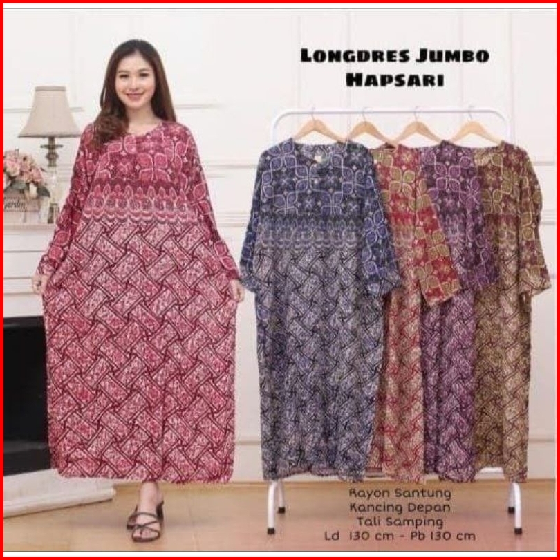 Daster Panjang Super Jumbo Tangan Panjang Batik Rayon Adem Kancing Depan Busui Bumil Kekinian