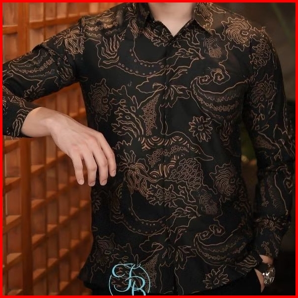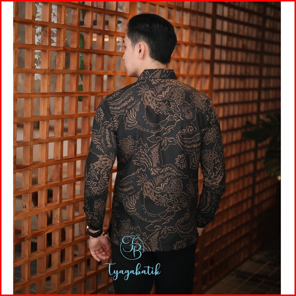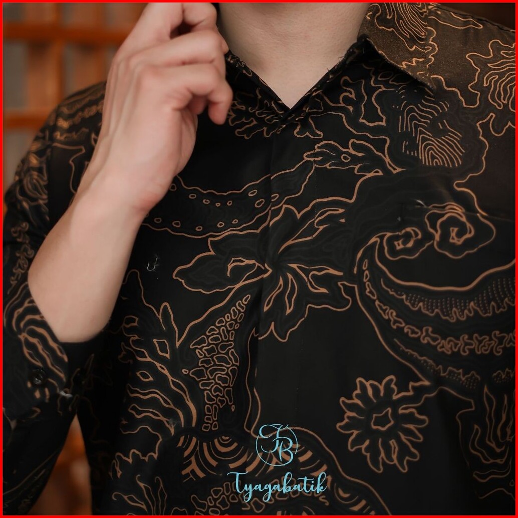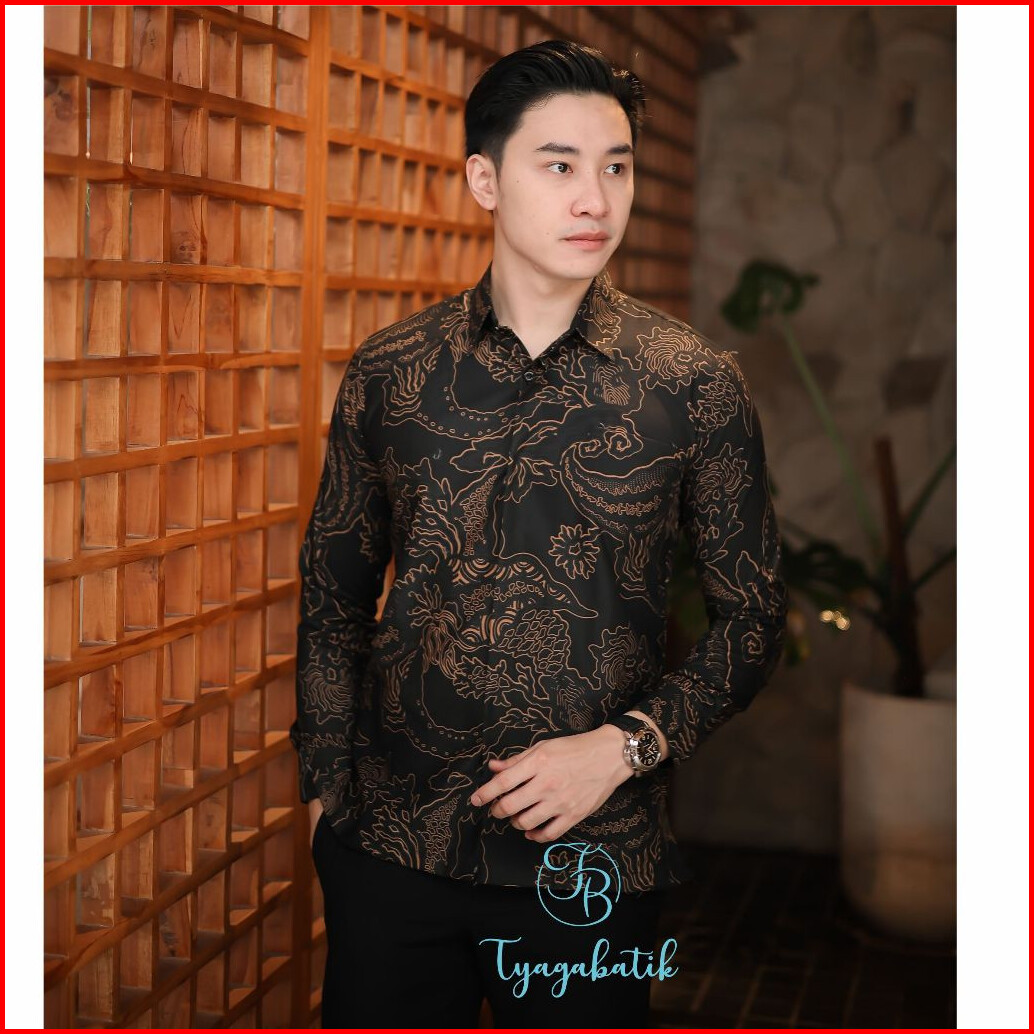 Kemeja Batik Pria Baju Lengan Panjang Slimfit Lapis Furing Batik Tyaga 1038 Bahan Katun Premium Elegan Motif Formal Warn