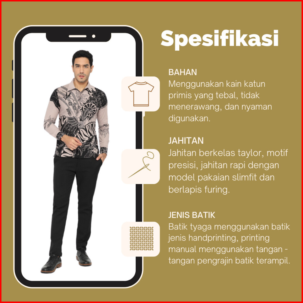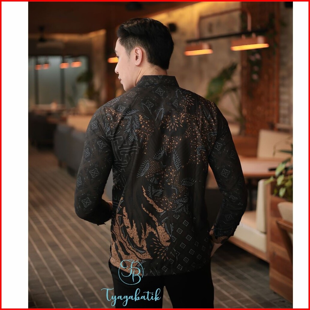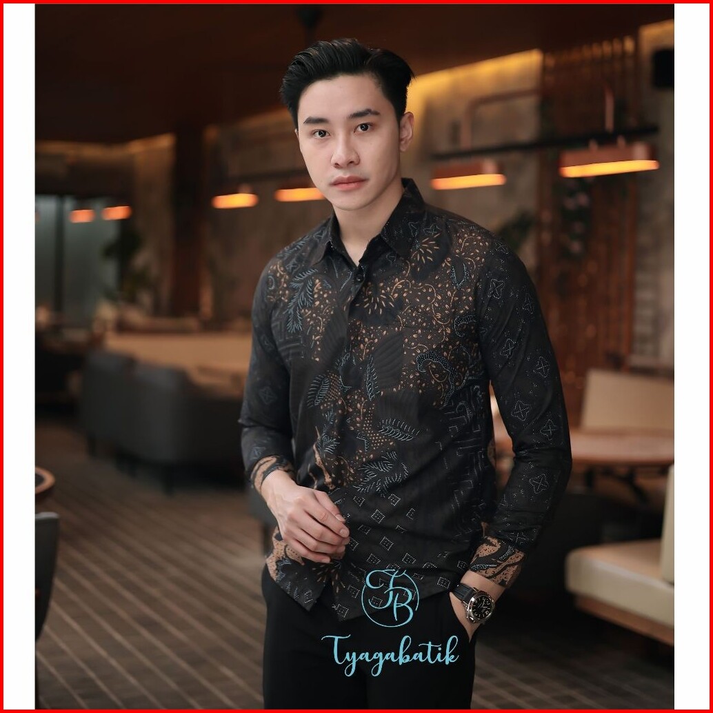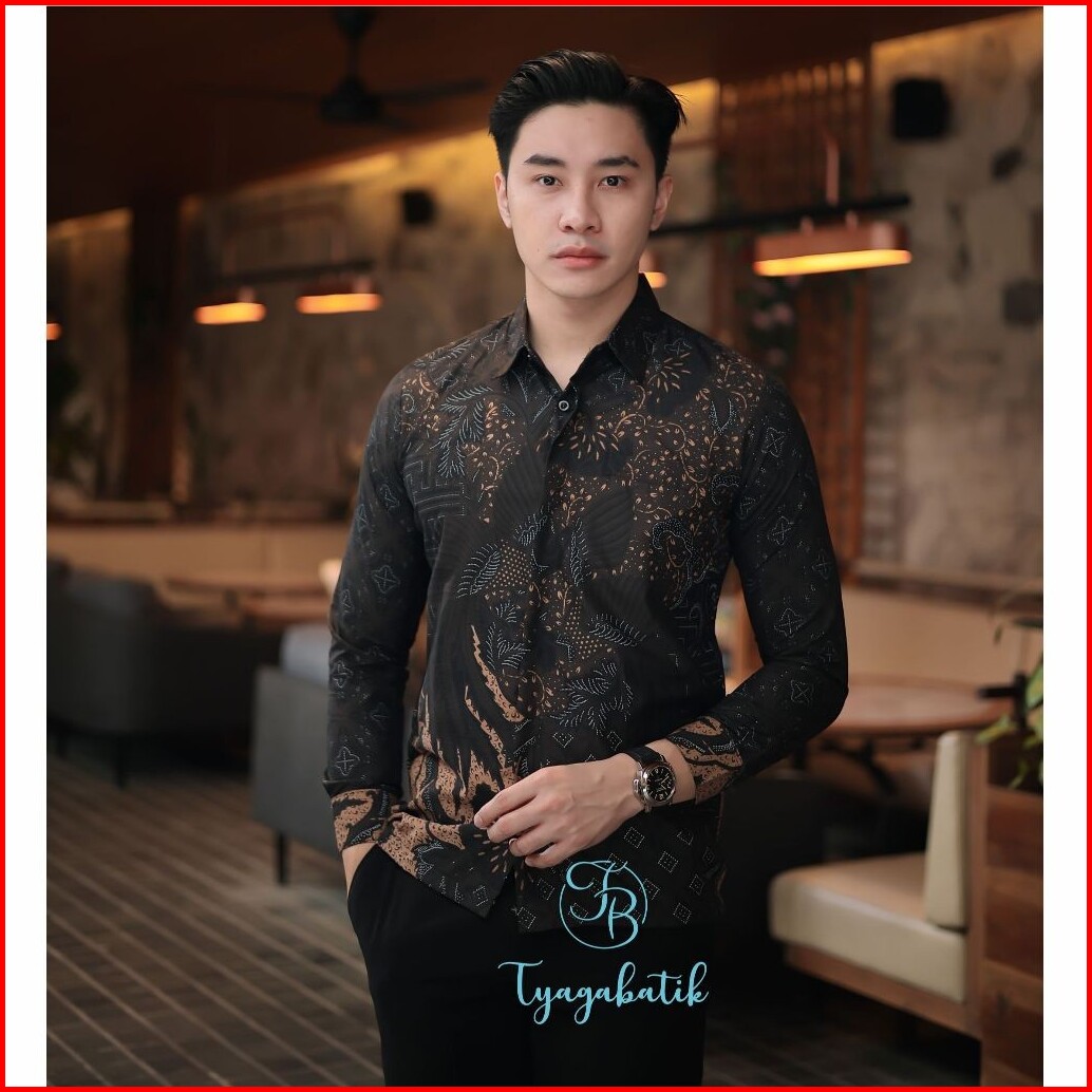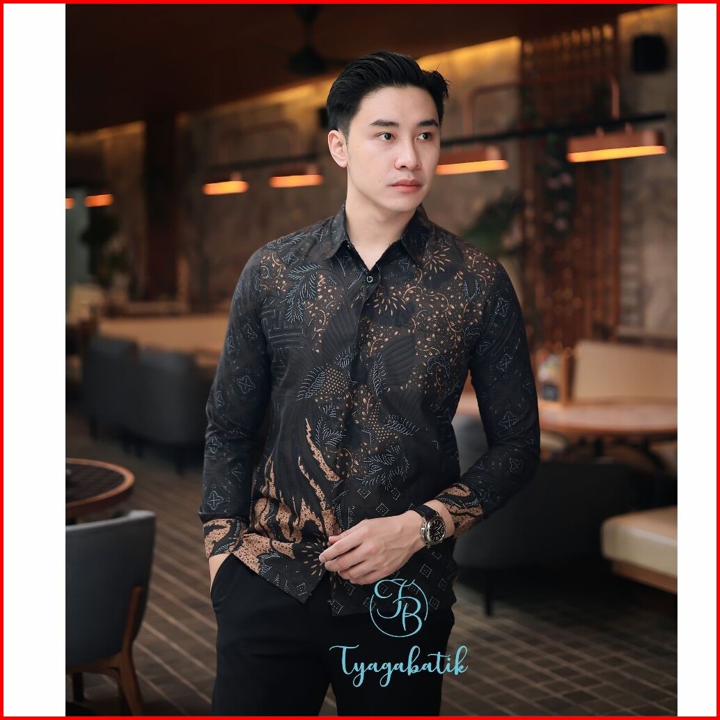 Kemeja Batik Pria Baju Lengan Panjang Slimfit Lapis Furing Batik Tyaga 0241 Bahan Katun Premium Elegan Motif Formal Warn