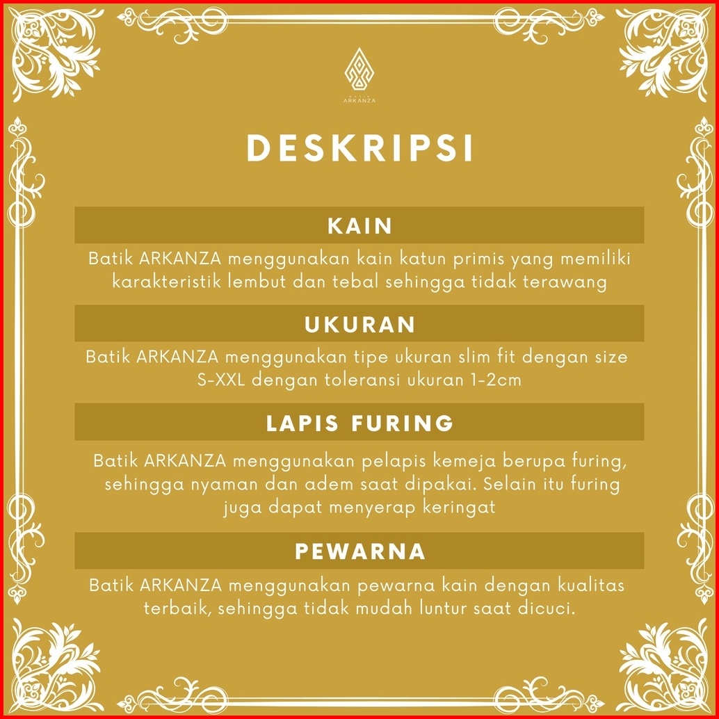 Batik Arkanza Motif Renjana Kemeja Batik Pria Lengan Panjang Slimfit Premium Bahan Katun Lapis Furing