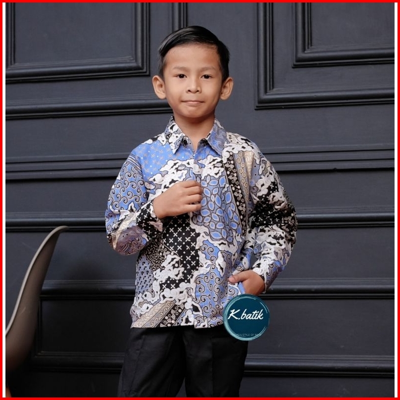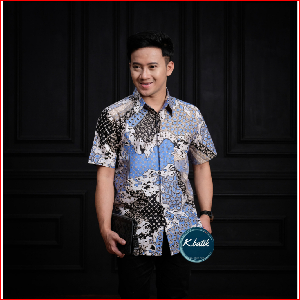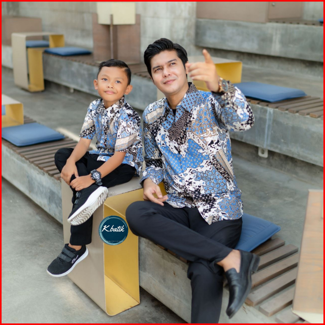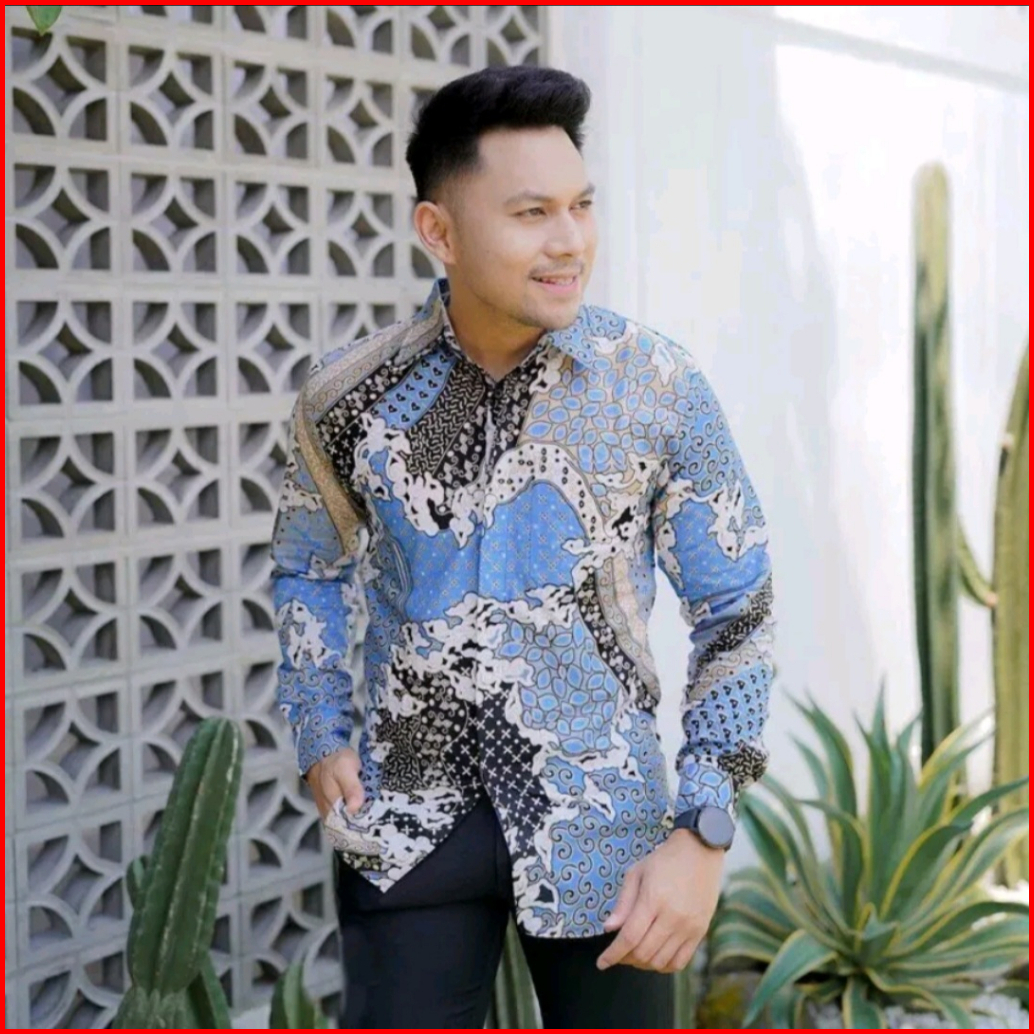 Kemeja Batik Pria Lengan Panjang Batik Premium Batik Pria Motif Kasta Ice Blue Kharisma Batik Prima