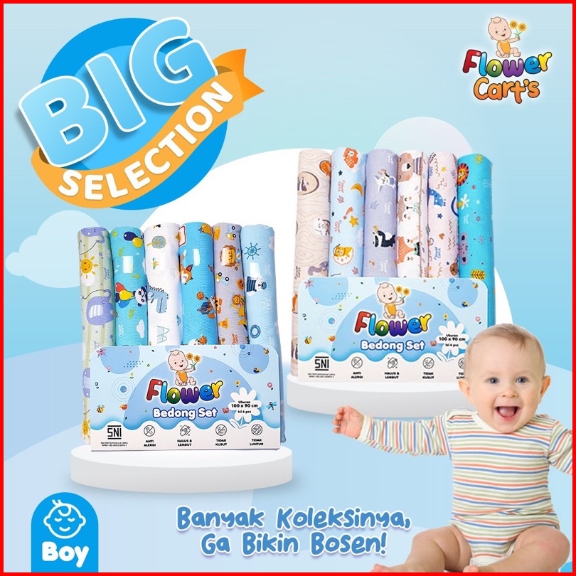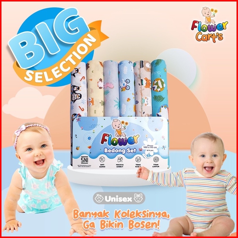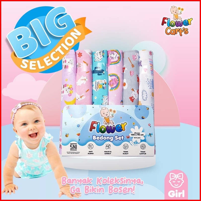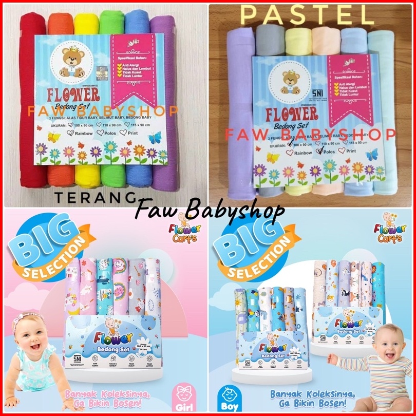 6pcs Bedong Katun Bayi Rainbow Merk Flower Sni Termurah Bedong Kaos Bayi Bedong Bayi