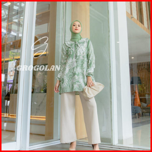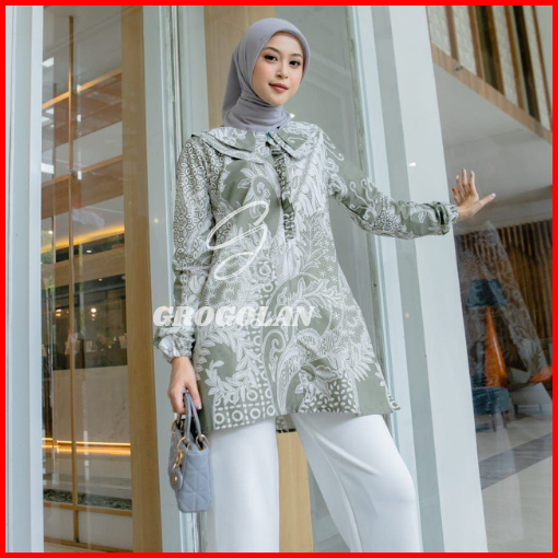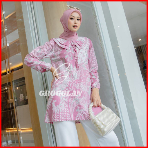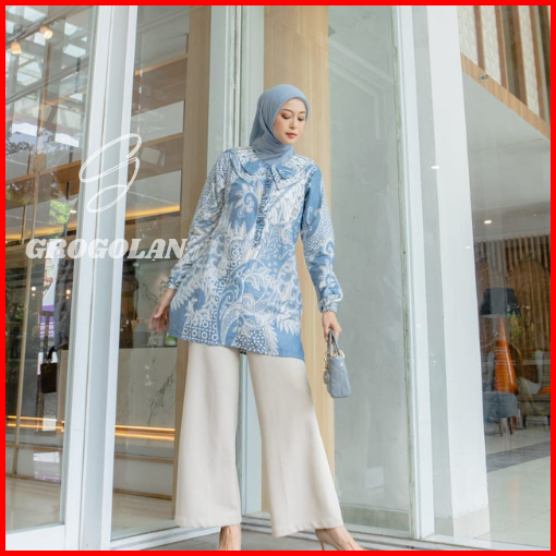 Baju Batik Wanita Modern Blouse Batik Kerja Kantor Atasan Batik