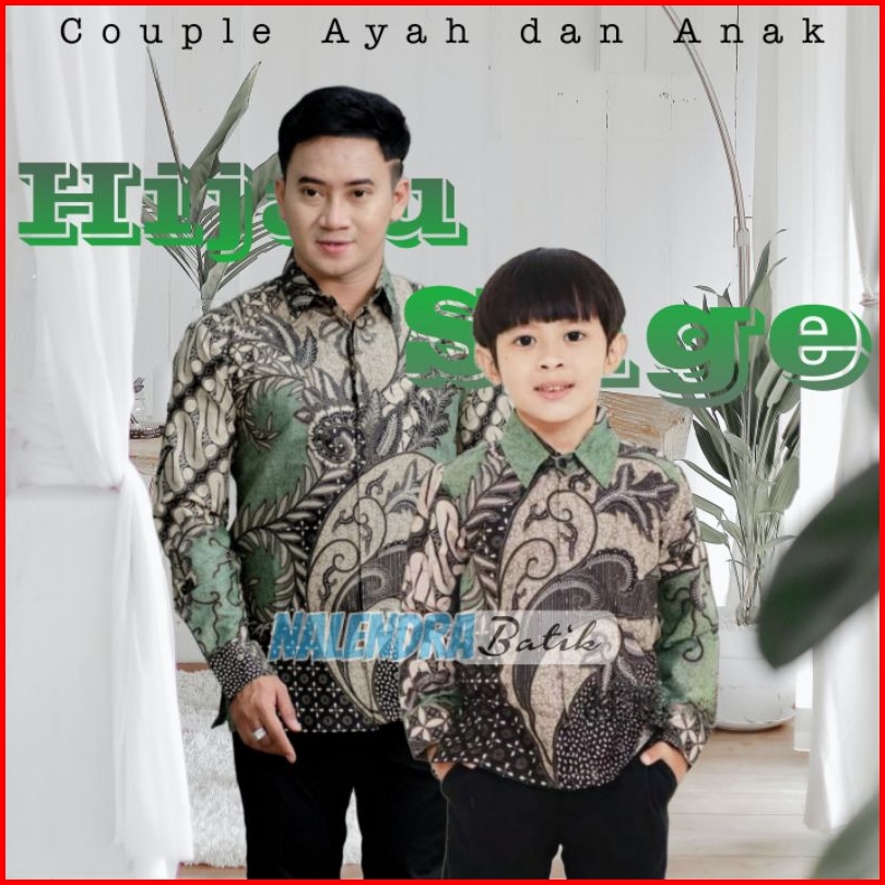 Terbaru Couple Sweet Couple Batik Ayah Dan Batik Anak Cowok Batik Hijau Sage Green Batik Terbaru