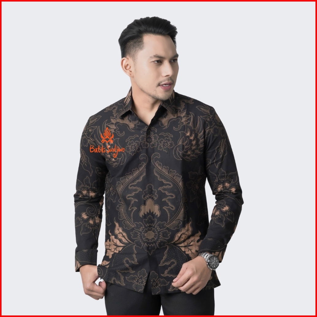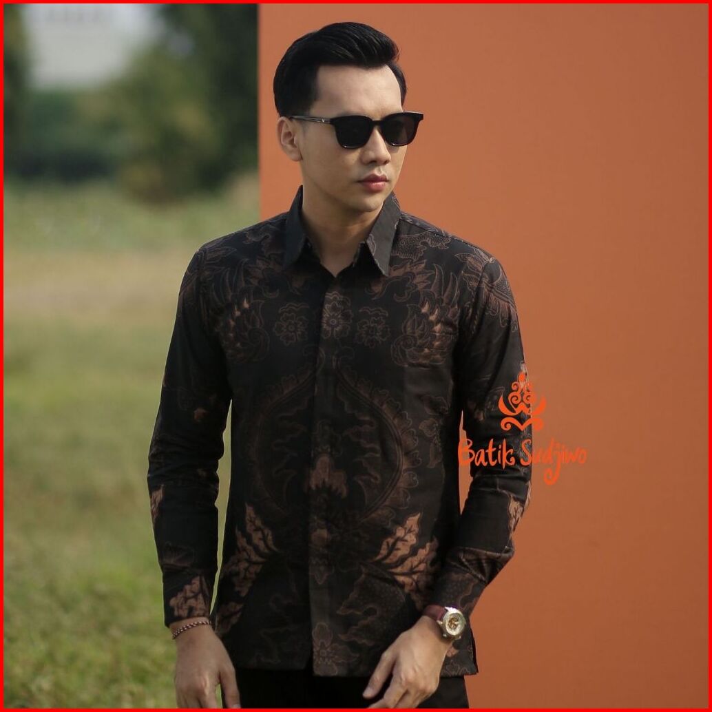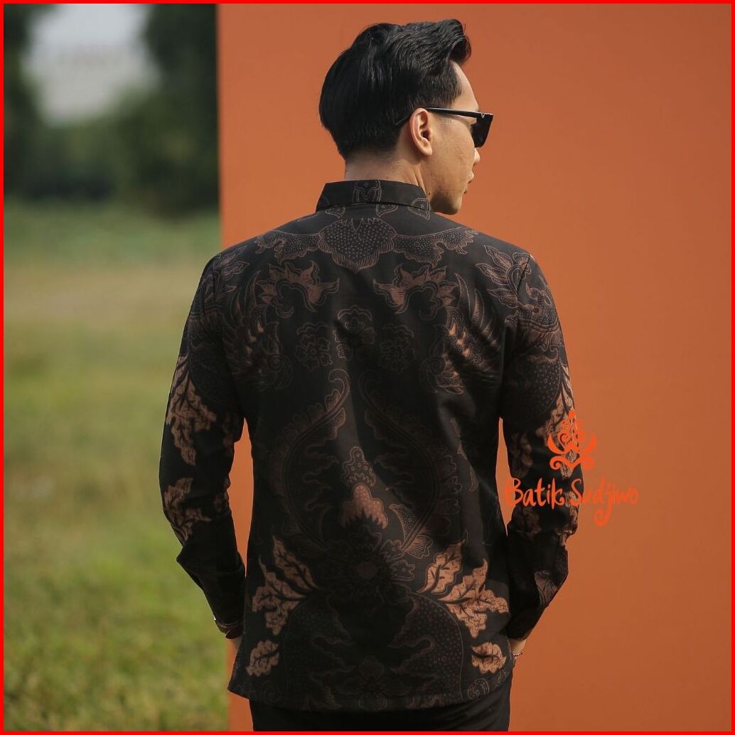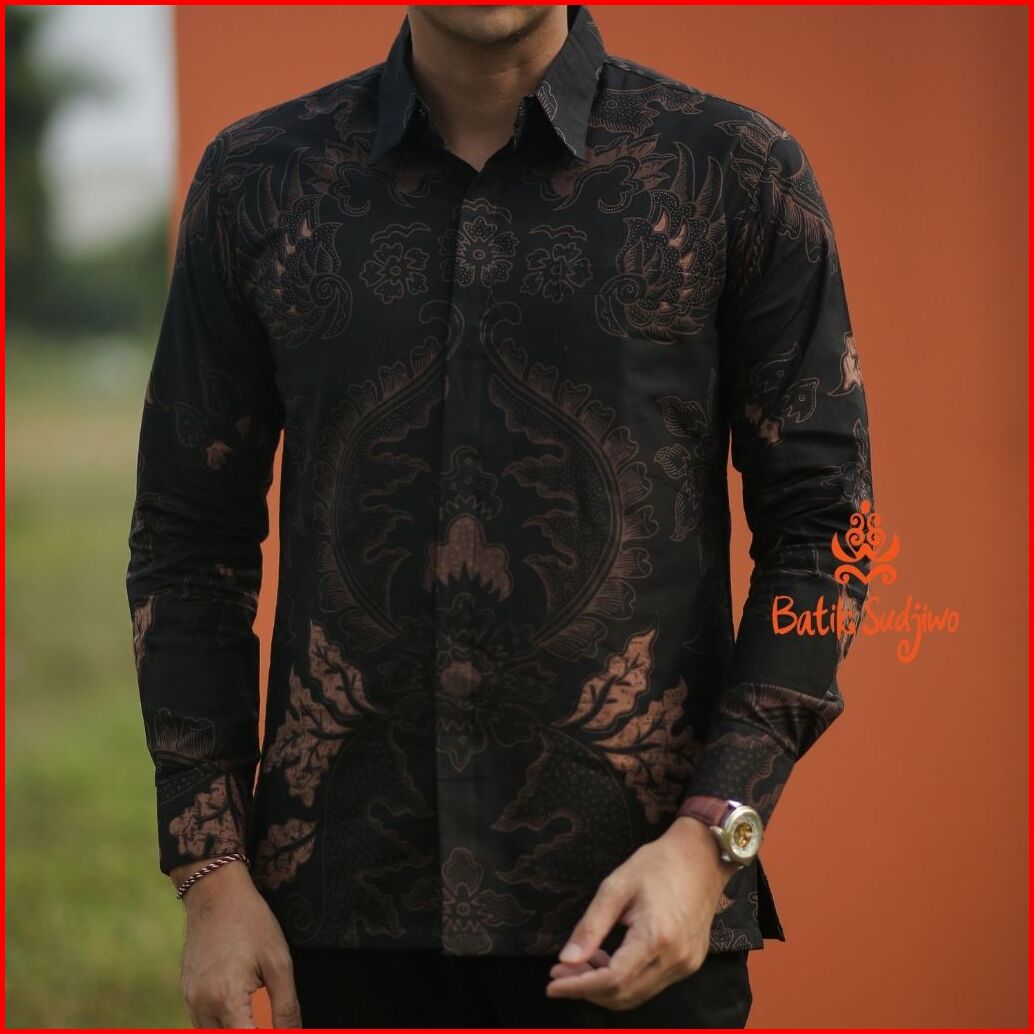 Sudjiwo Batik Motif Cakra Coklat Kemeja Batik Pria Lengan Panjang Lapis Furing Premium