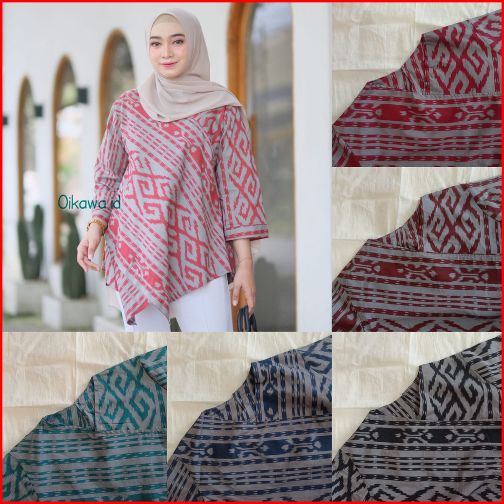 Xxl Xxxl Blus Songket Ziggy Silang 5 Warna Batik Tenun Troso Cap Motif Etnik Modern Baju Kondangan Lengan Panjang Atasan