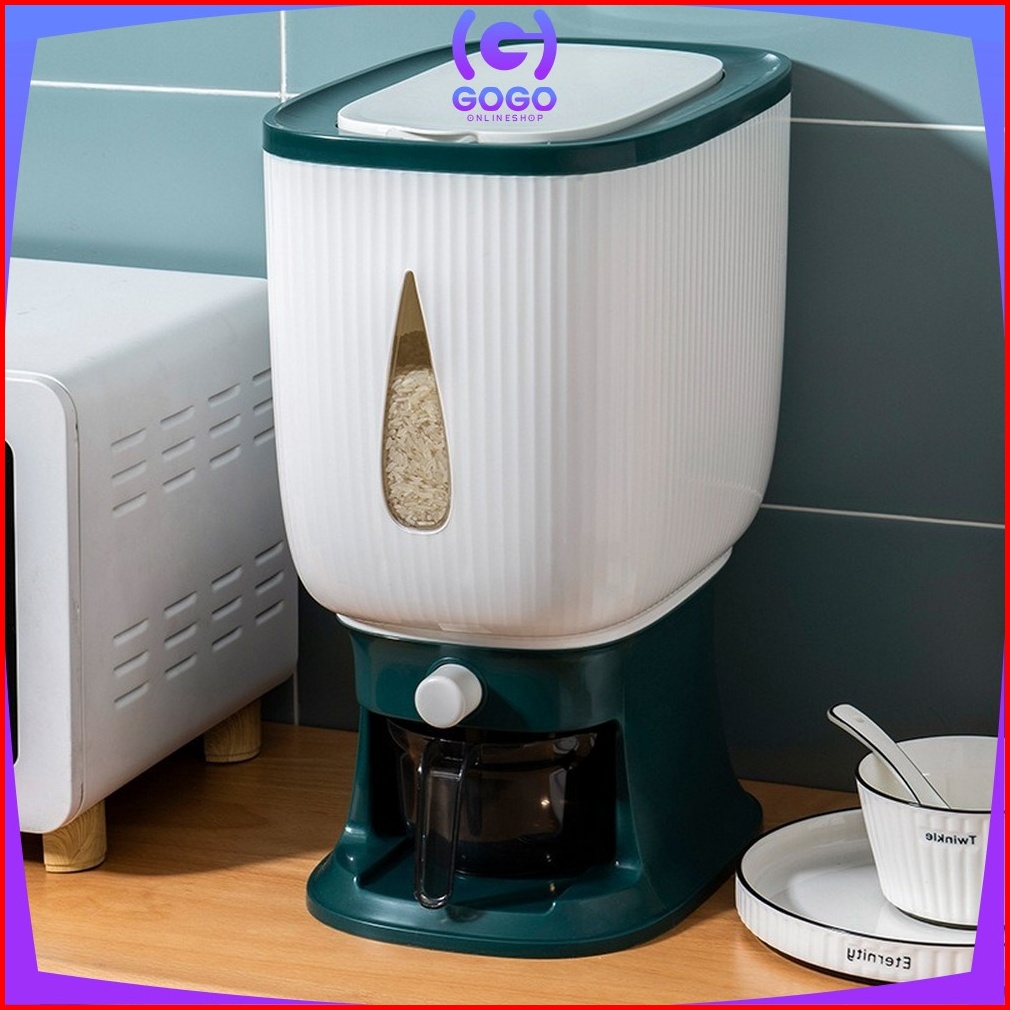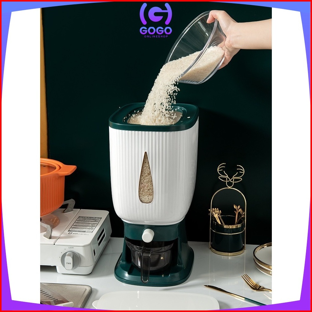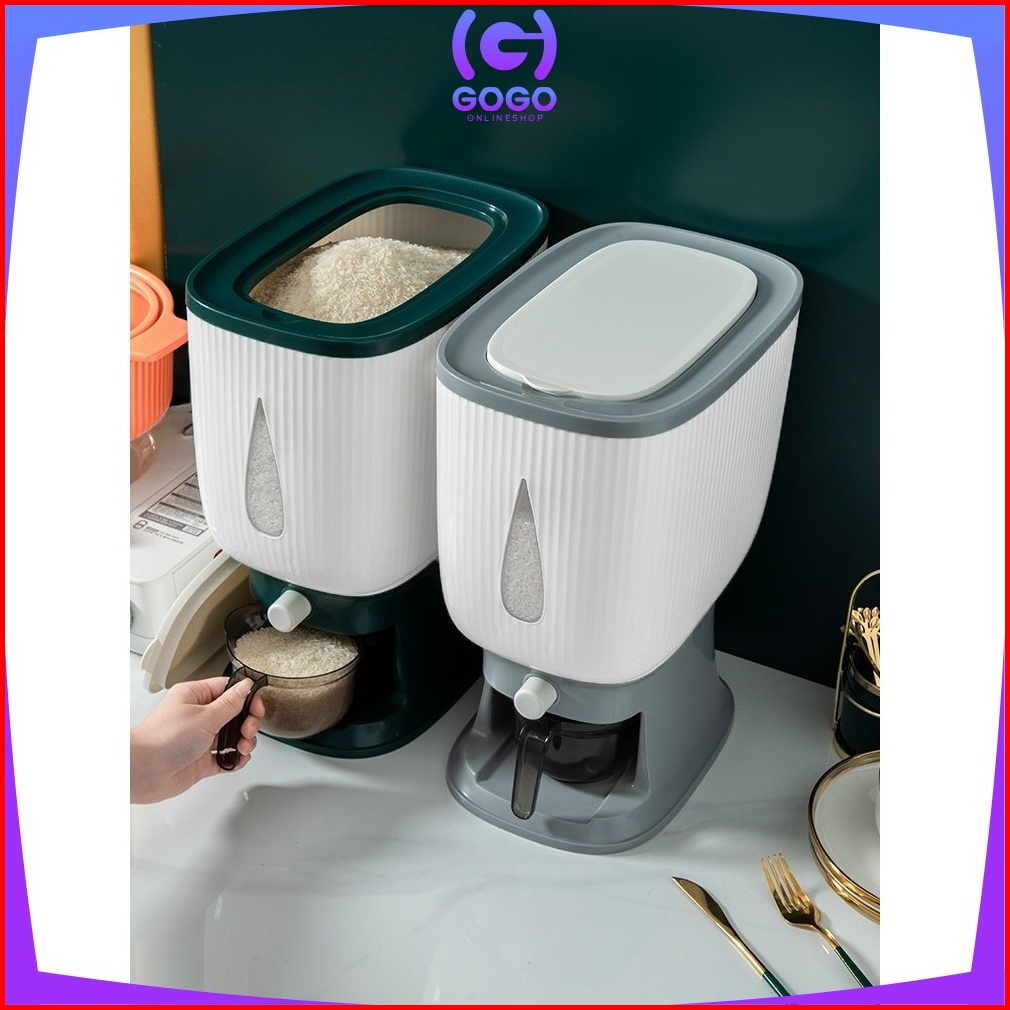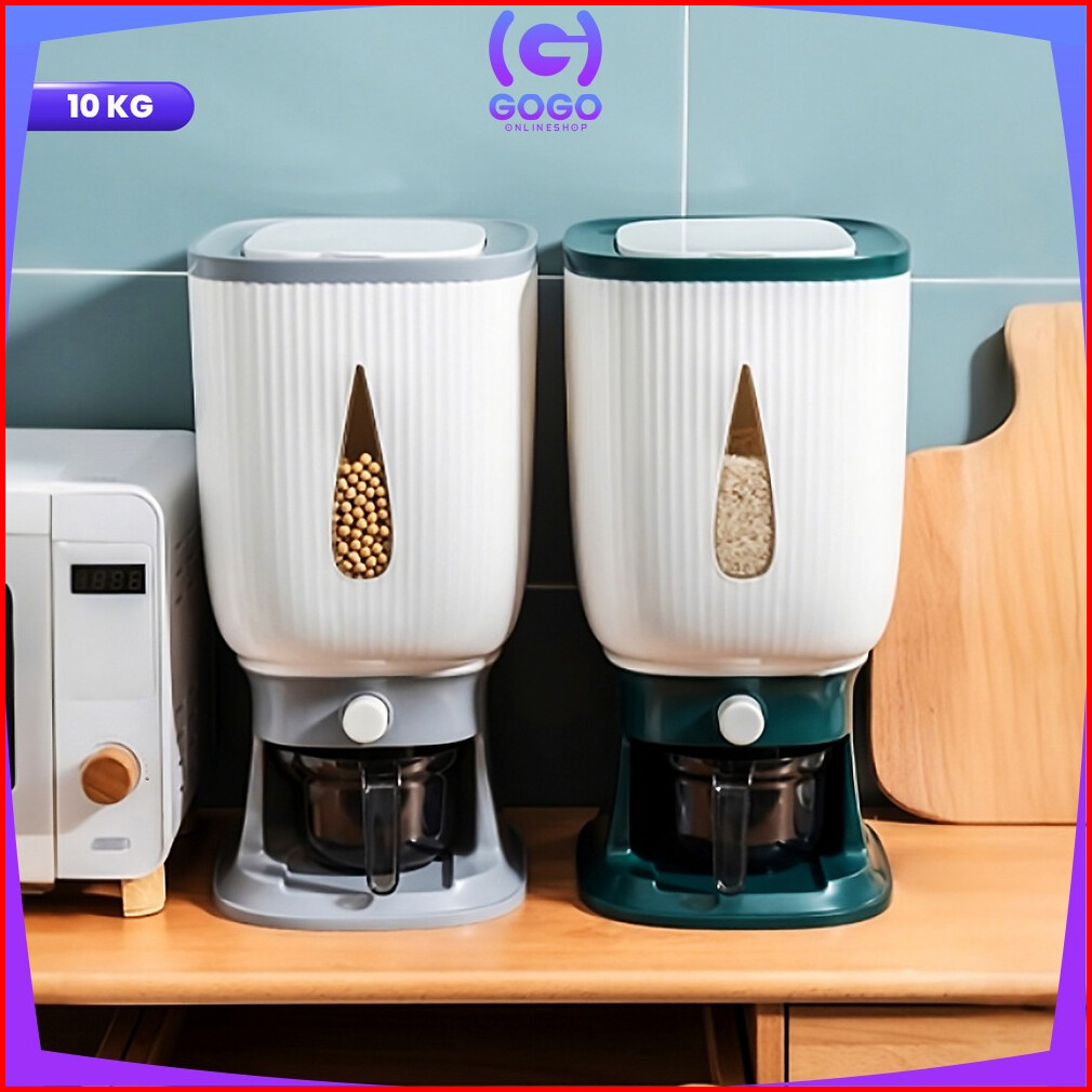 Gogo-c360 Dispenser Beras 10 Kg Rice Dispenser Tempat Wadah Penyimpanan Beras Otomatis Rice Box 10 Kg Dengan Wadah Penge