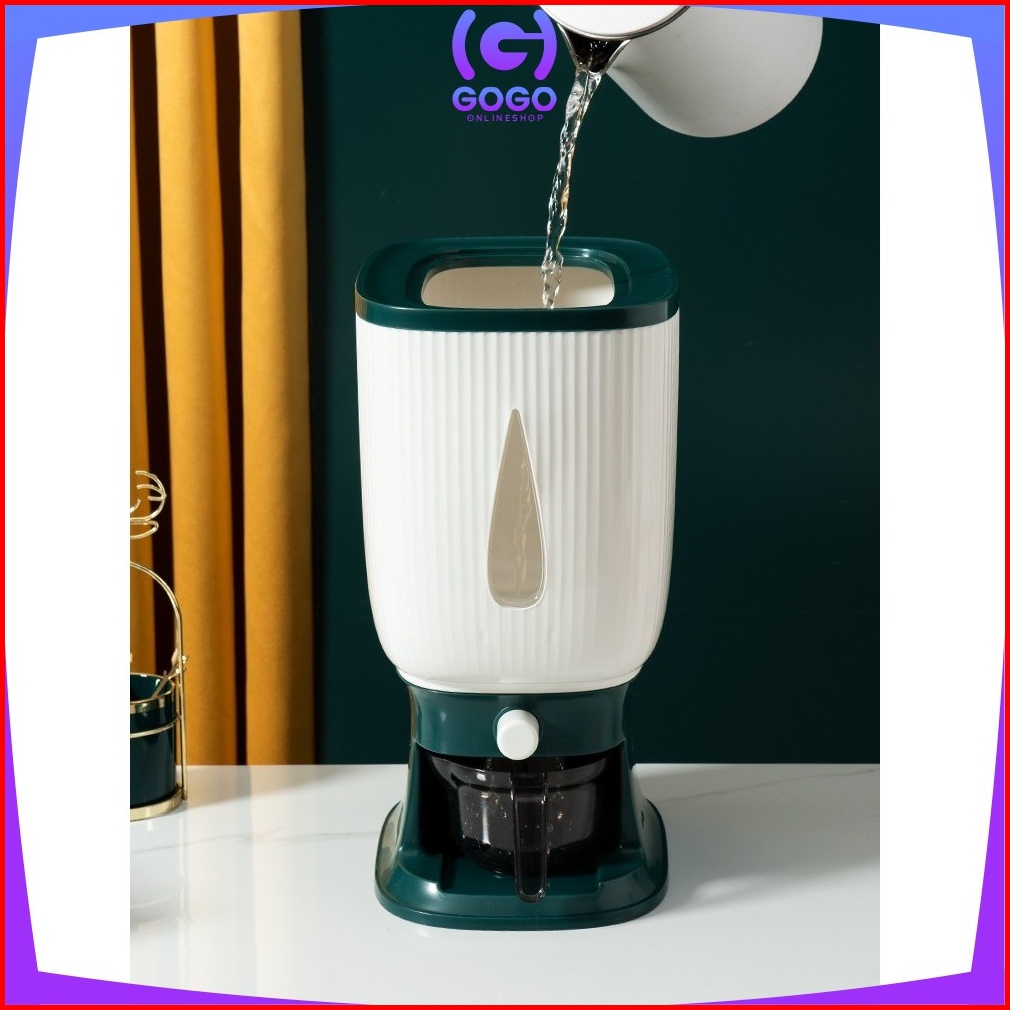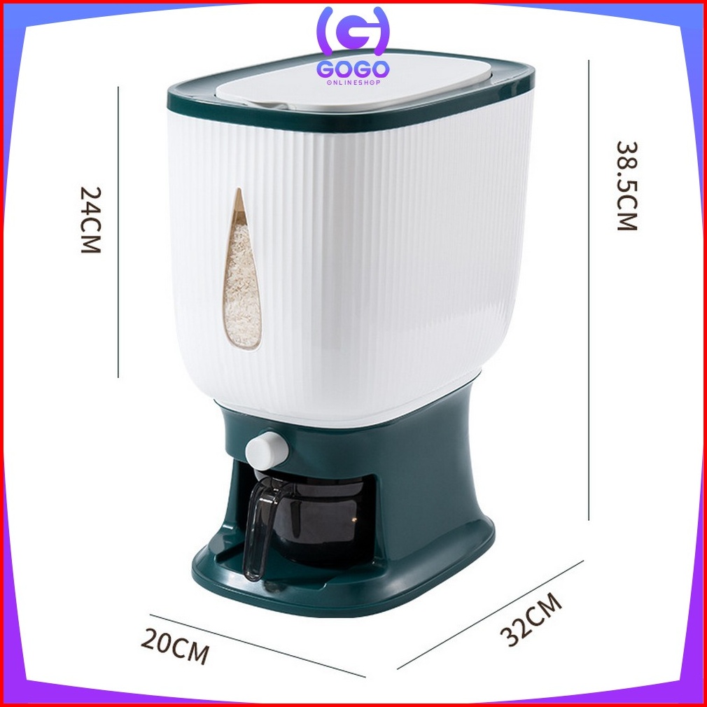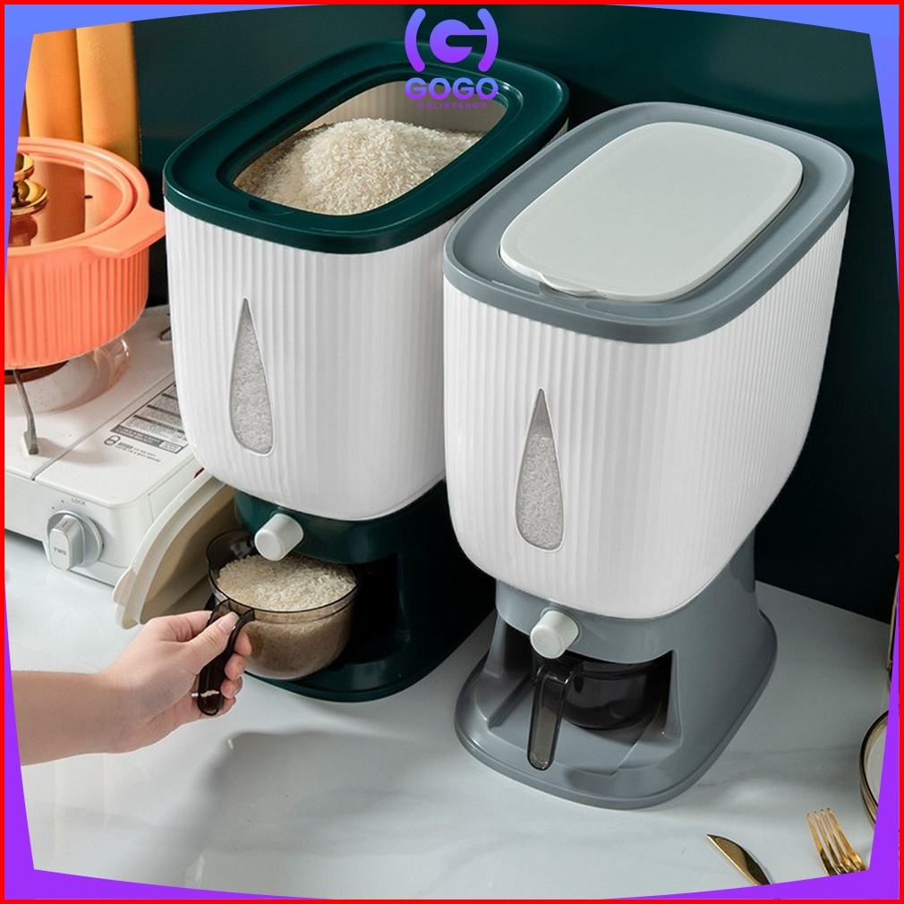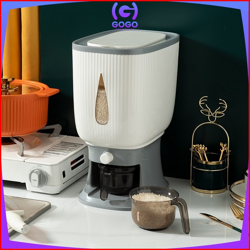 Gogo-c360 Dispenser Beras 10 Kg Rice Dispenser Tempat Wadah Penyimpanan Beras Otomatis Rice Box 10 Kg Dengan Wadah Penge