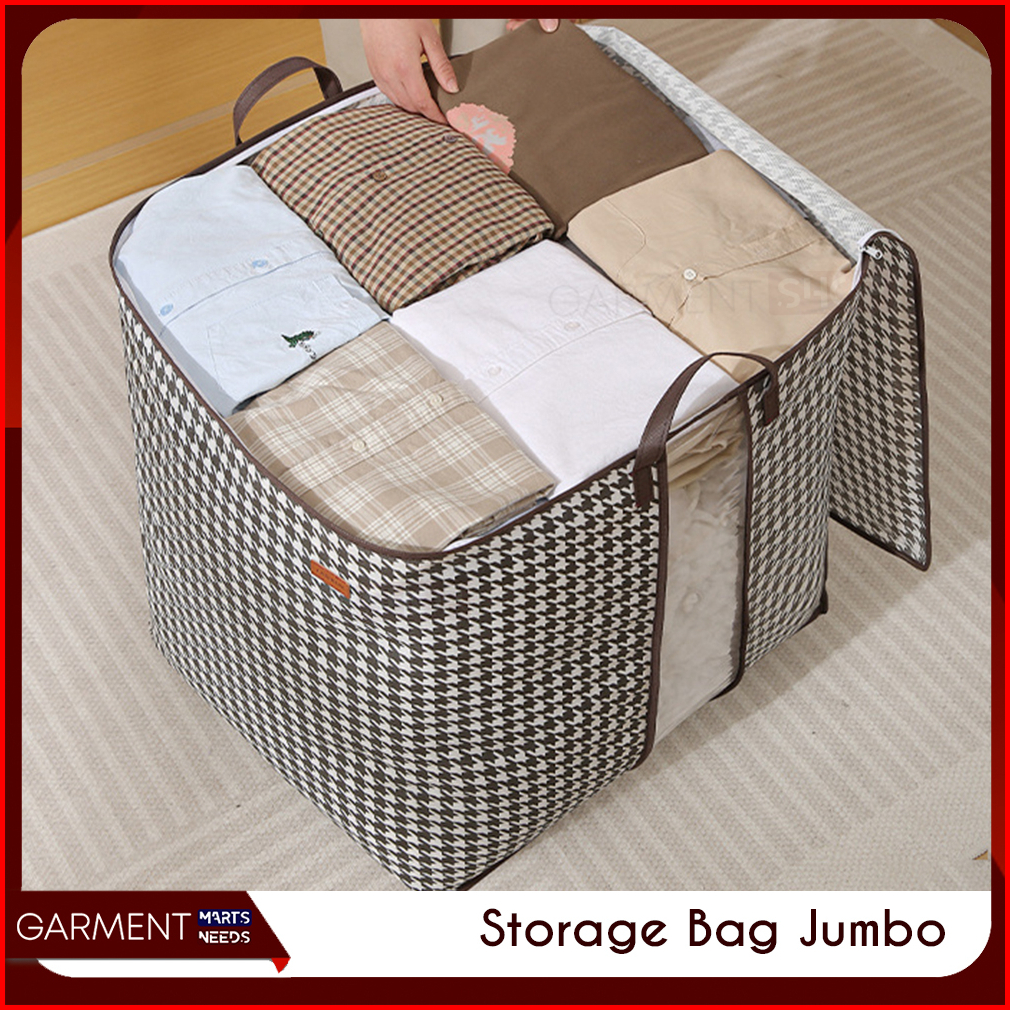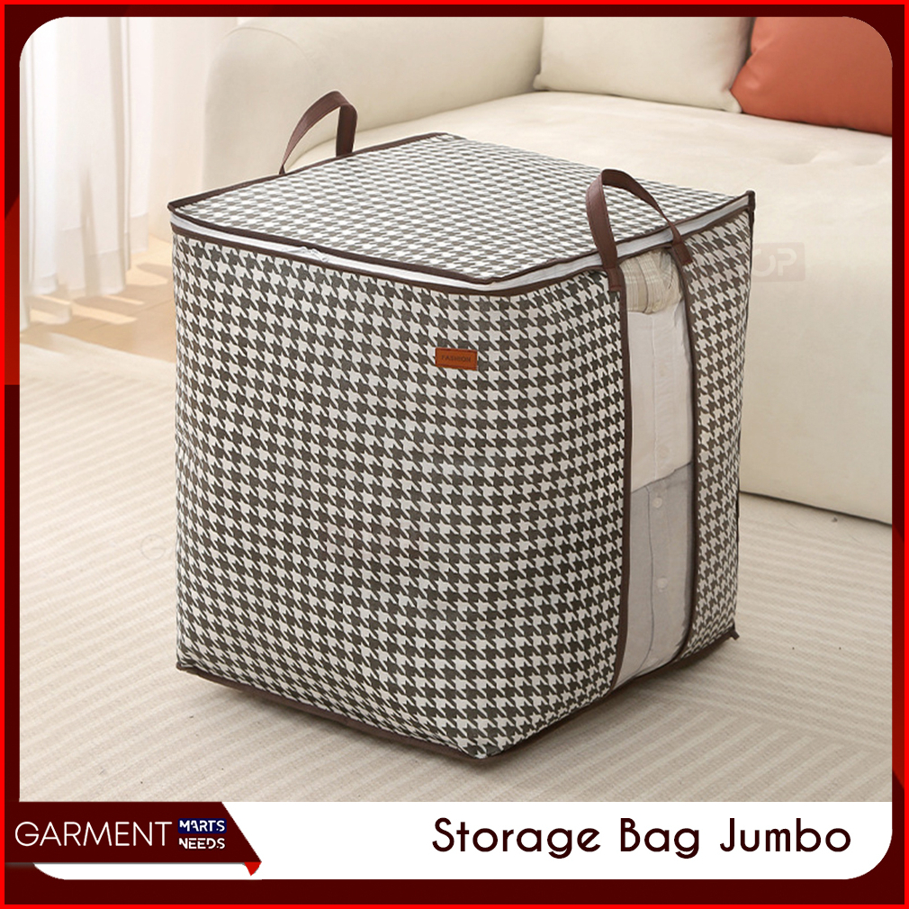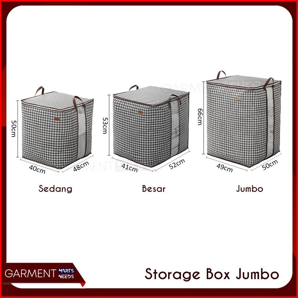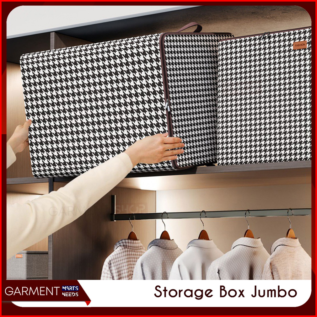 Storage Box Lipat Jumbo Kuping Tempat Penyimpanan Baju Selimut Bed Cover Mainan Anak Resleting 2 Arah