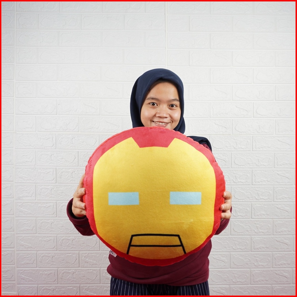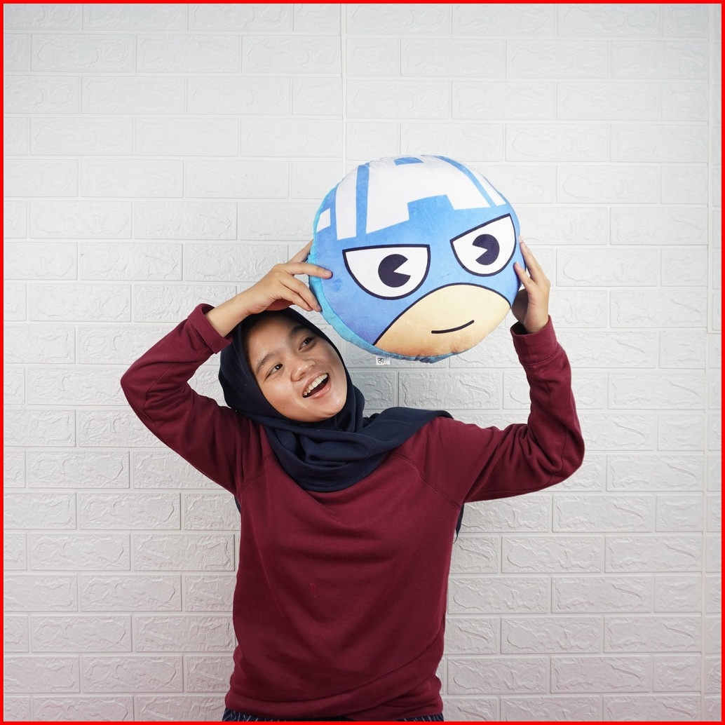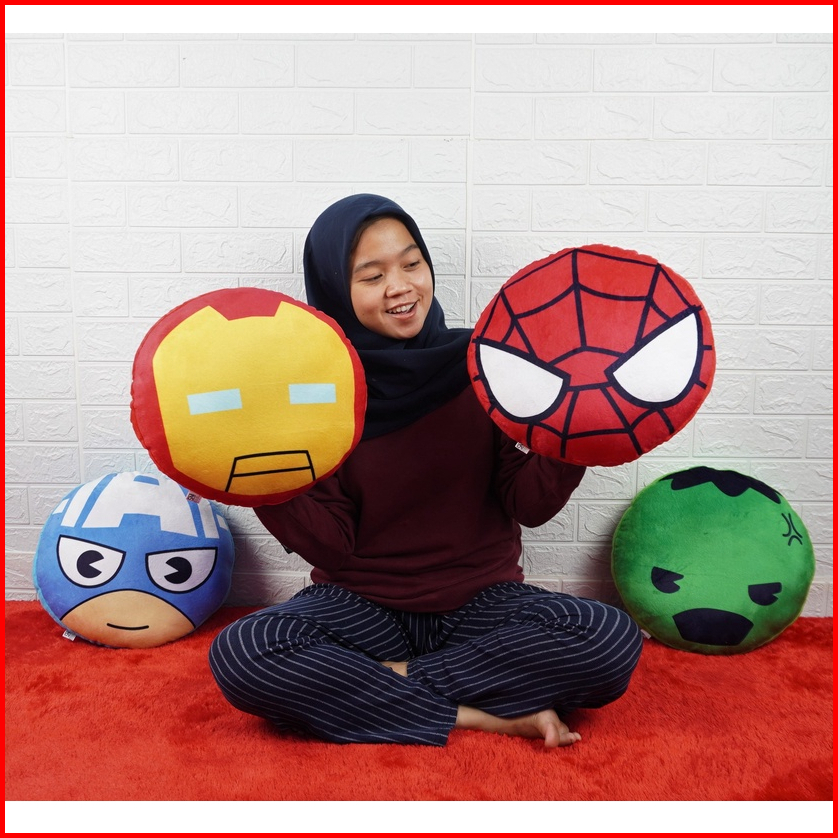 Bantal Sofa Bulat Motif Karakter Superhero Spiderman Iron Man Hulk Captain Amerika Bahan Halus 35cm