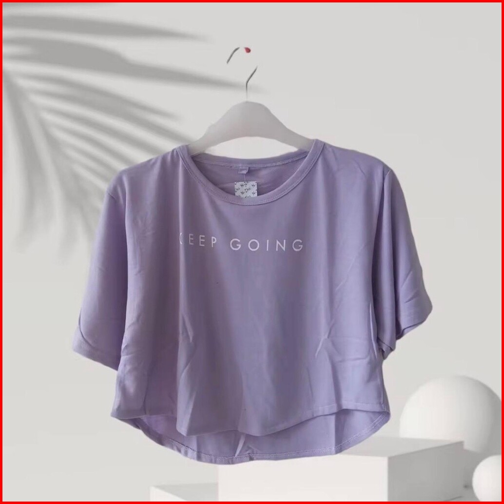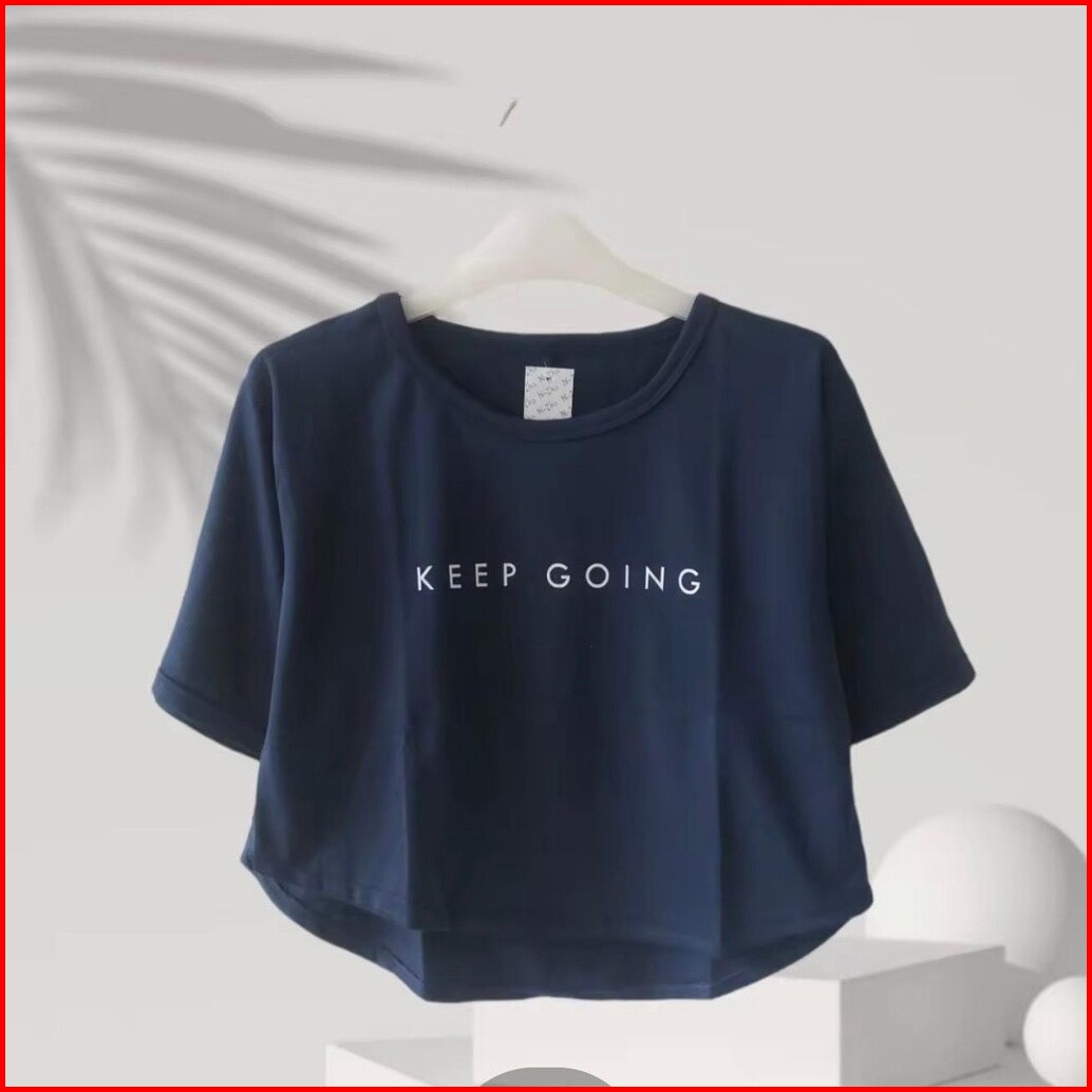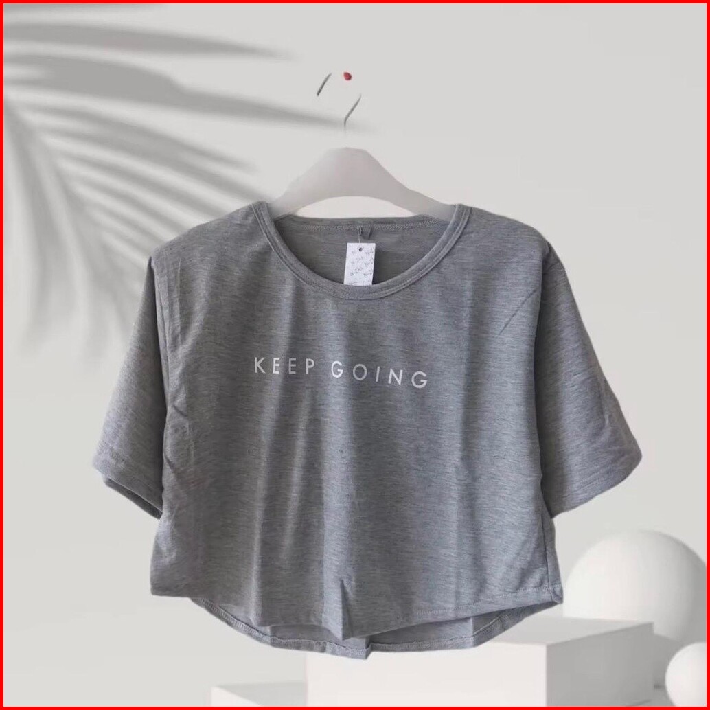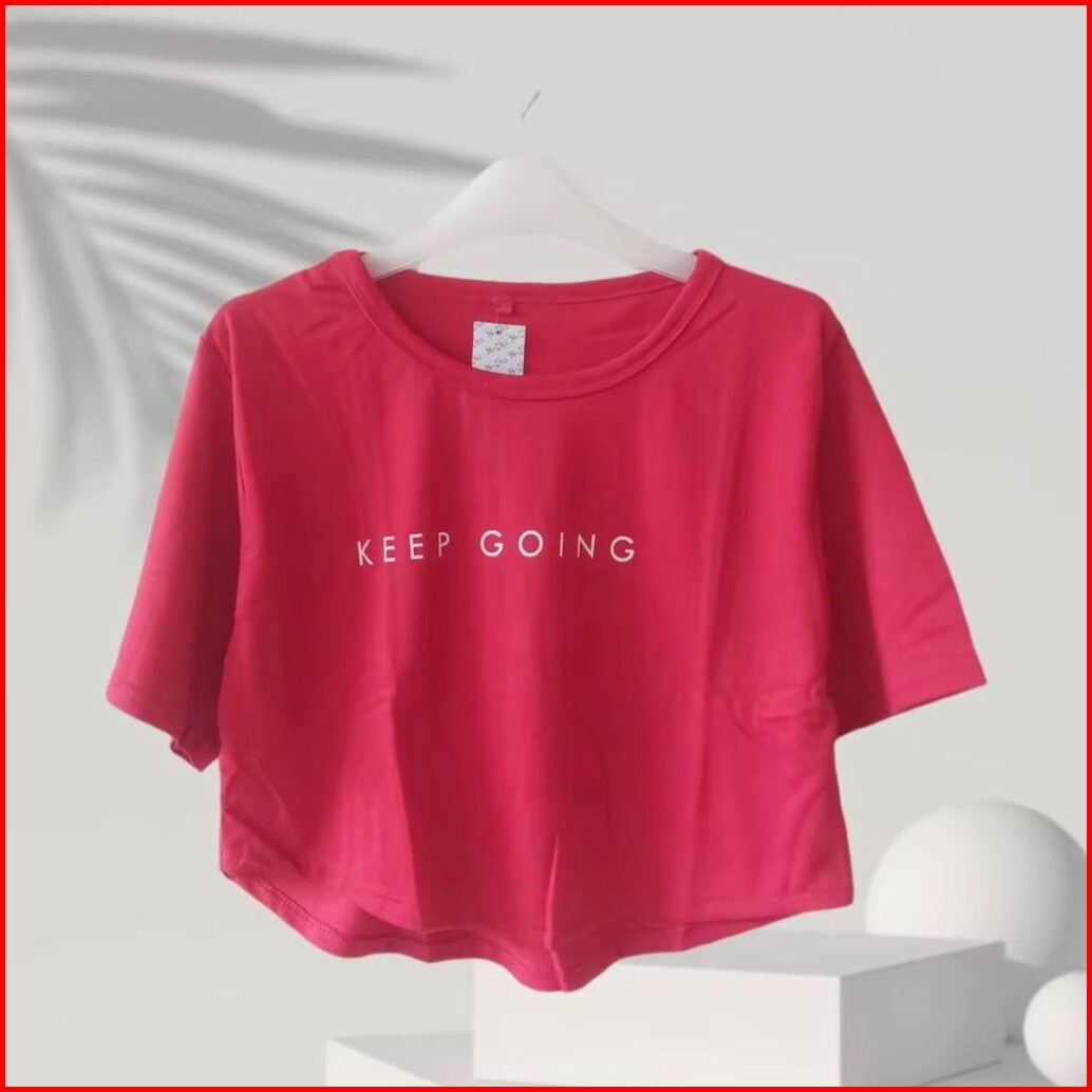 Crop Top Keep Going Kaos Santai Crop Oversize Kaos Cewek Baju Wanita