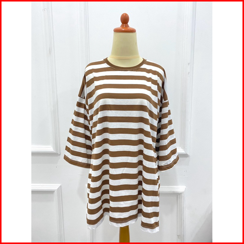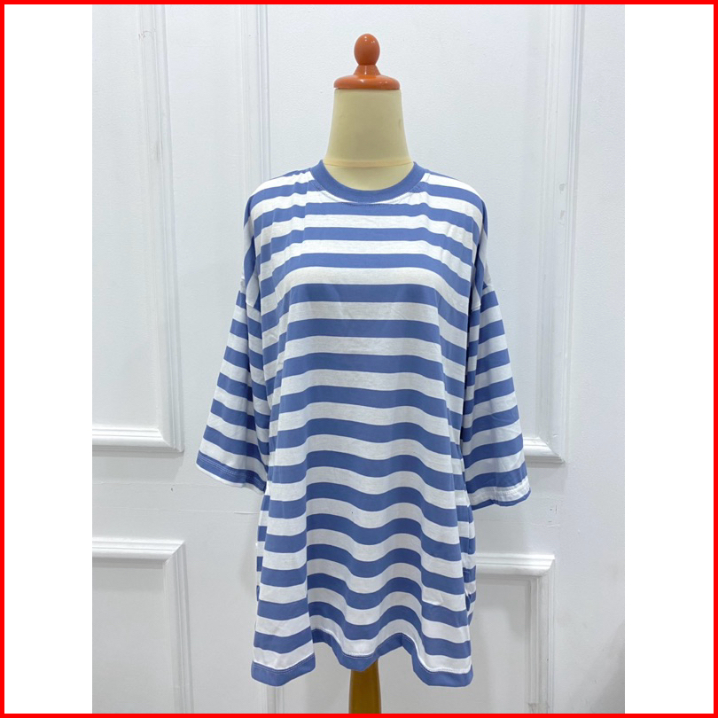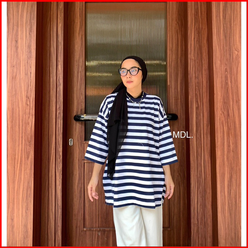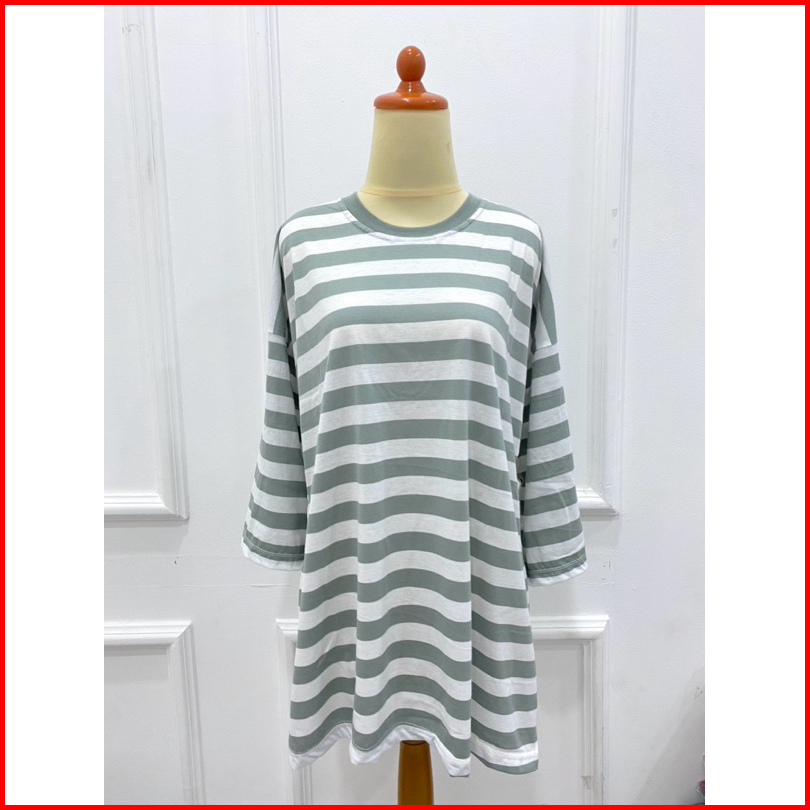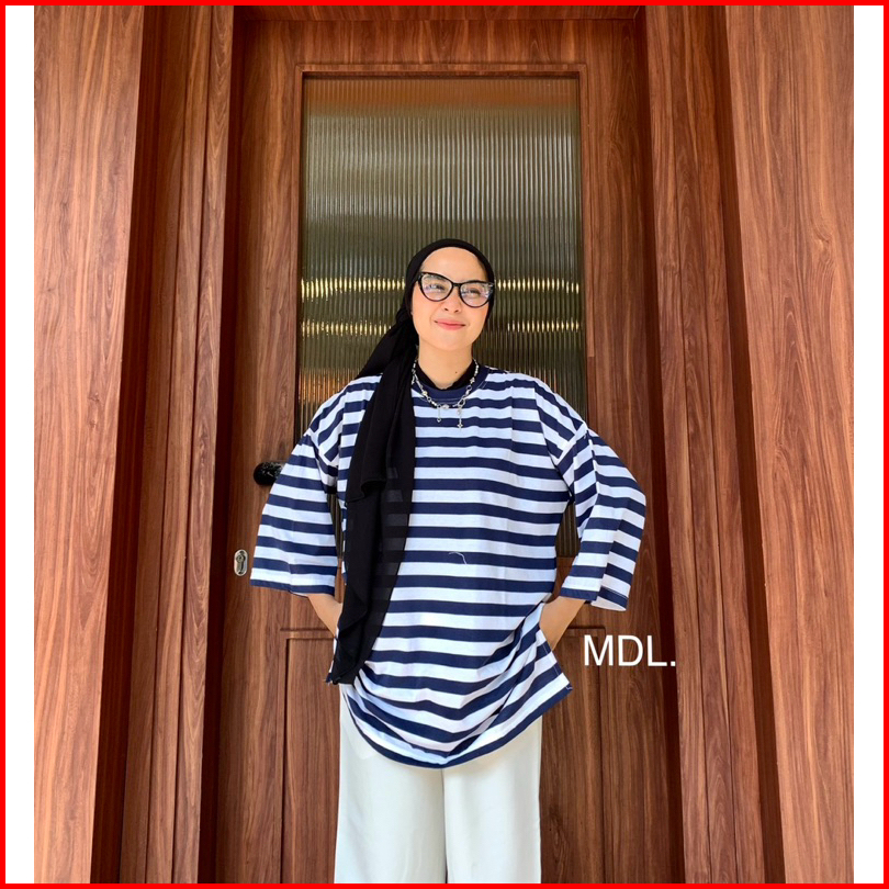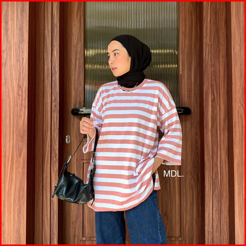 Kaos Oversize Stripy Salur Stripes Top Jumbo Xxl Basic Lengan 7 8 Cotton Combed 30s Modellano