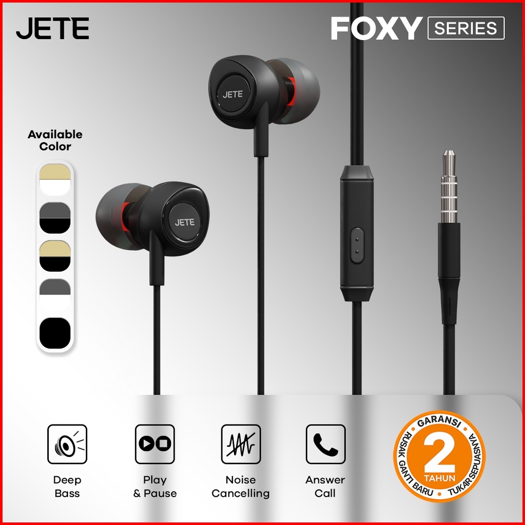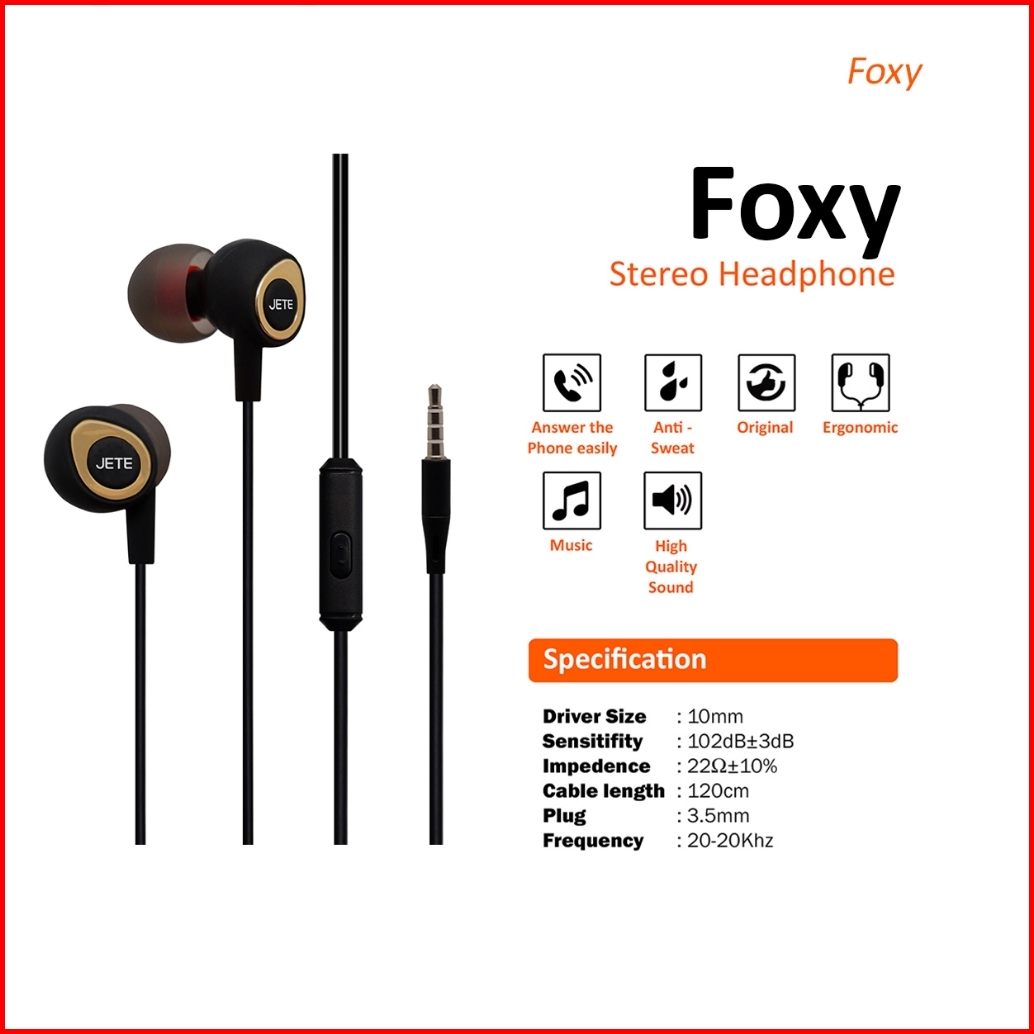 Headset Bass Earphone Headphone Jete Foxy - Garansi 2 Th