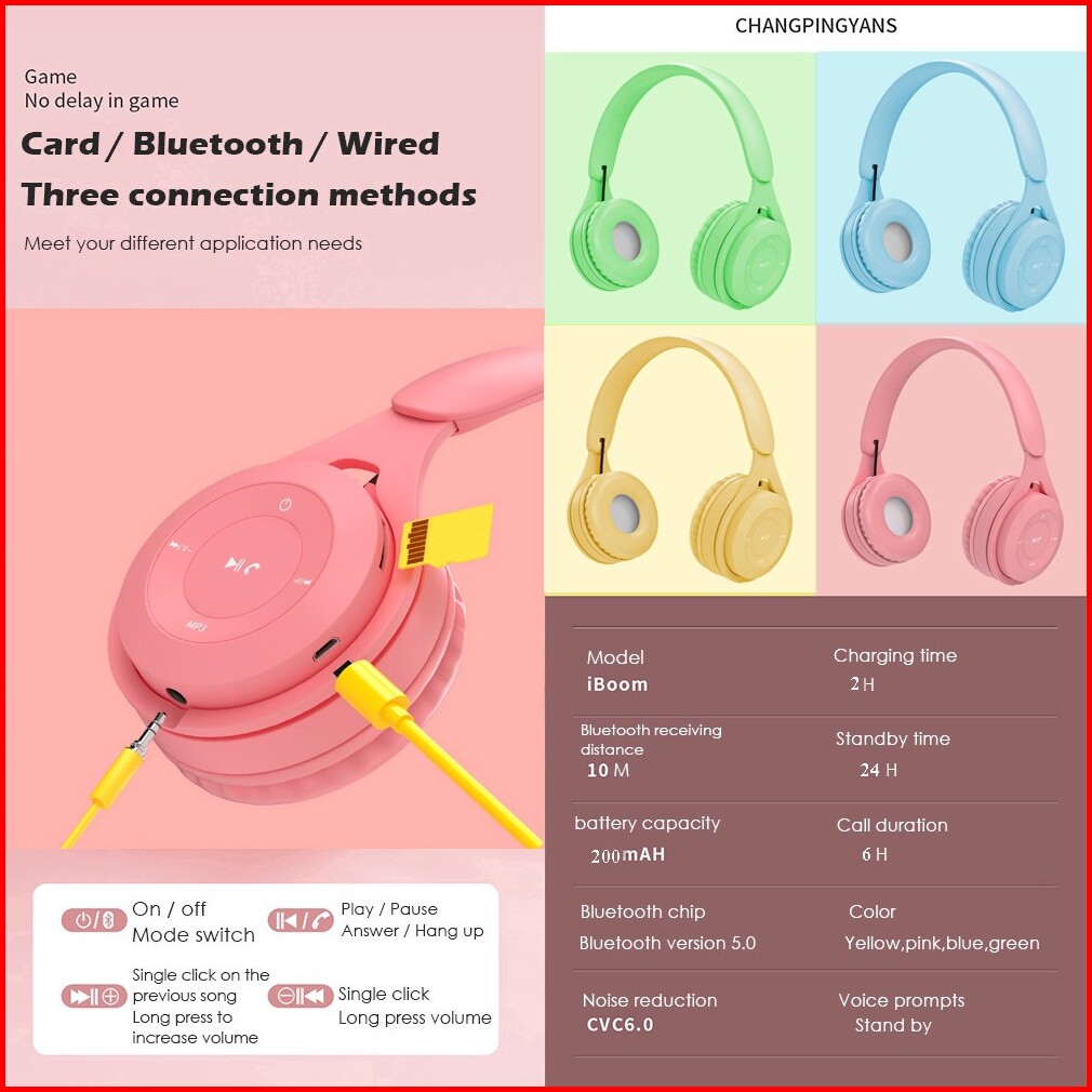 Headphone Wireless Y08 Macaron Bluetooth Headphone