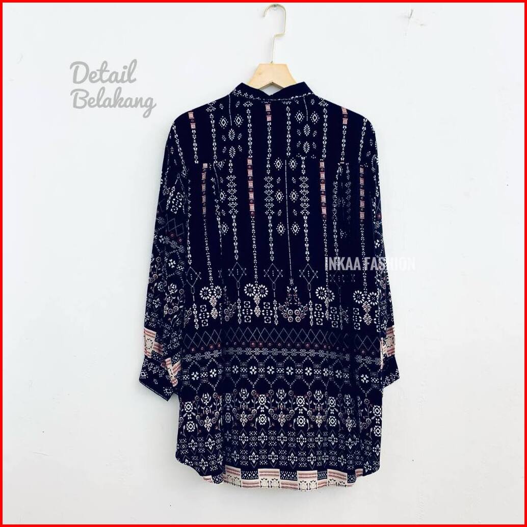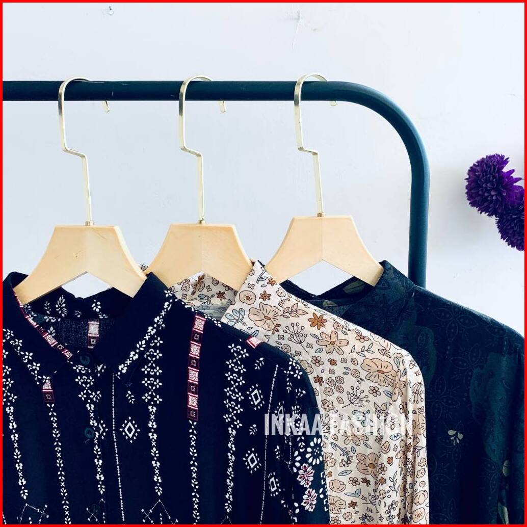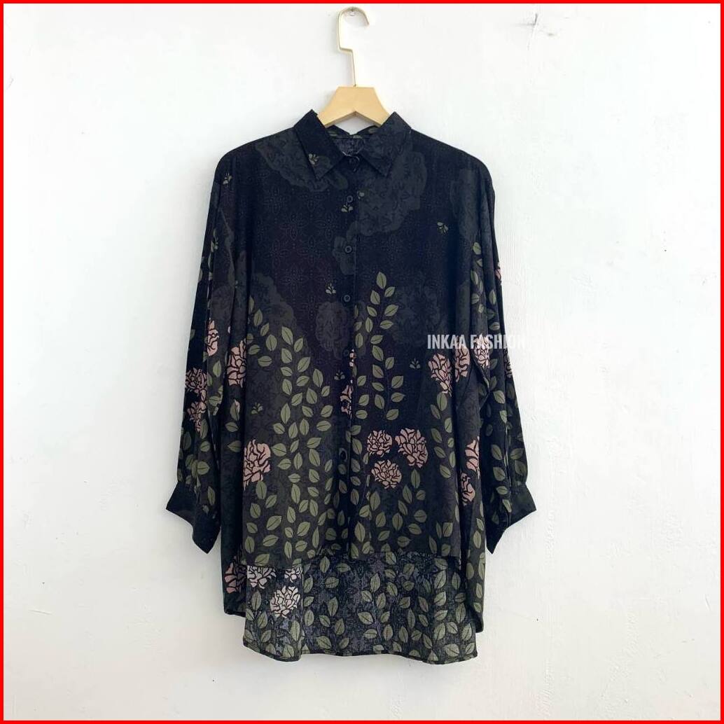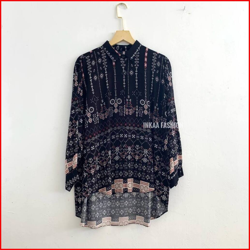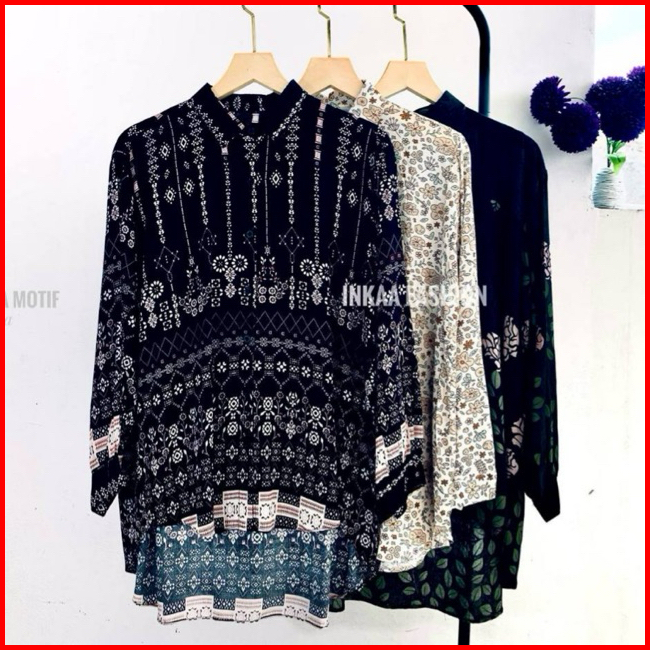 Kemeja Motif Wanita Lengan Panjang Bahan Rayon Twill Premium