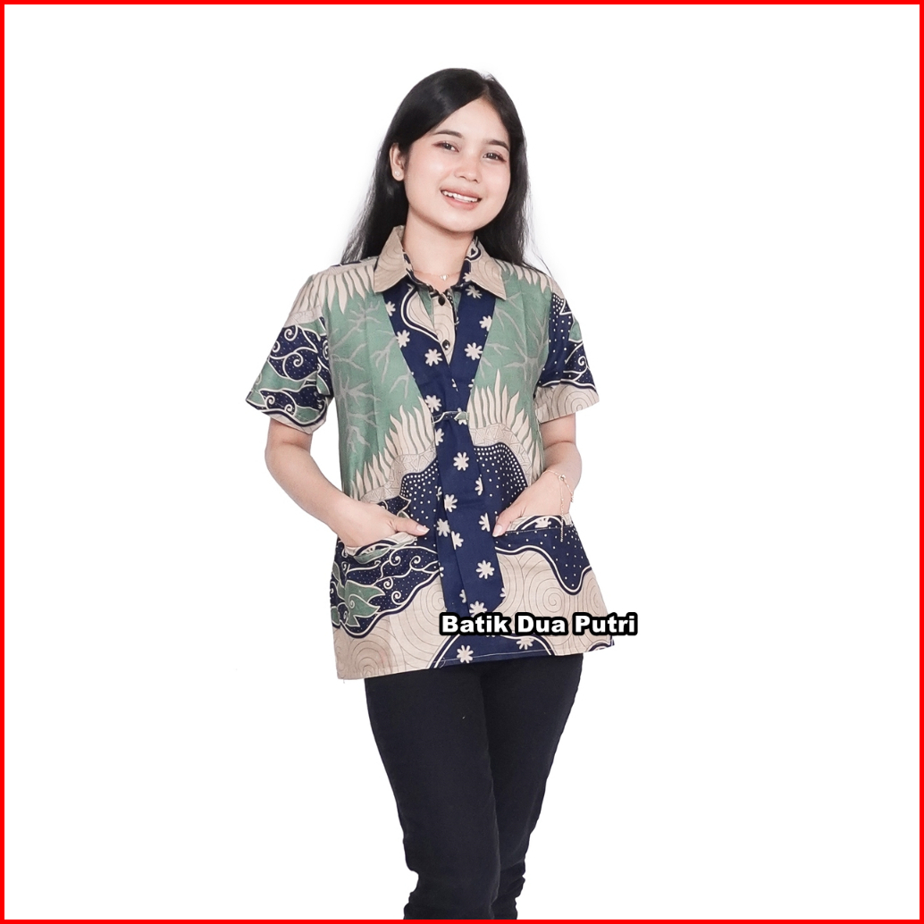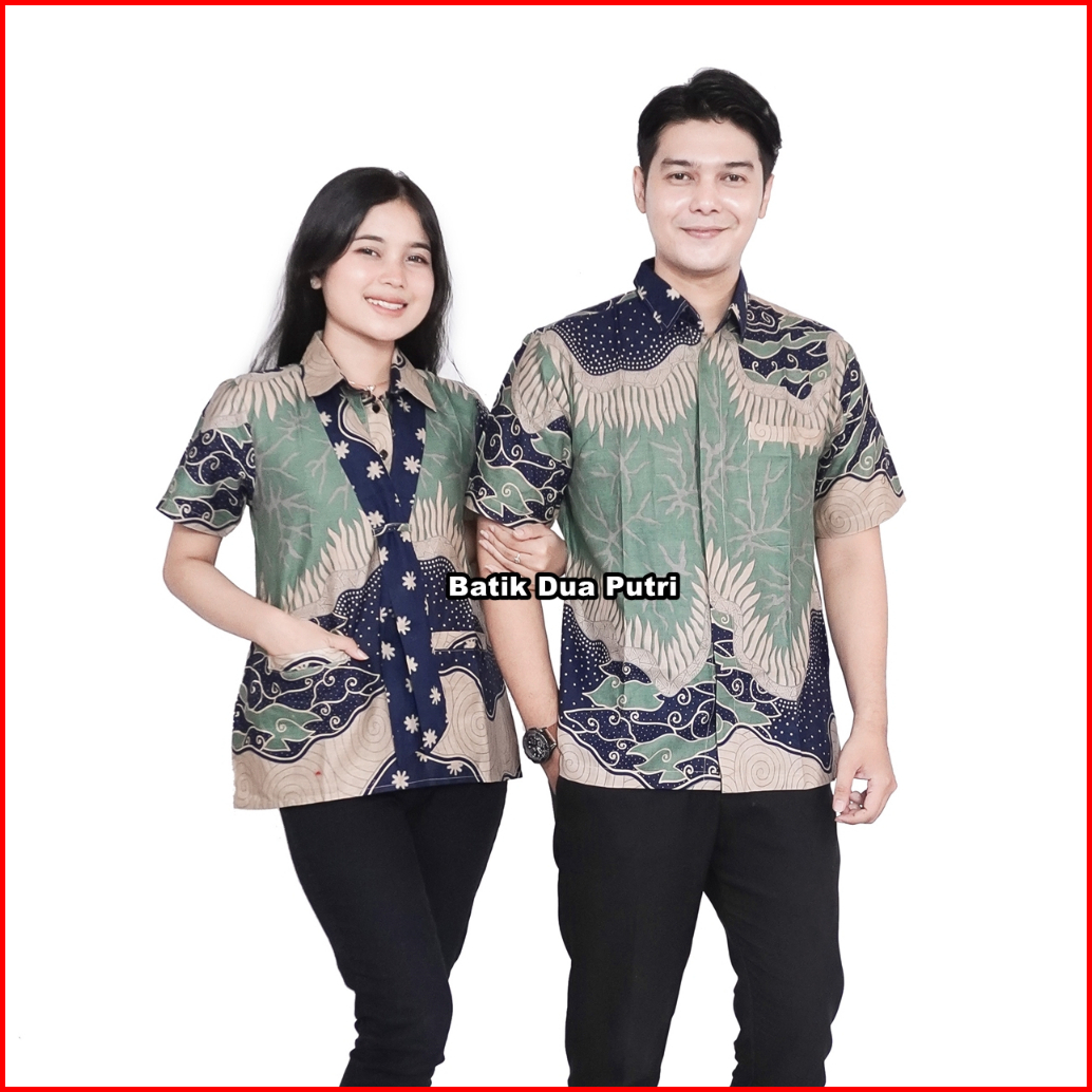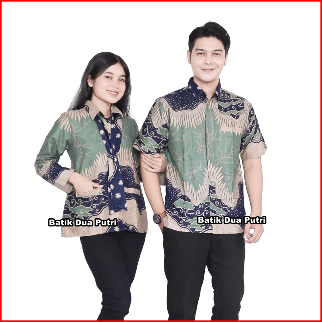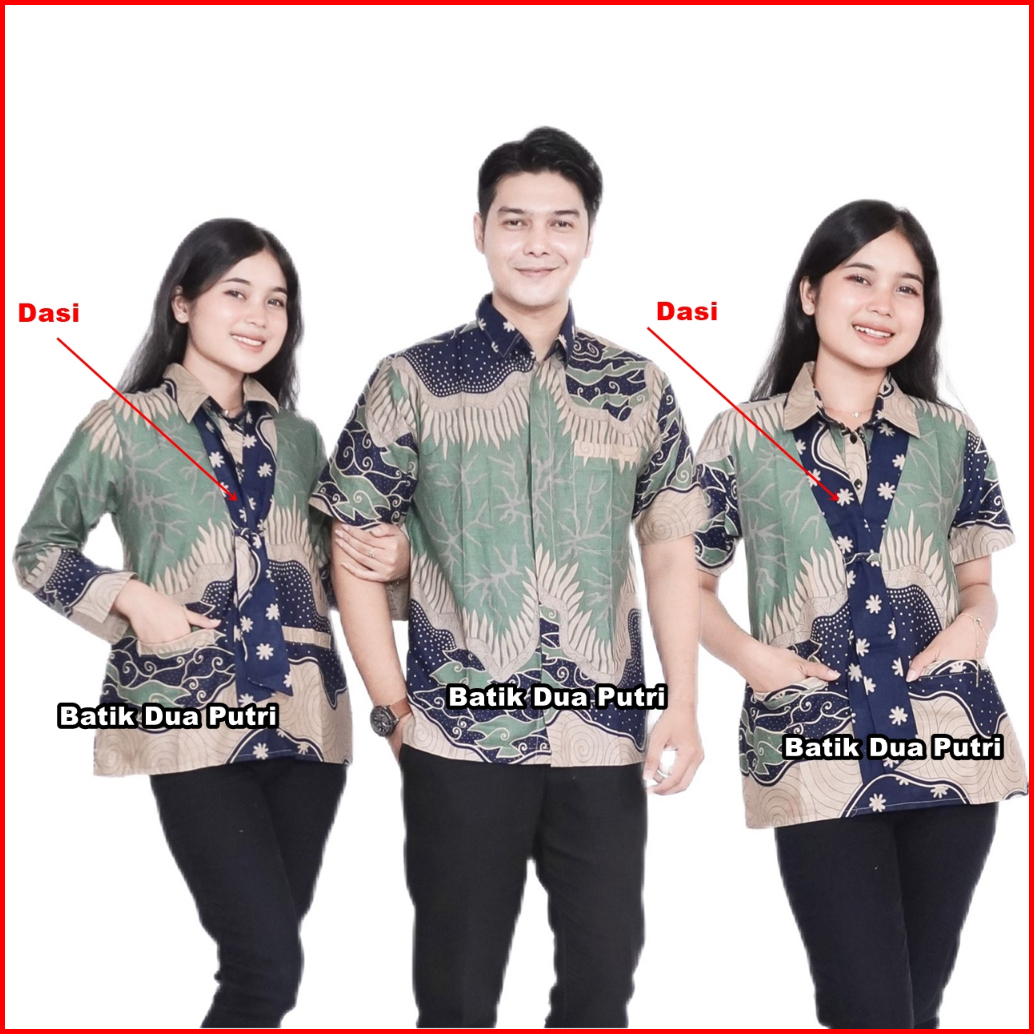 Kemeja Batik Wanita Bersaku Kantong Couple Pria Kantor Seragam Dasi Hijau Batik Dua Putri
