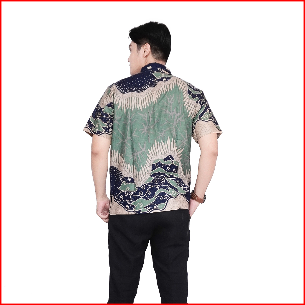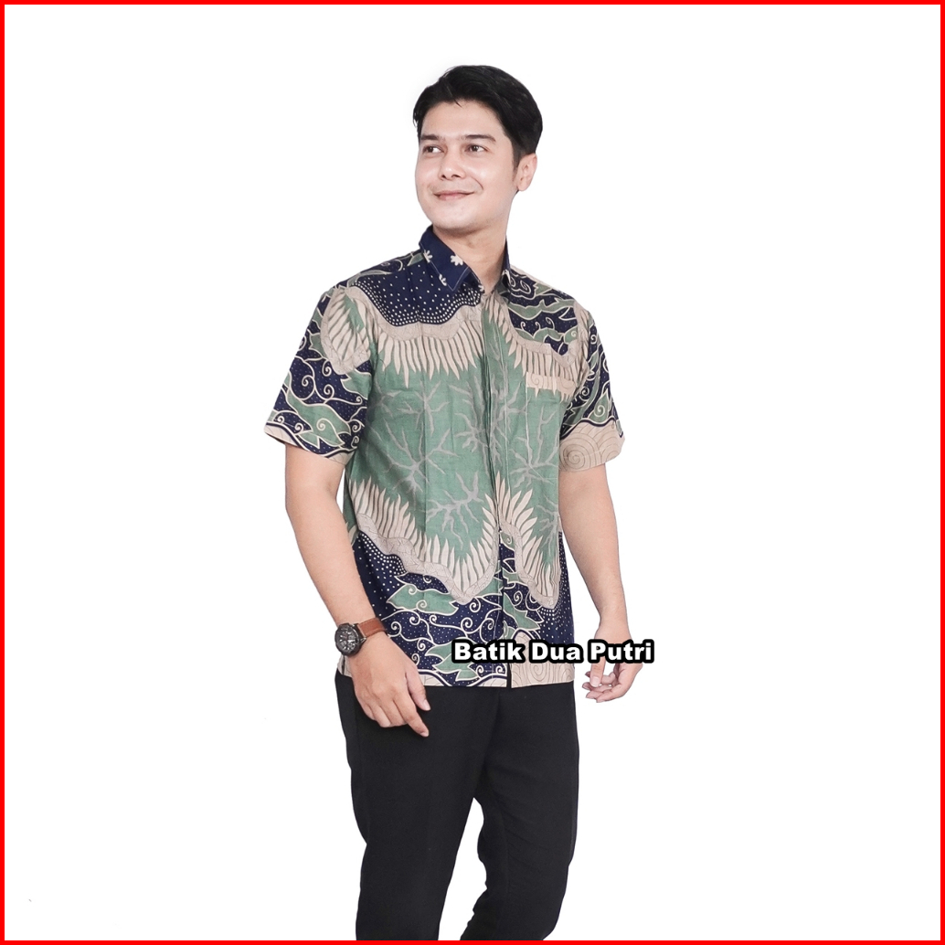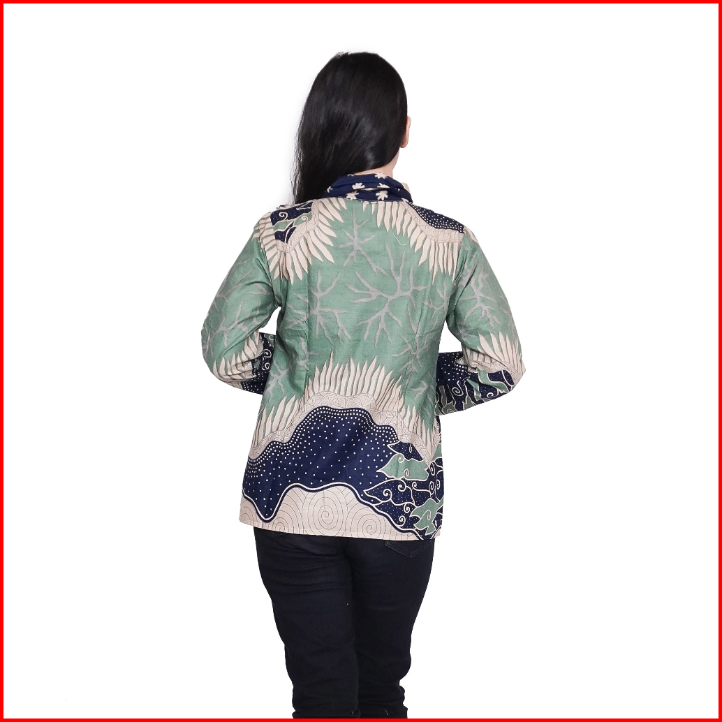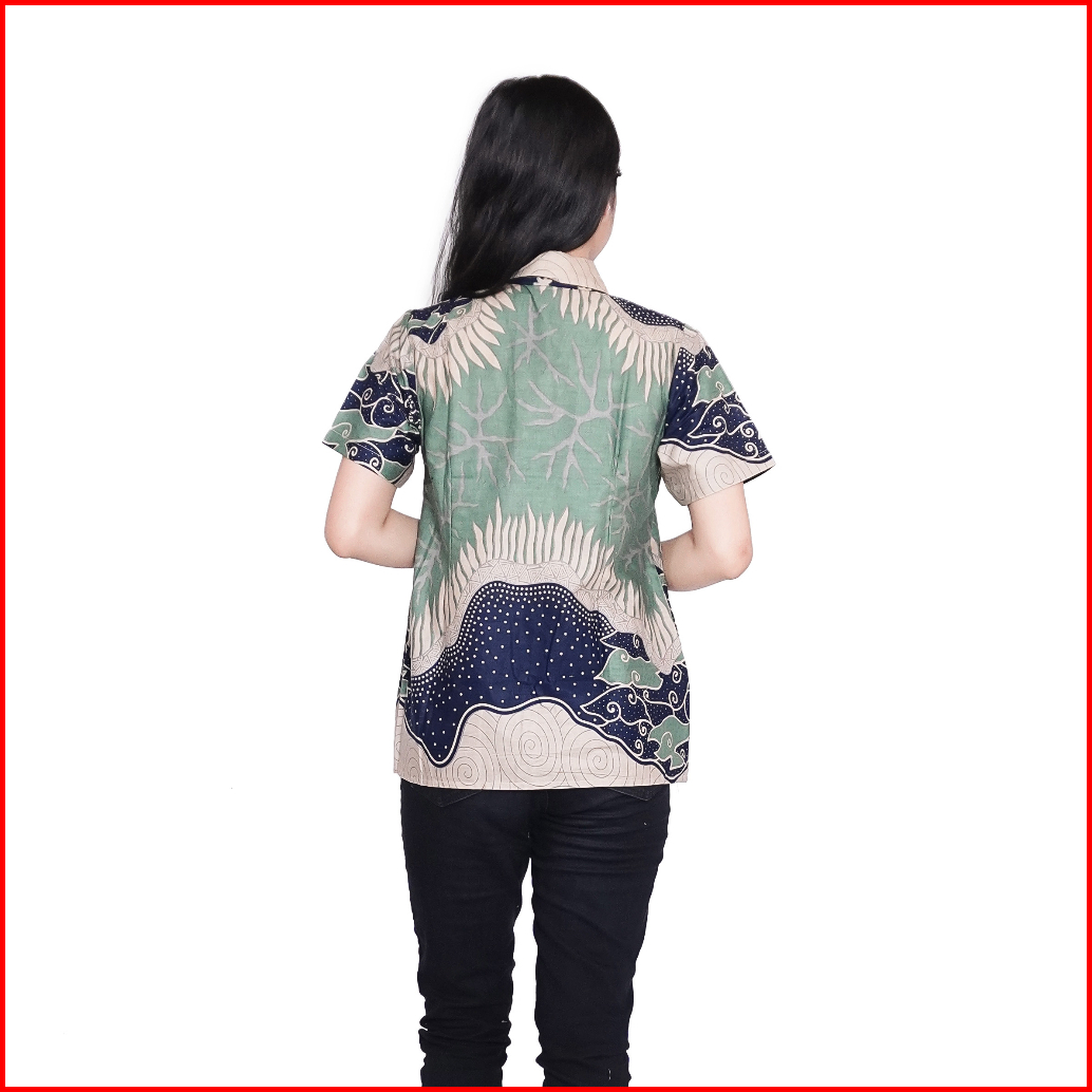 Kemeja Batik Wanita Bersaku Kantong Couple Pria Kantor Seragam Dasi Hijau Batik Dua Putri