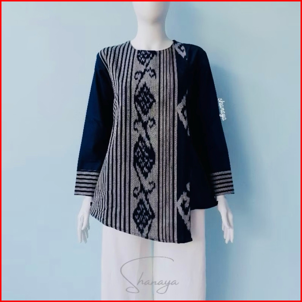 Shanaya Batik Blus Tenun Troso Ori Kombi Toyobo Warna Navy Blouse Batik Kerja Cantik