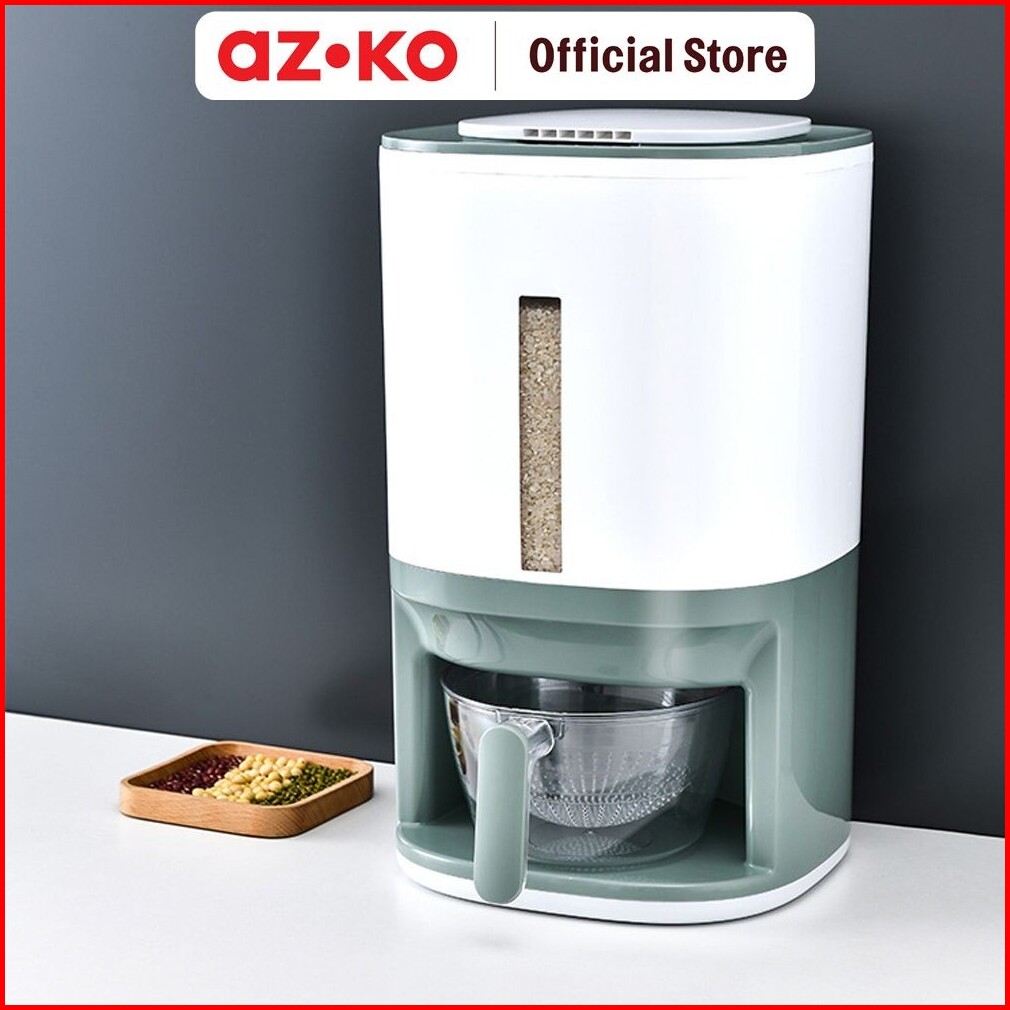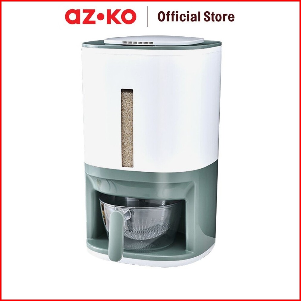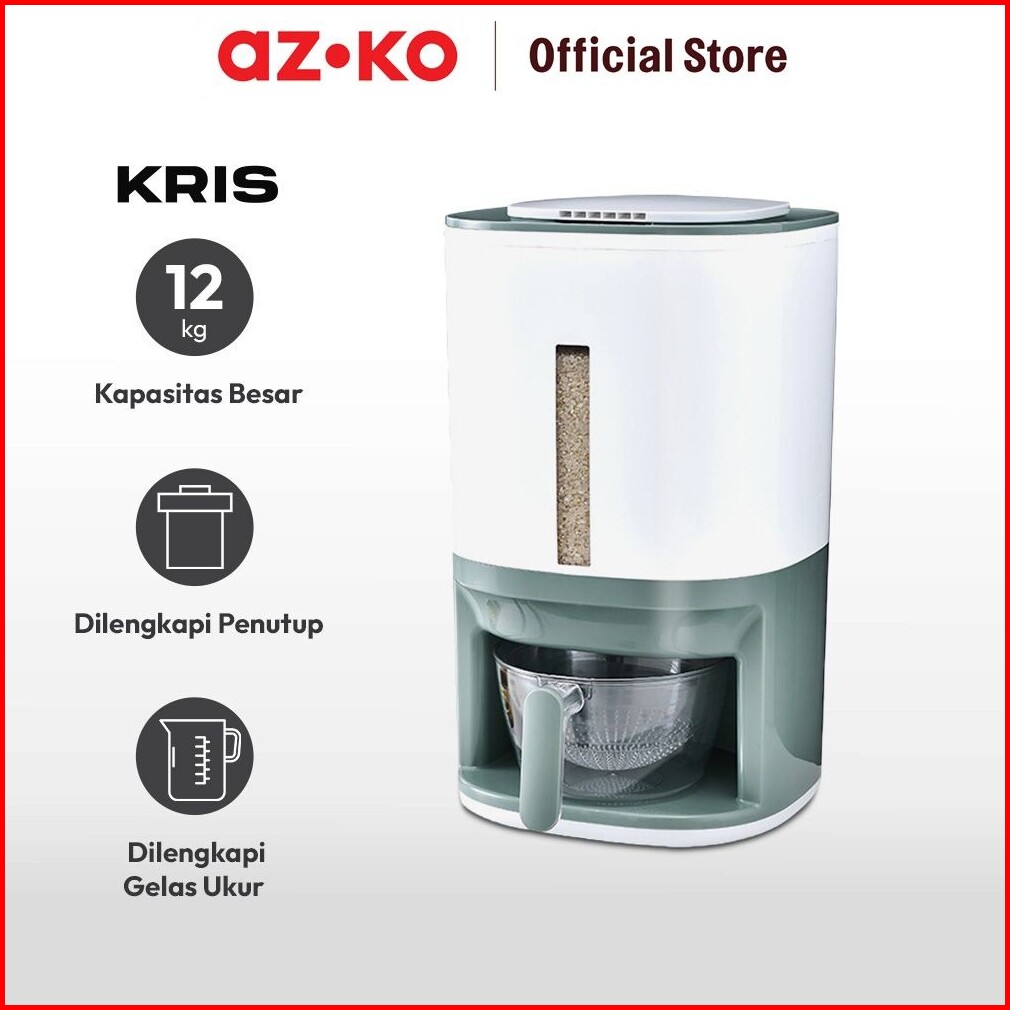 Azko Kris 12 Kg Tempat Beras Dengan Pengukur Dan Saringan - Putih Rice Container Food Grade Kotak Beras Wadah Penyimpana