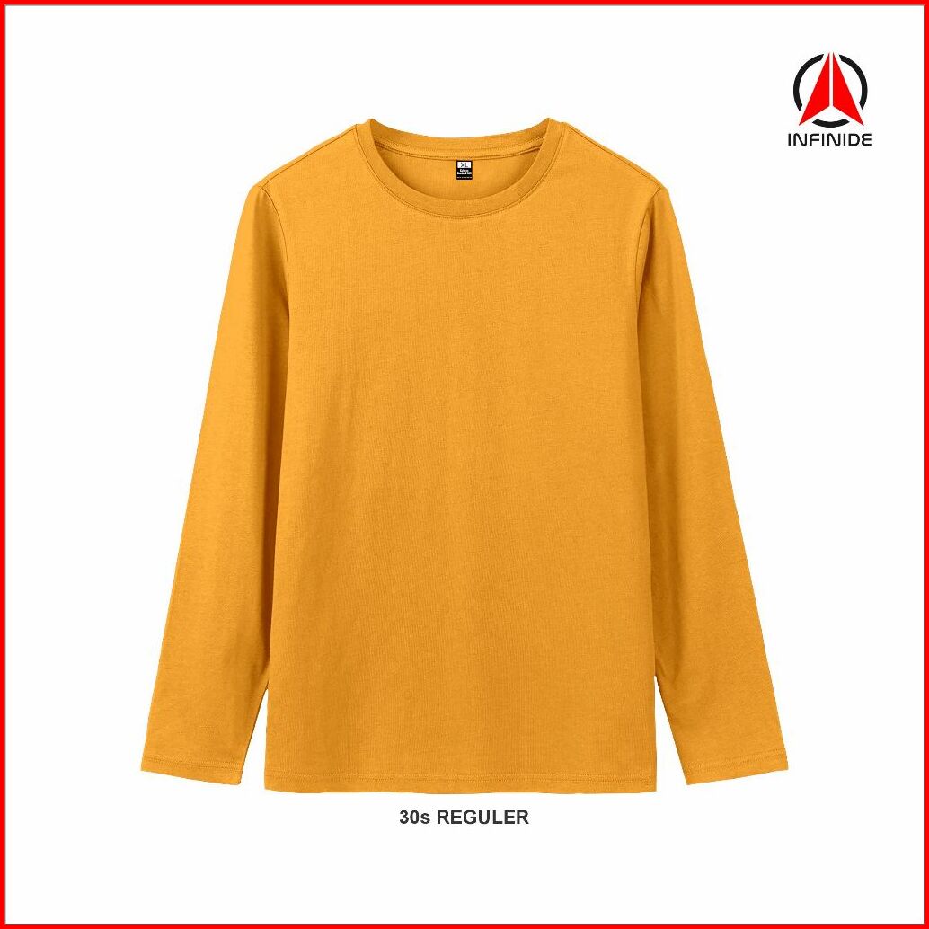 Infinide Kaos Polos 30s Mustard Cotton Combed Reguler Lengan Pendek Dan Panjang Unisex