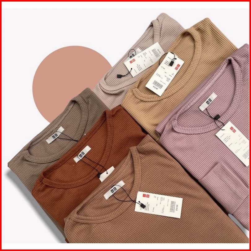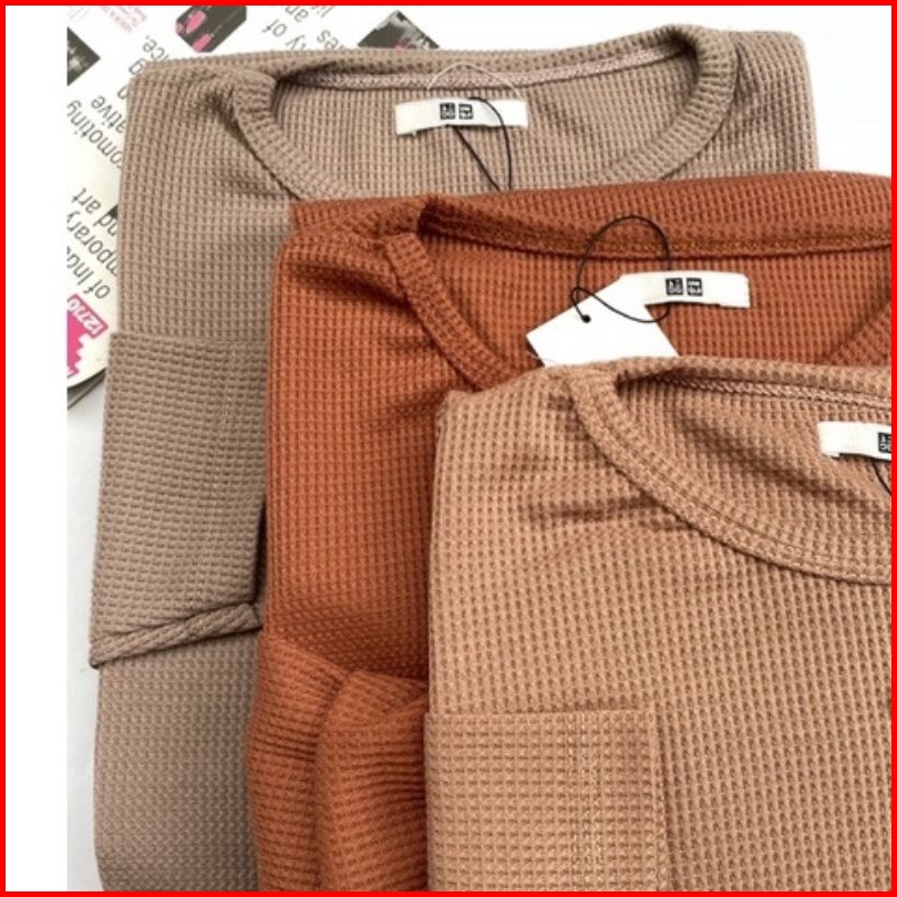 Kaos Waffle Wafer Lengan Panjang Wanita Basic Crewneck Polos Sweatshirt Waffel Uniqlo