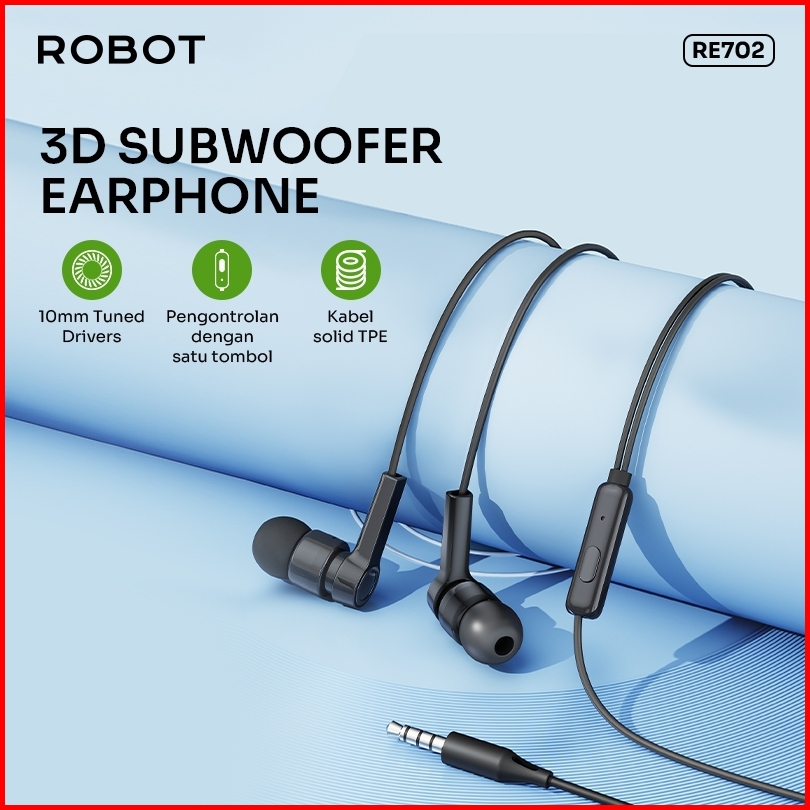 Robot Wired Headset 3d Subwoofer Earphone Headset Kabel Tpe Solid Re702 Original - Garansi 1 Tahun