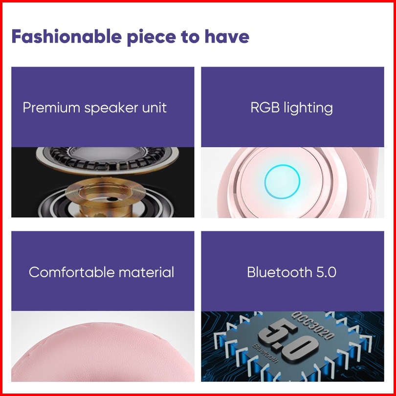Fingertime Headphone Bluetooth 5.0 Wireless Headset Earphones Hi-fi Stereo Rgb Light Bt06c