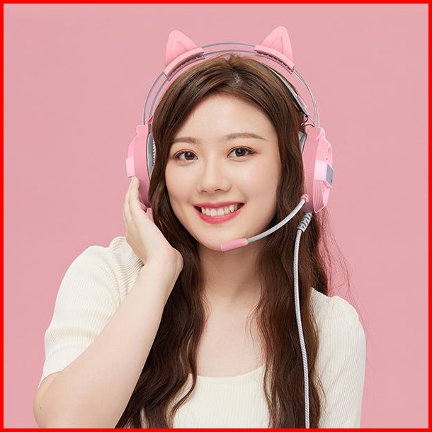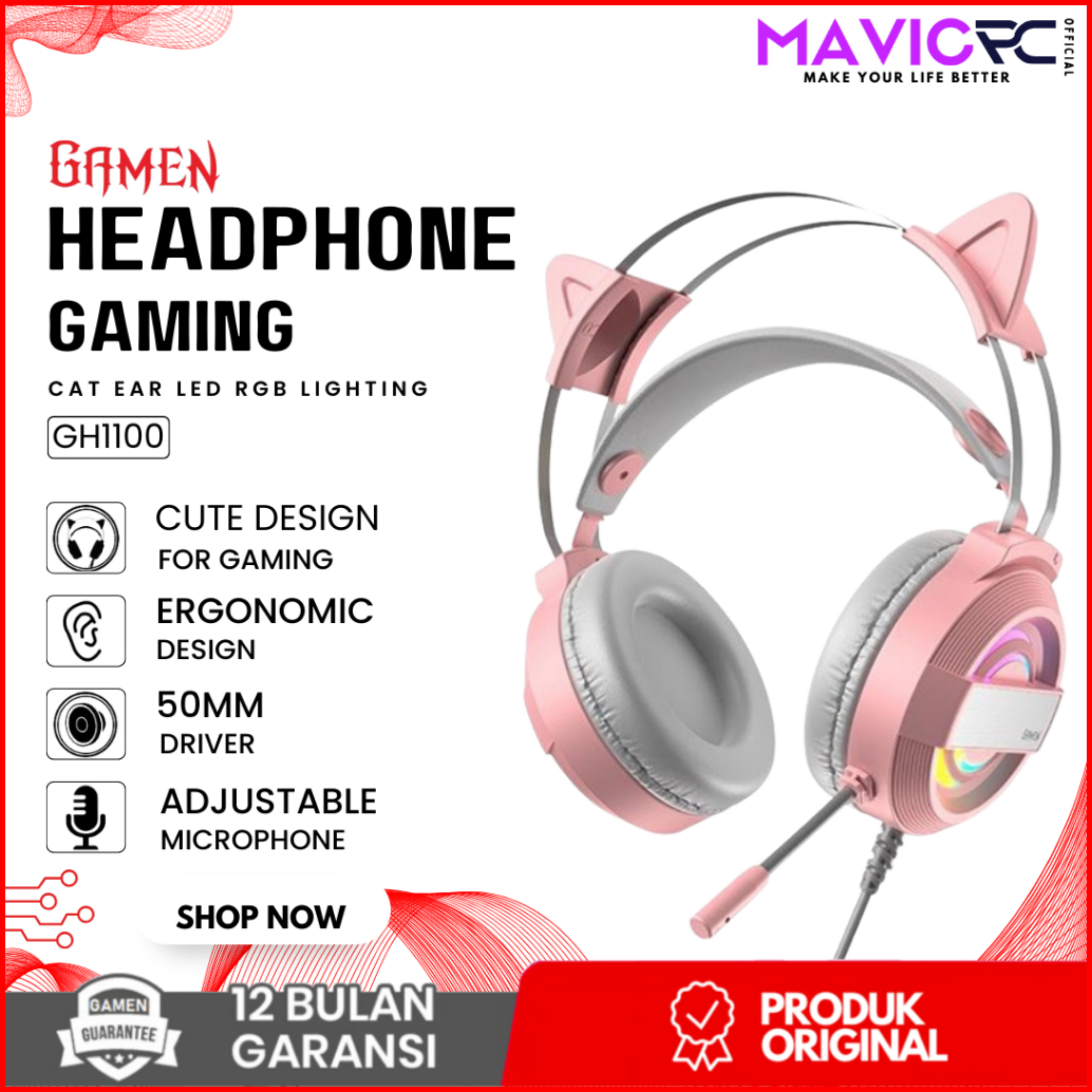 Gamen Gh1100 Pink Headset Earphone Headphone Gaming Cat Ear Led Rgb Lighting Original Bass - Garansi Resmi 1 Tahun