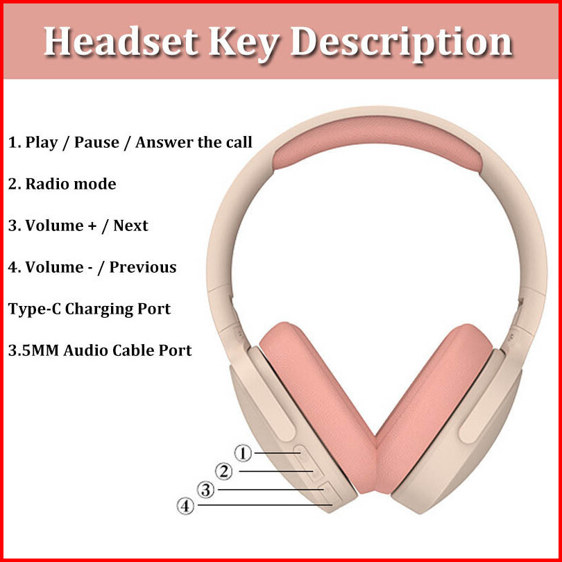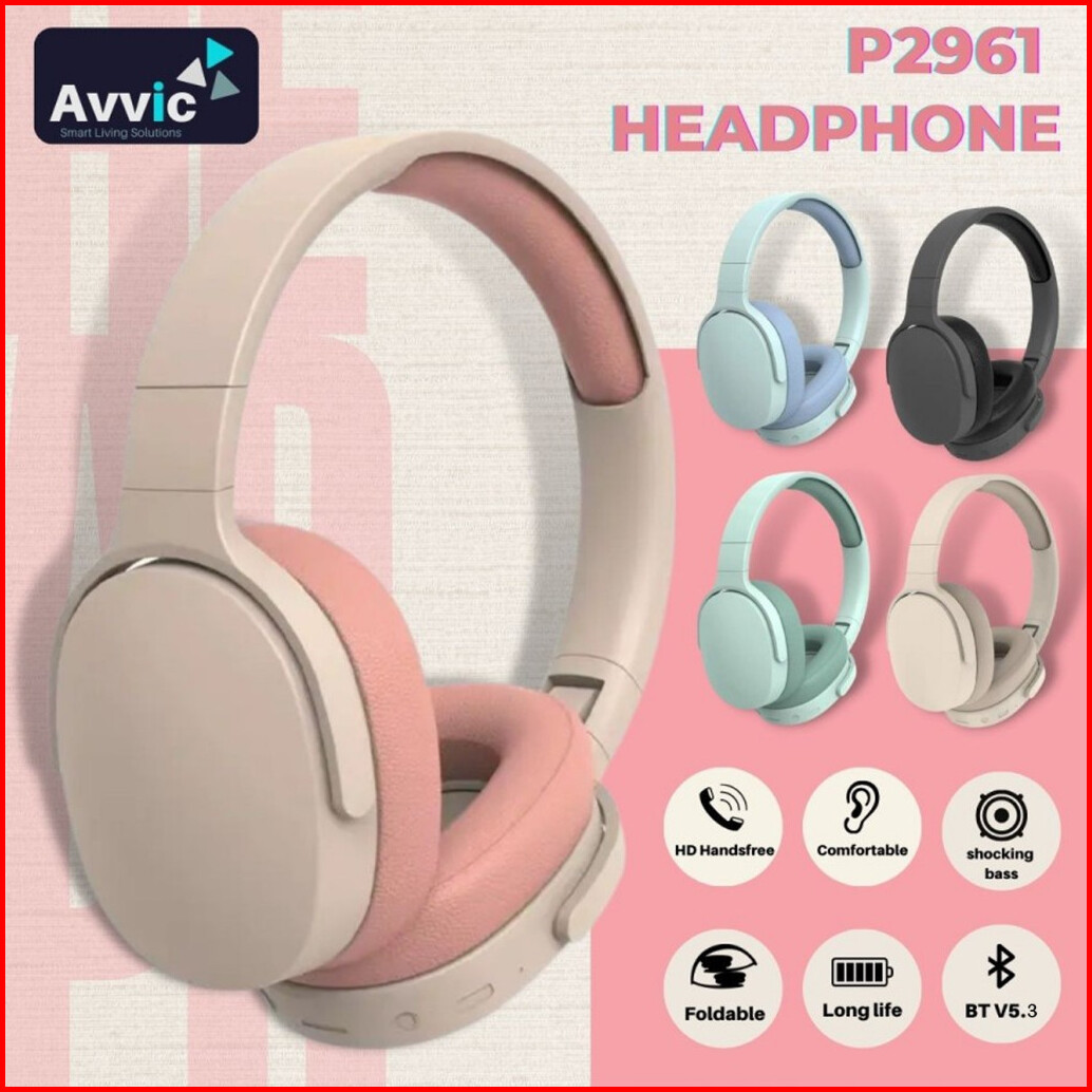 Avvic P2961 Headphone Wireless Bluetooth Headset Hifi Stereo Music 6d Socking Bass Tf Aux Support