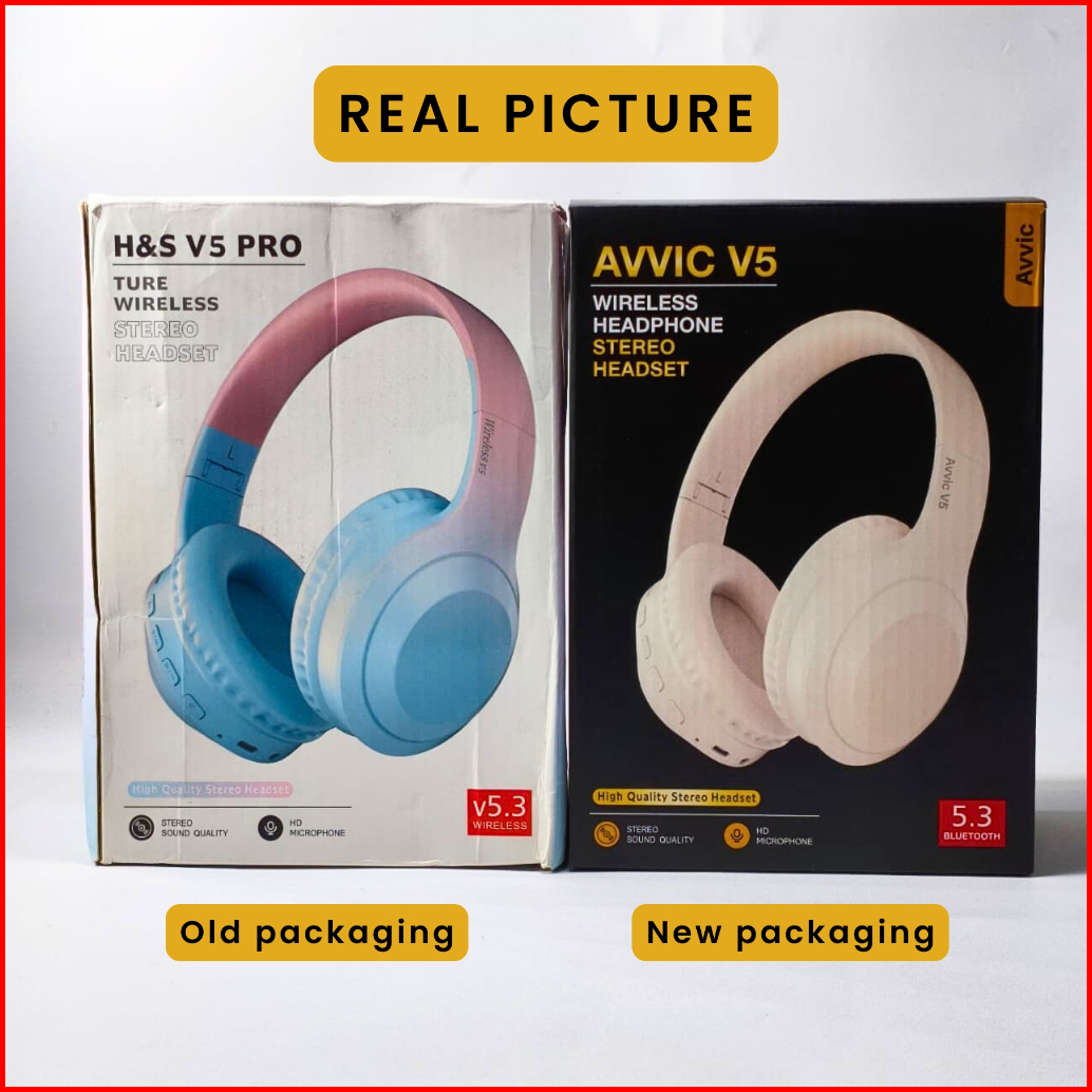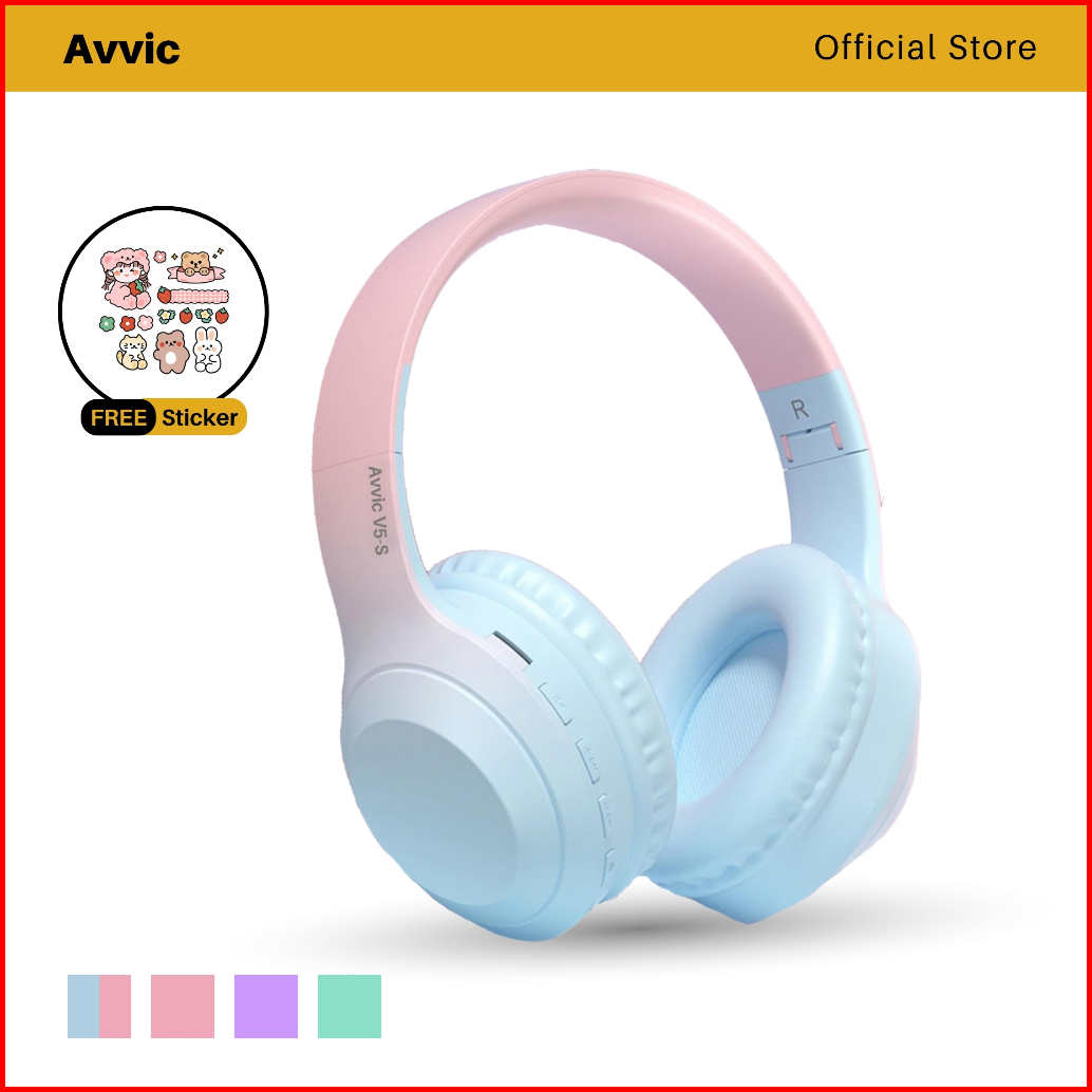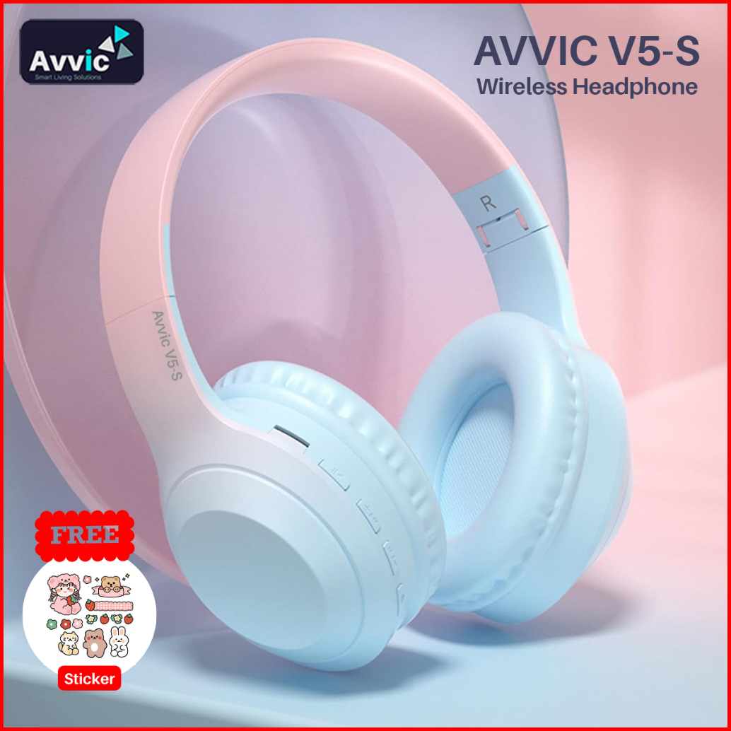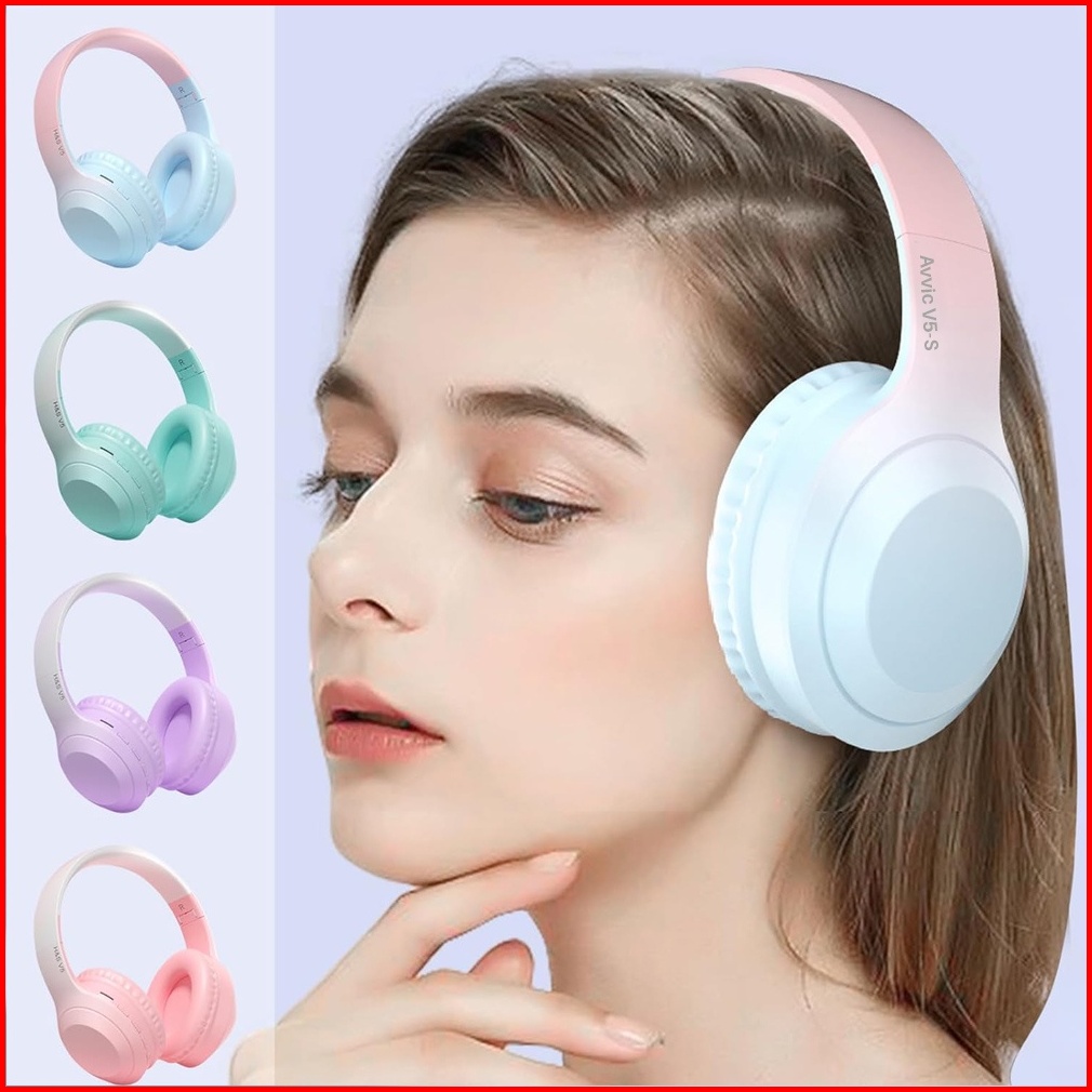 Avvic V5-s Wireless Headphone Bluetooth Gradient Color Headset Stereo Hifi Bass Hd Sound Earphone