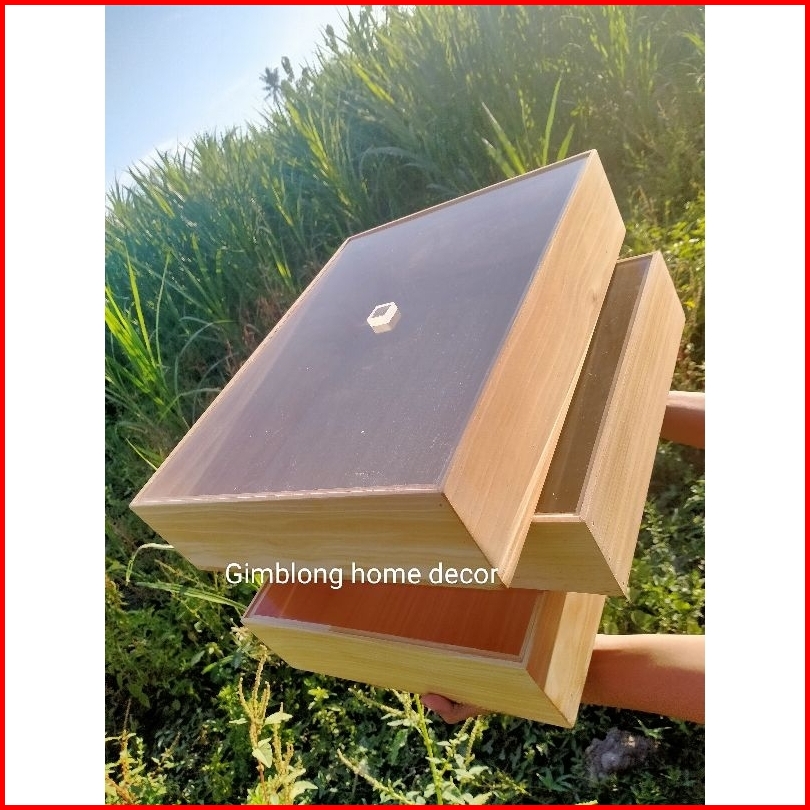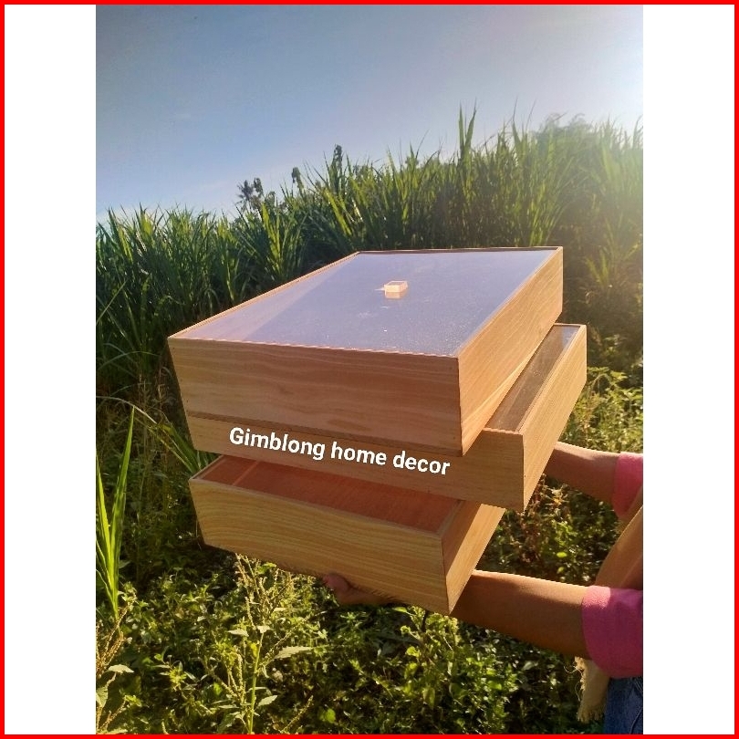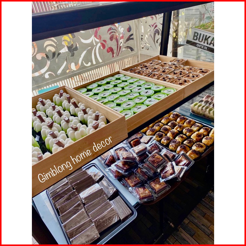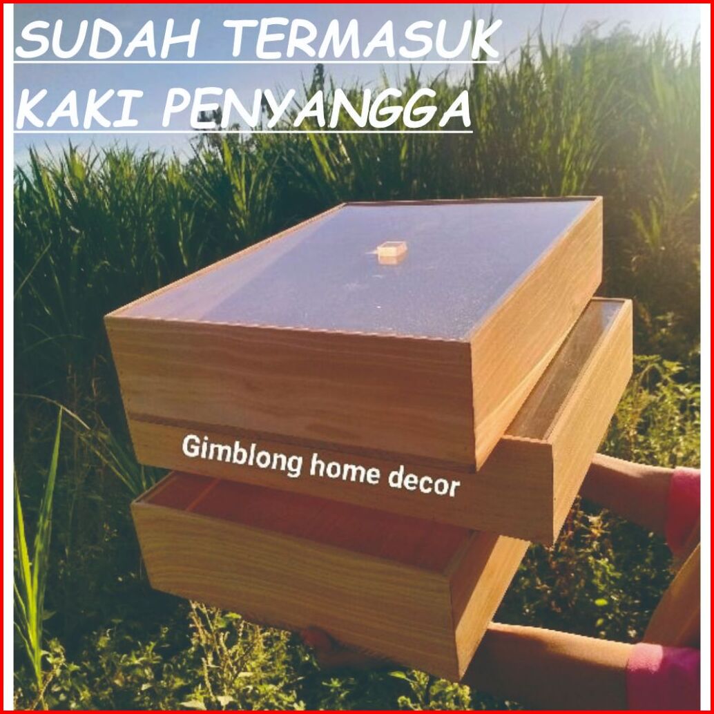 Satu Set Box Donat Dengan Kaki Penyangga Kayu Wadah Donat Kotak Donat Kayu Tempat Donat Tutup Akrilik