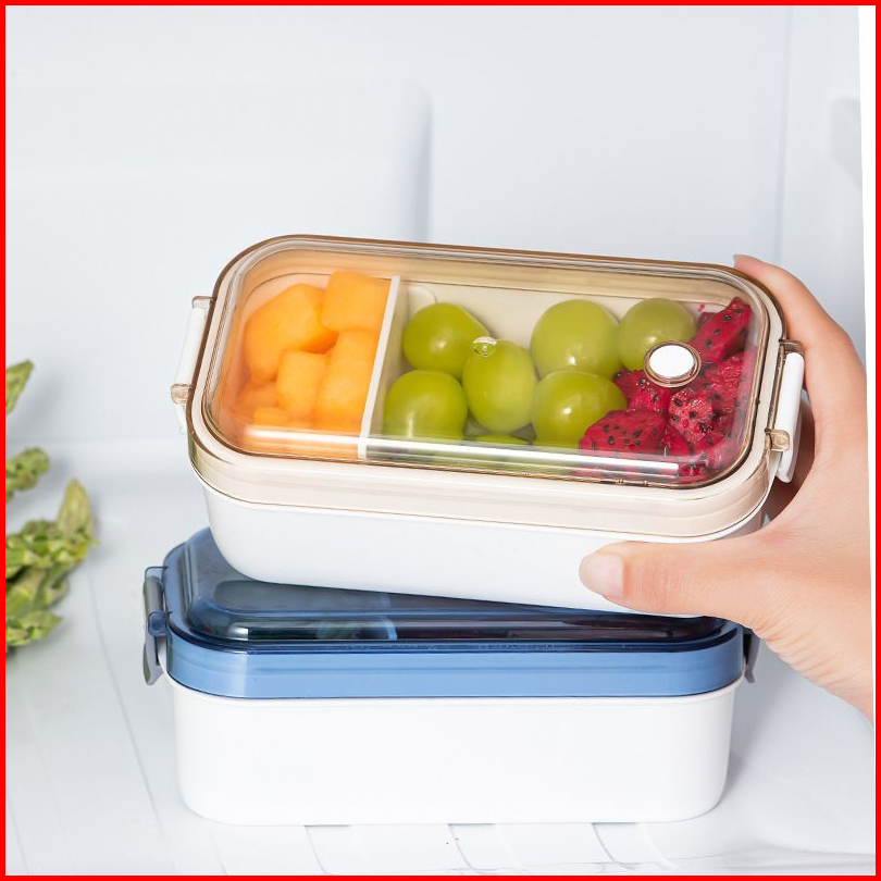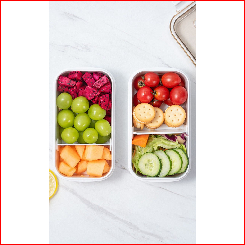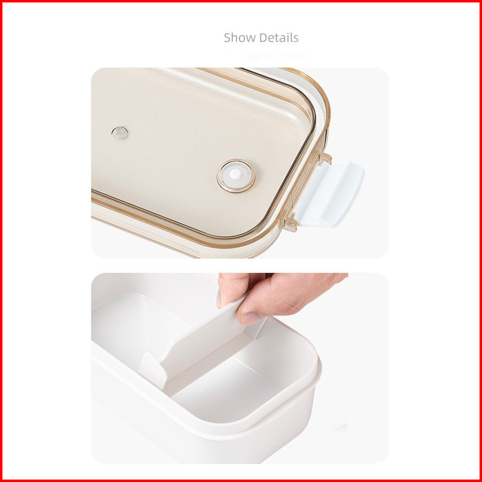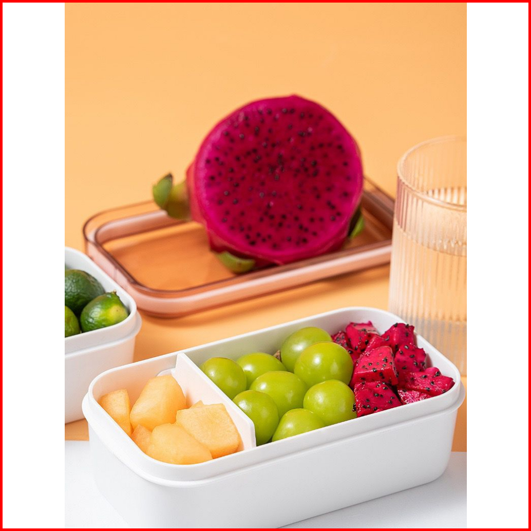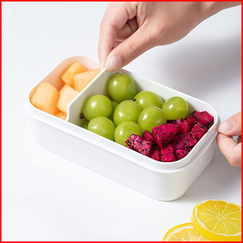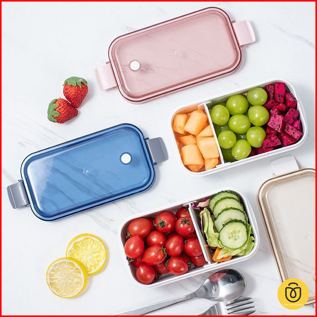 1 Pcs 600ml Kotak Makan 2 Grid Tempat Makan Bekal Lunchbox Single Layer Anti Tumpah Bocor - Hw151