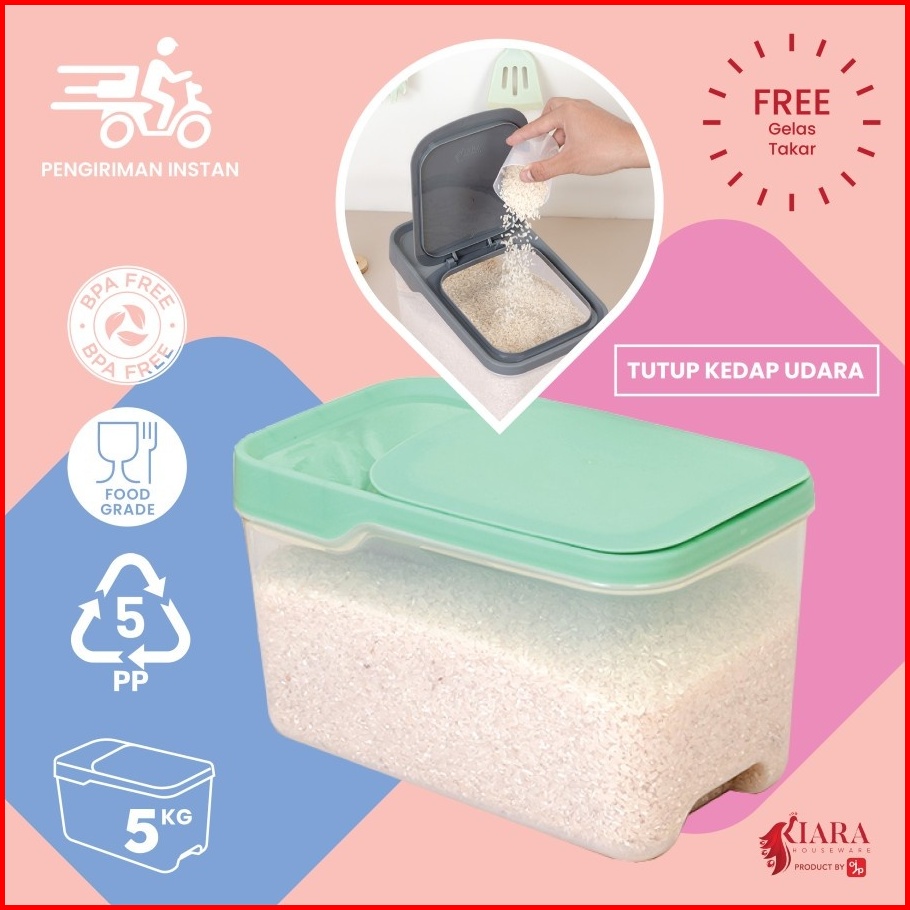 Tempat Beras Rice Box Kiara 5 Kg Cjp Free Gelas Takar - Random Warna