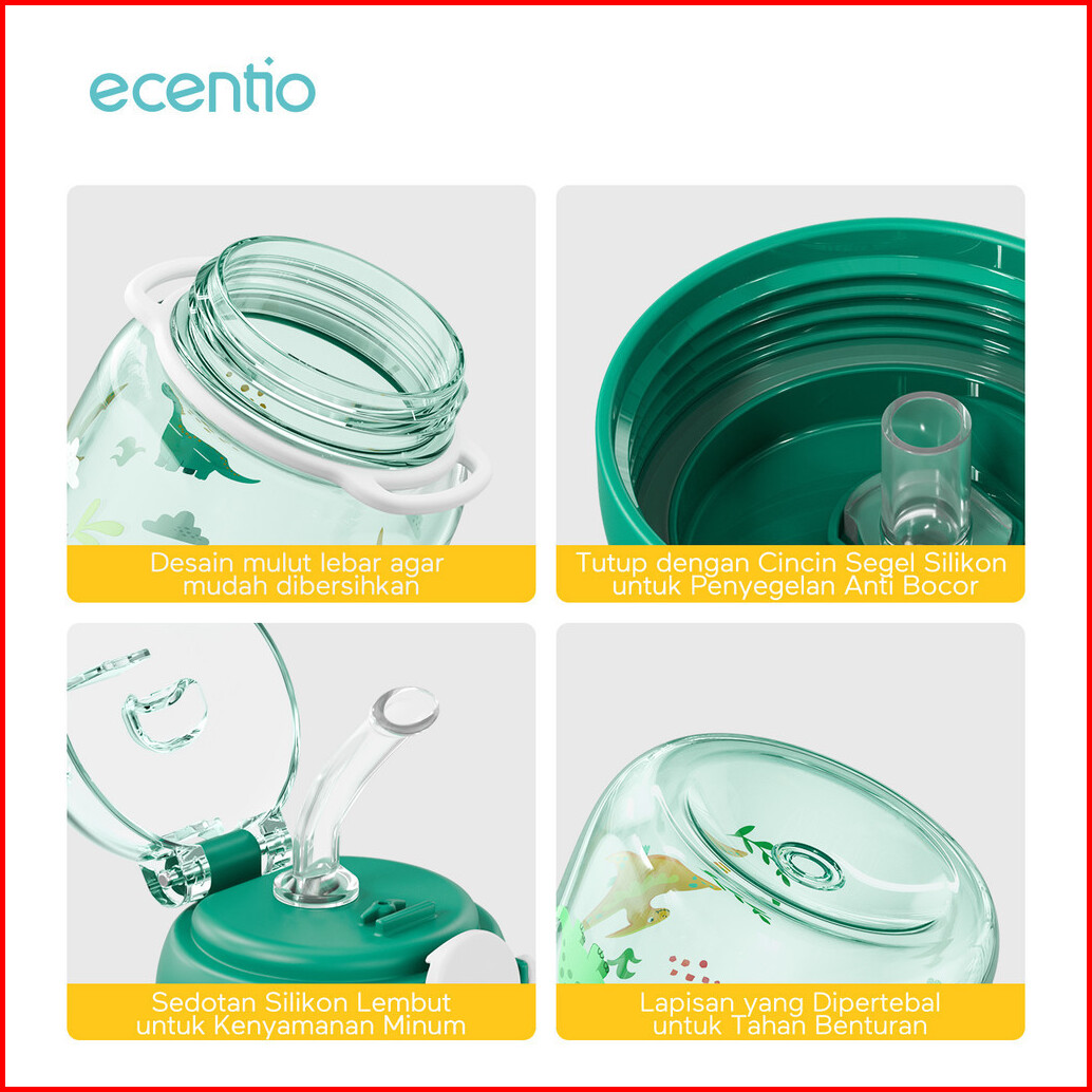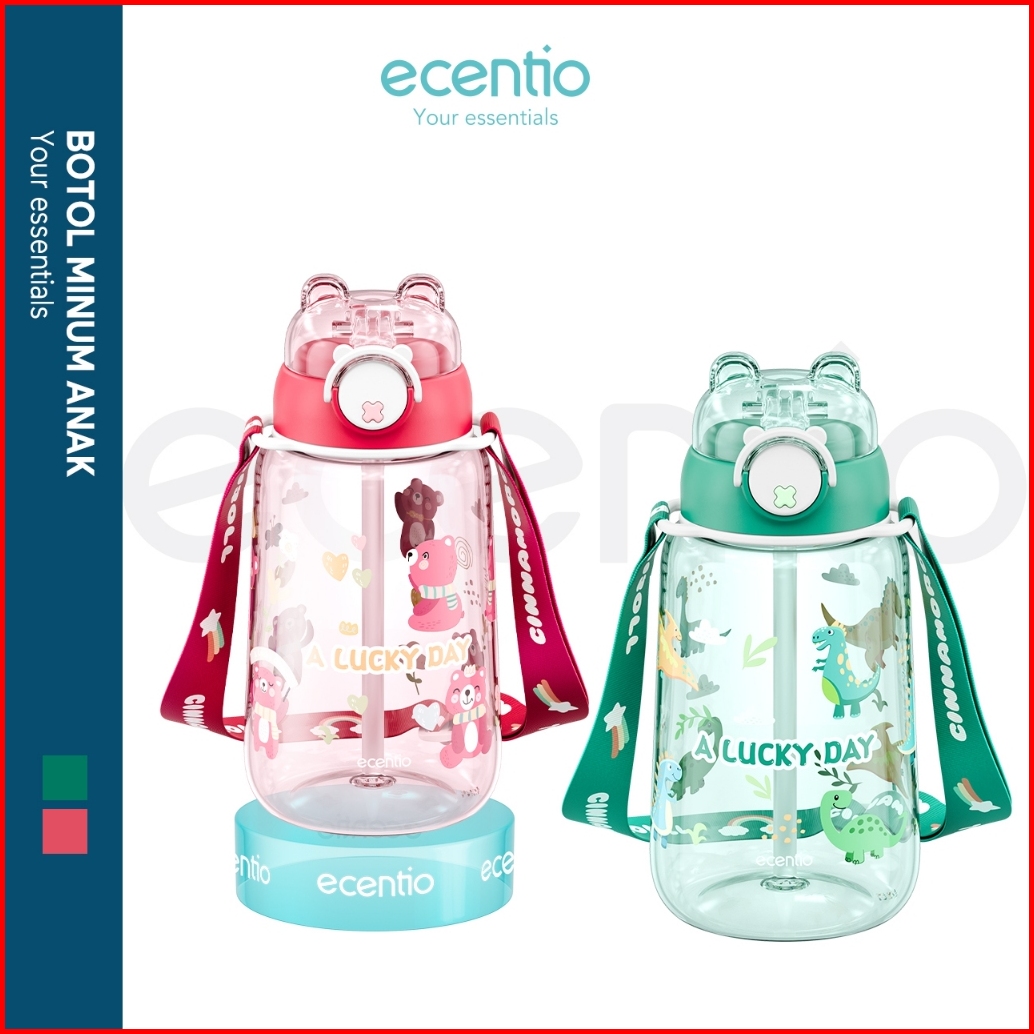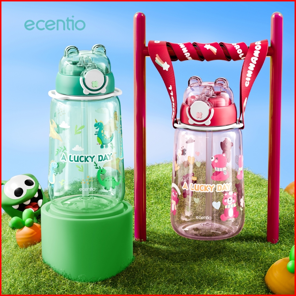 Ecentio Botol Minum Anak 750ml Dengan Sedotan Anti Tumpah Botol Air Bpa Free Pola Dinosaurus