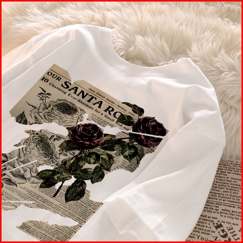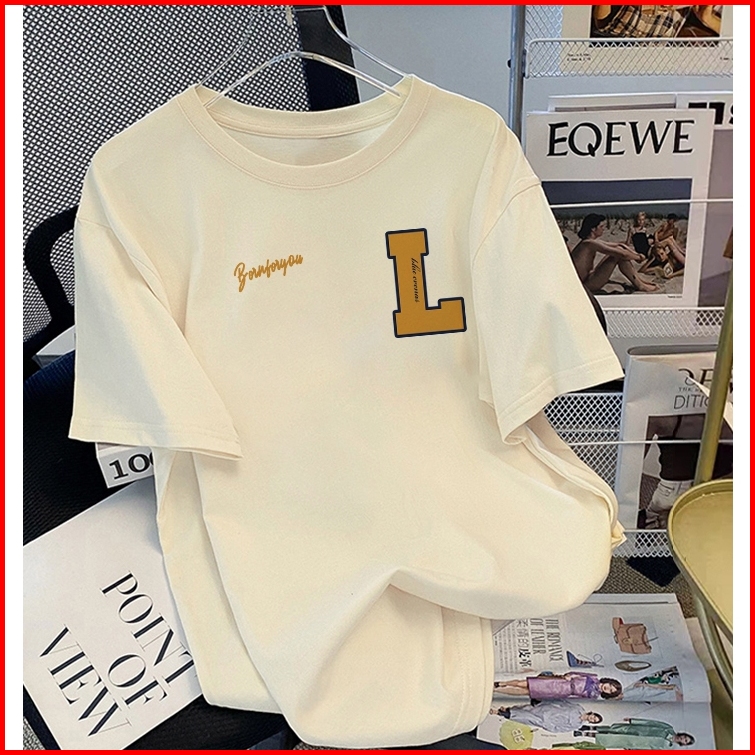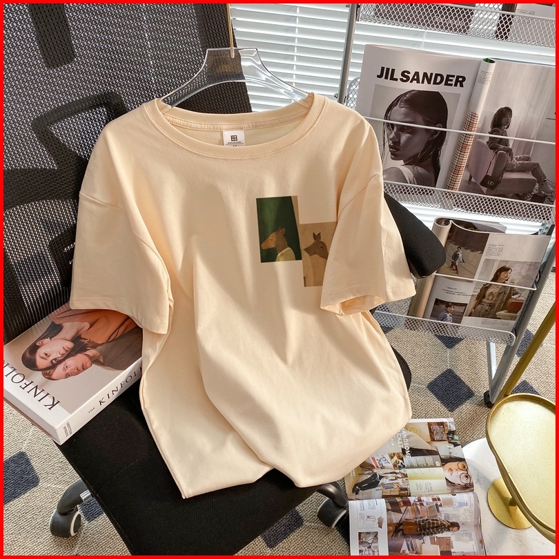 100 Katun Kaos Lengan Pendek Cream Atasan Wanita Oversize Printed T-shirt Kekinian Korean Style