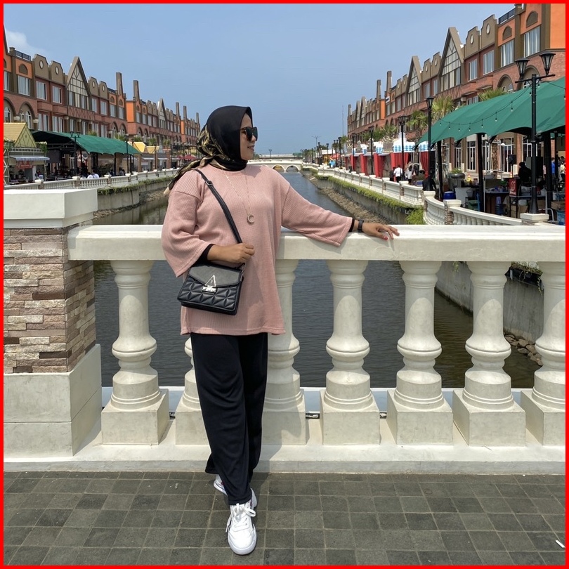 Kaos Oversized Waffle Hijab Friendly Lengan 7 8