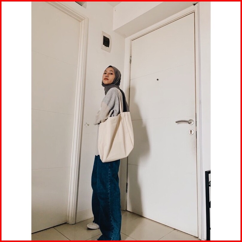 Baggy Tote Bag Laptop Nudie Tas Canvas Polos Totebag Wanita Cabiciks