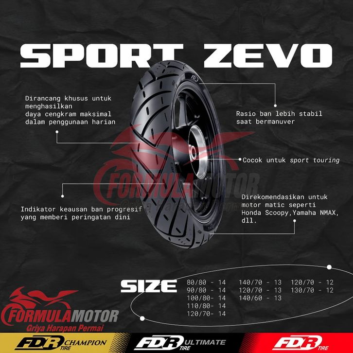 Ban Luar Motor Nmax Depan FDR Ultimate Sport Zevo Uk 120/70-13 Ring 13 Tubeless Dual Purpose Produksi Terbaru