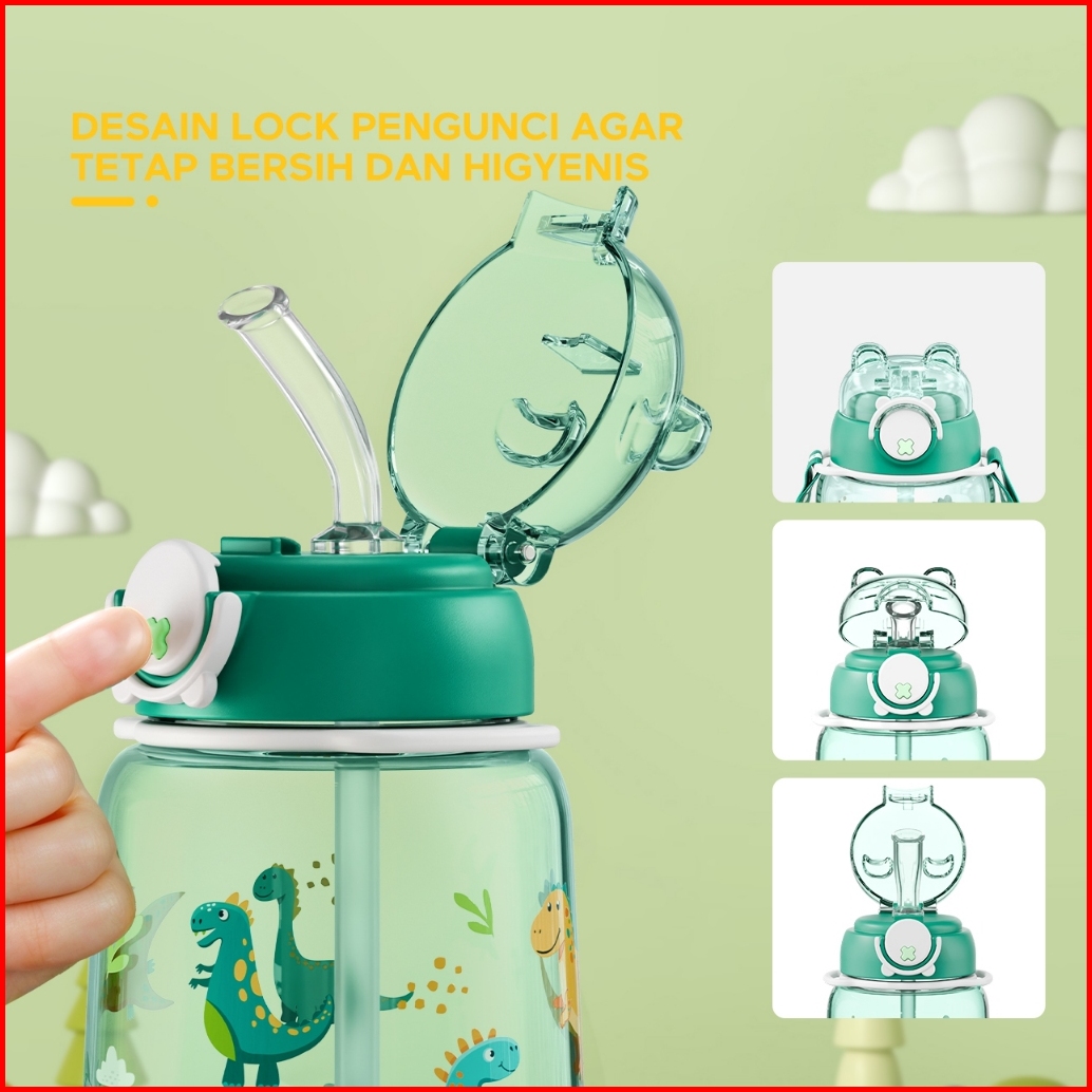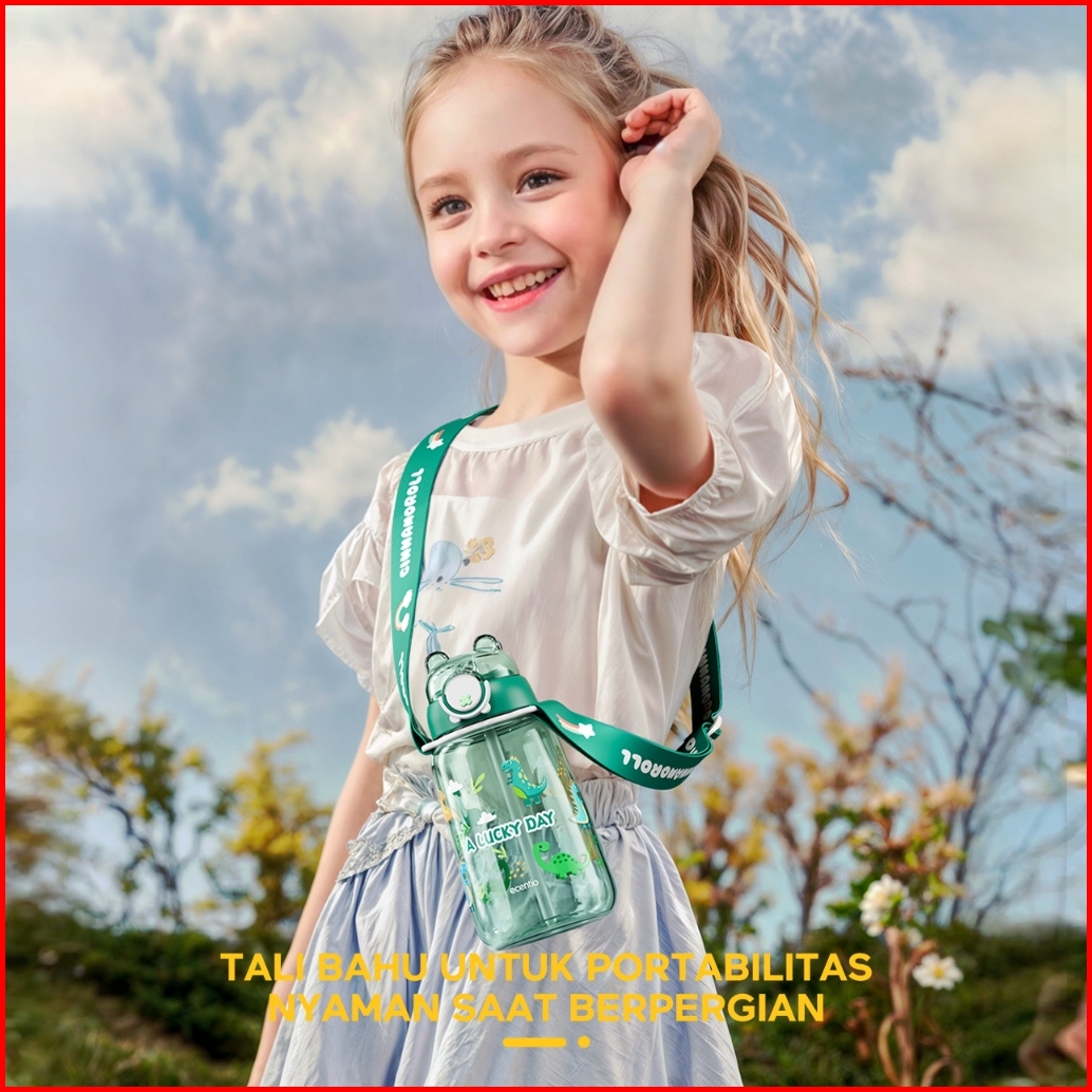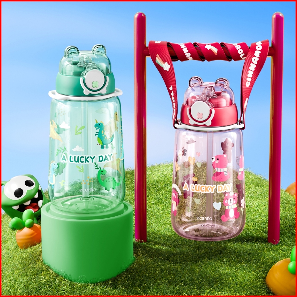 Ecentiokids Botol Minum Anak Bpa Free Food Grade 750ml Beruang Lucu Karakter Dengan Tali Portable Tempat Minum Anak