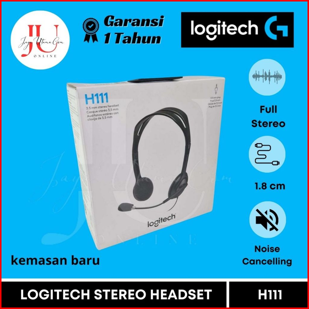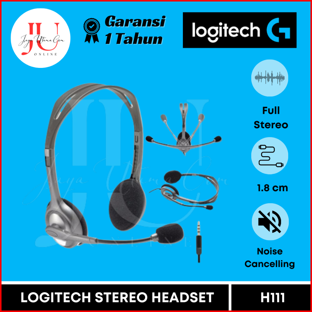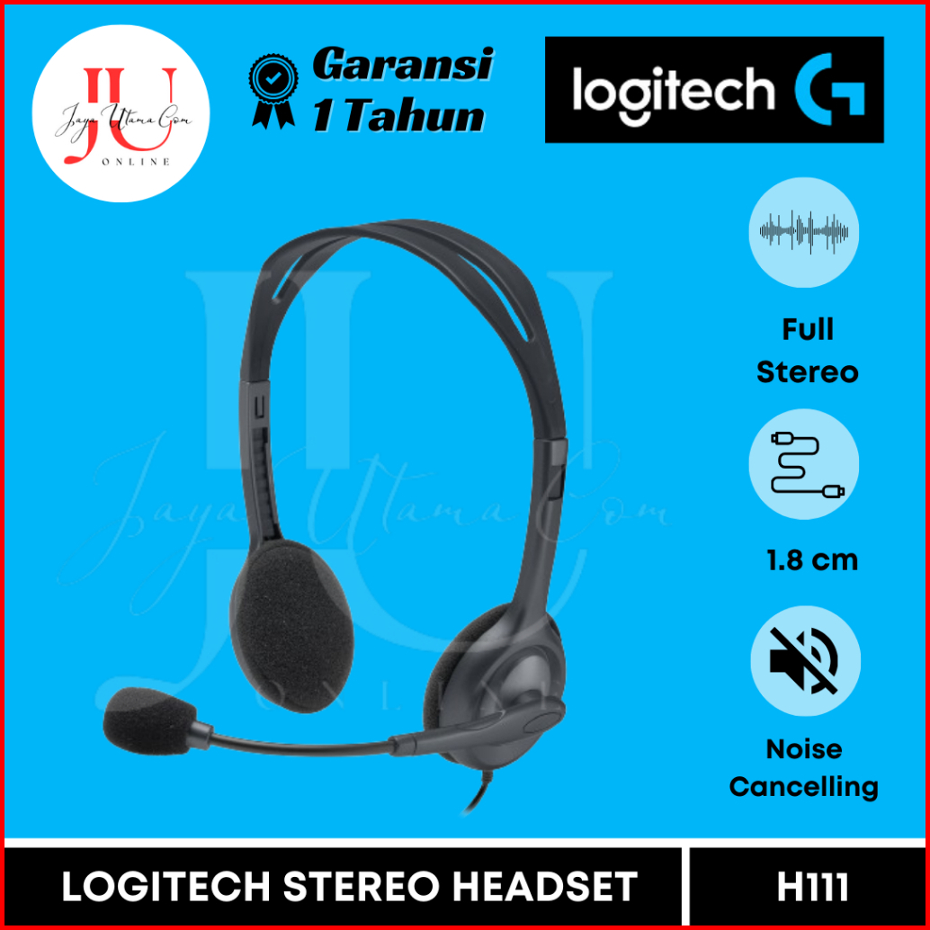 Headset Logitech H111 Stereo 3.5mm Mic Untuk Laptop Hp Zoom Meet Garansi Resmi