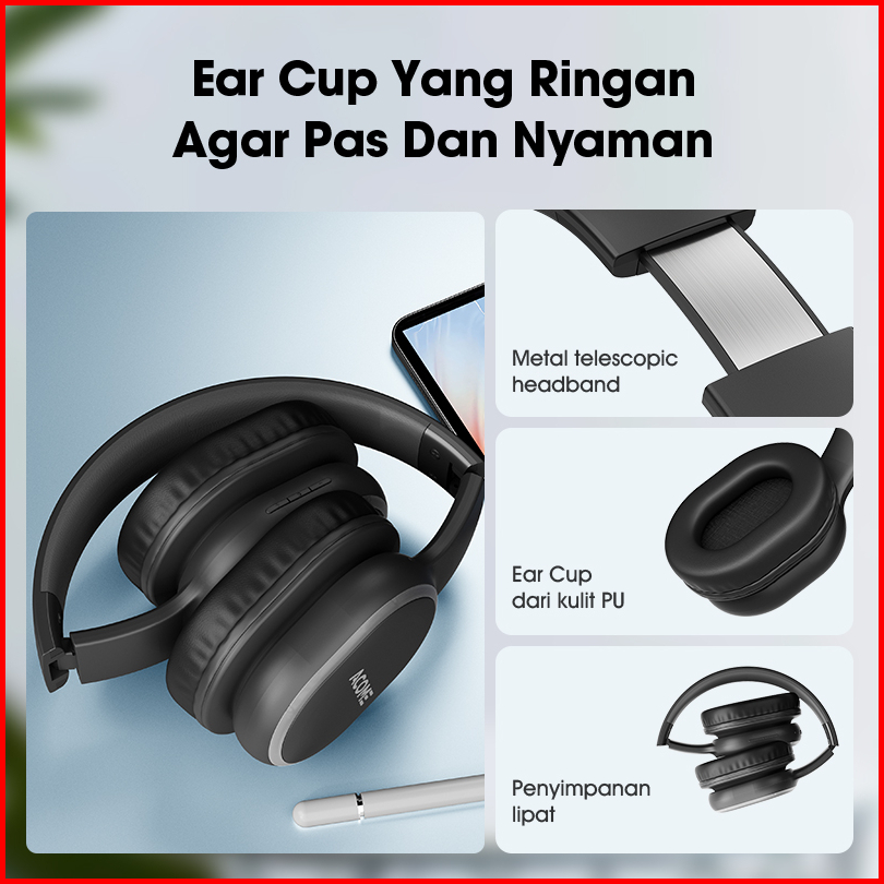 Acome Tune H2 Headphone Bluetooth 5.3 Headset Earphone Wireless Dual Eq Mode Foldable Original - Garansi Resmi 1 Tahun