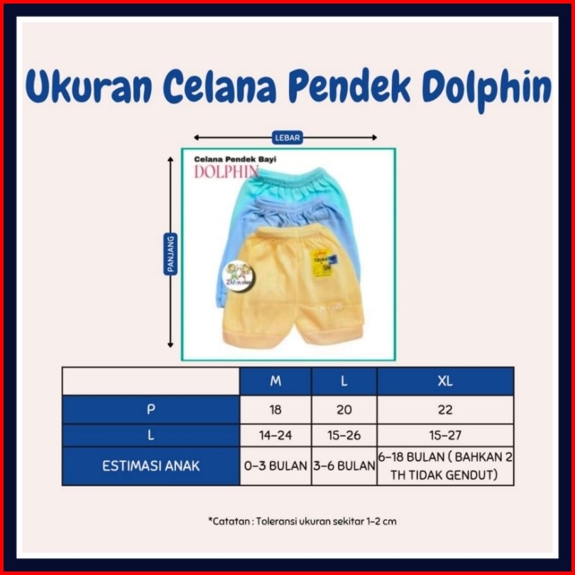 Dolphin 6 Pc Celana Bayi Pendek Sni 0-2 Th Polos Warna Uk M-xl