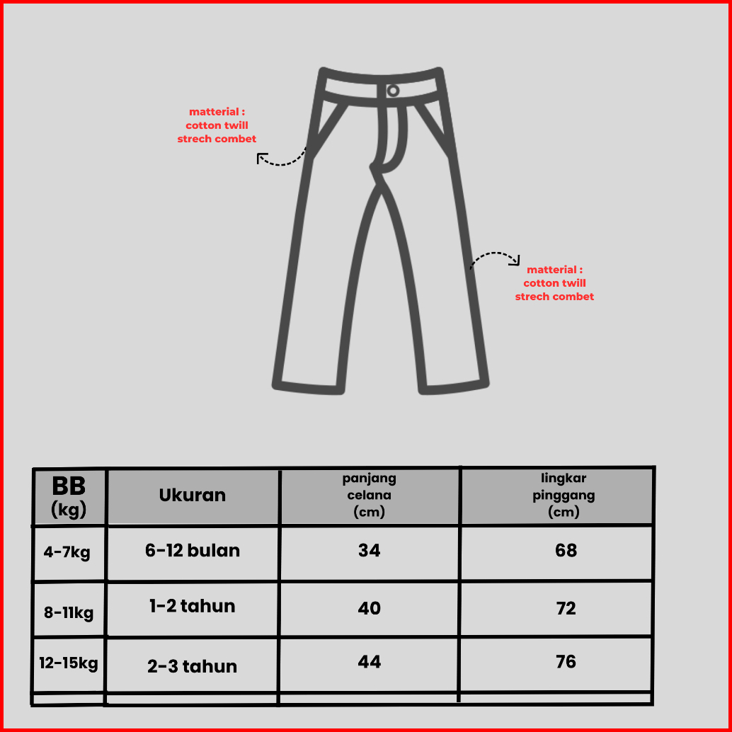 Celana Chino Panjang Bayi 0-12 Bulan 1-3 Tahun Laki Laki Newborn Katun Twill Strech Jogercino