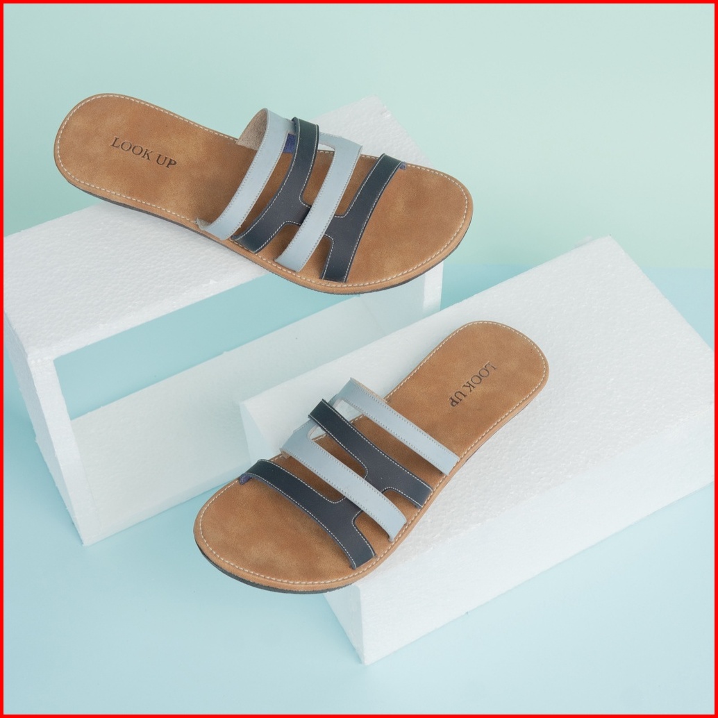 Look Up Yuniar Sandal Wanita Slop Kokop Slide Sandal Flat Teplek Motif Kombinasi Flat Color Series